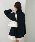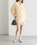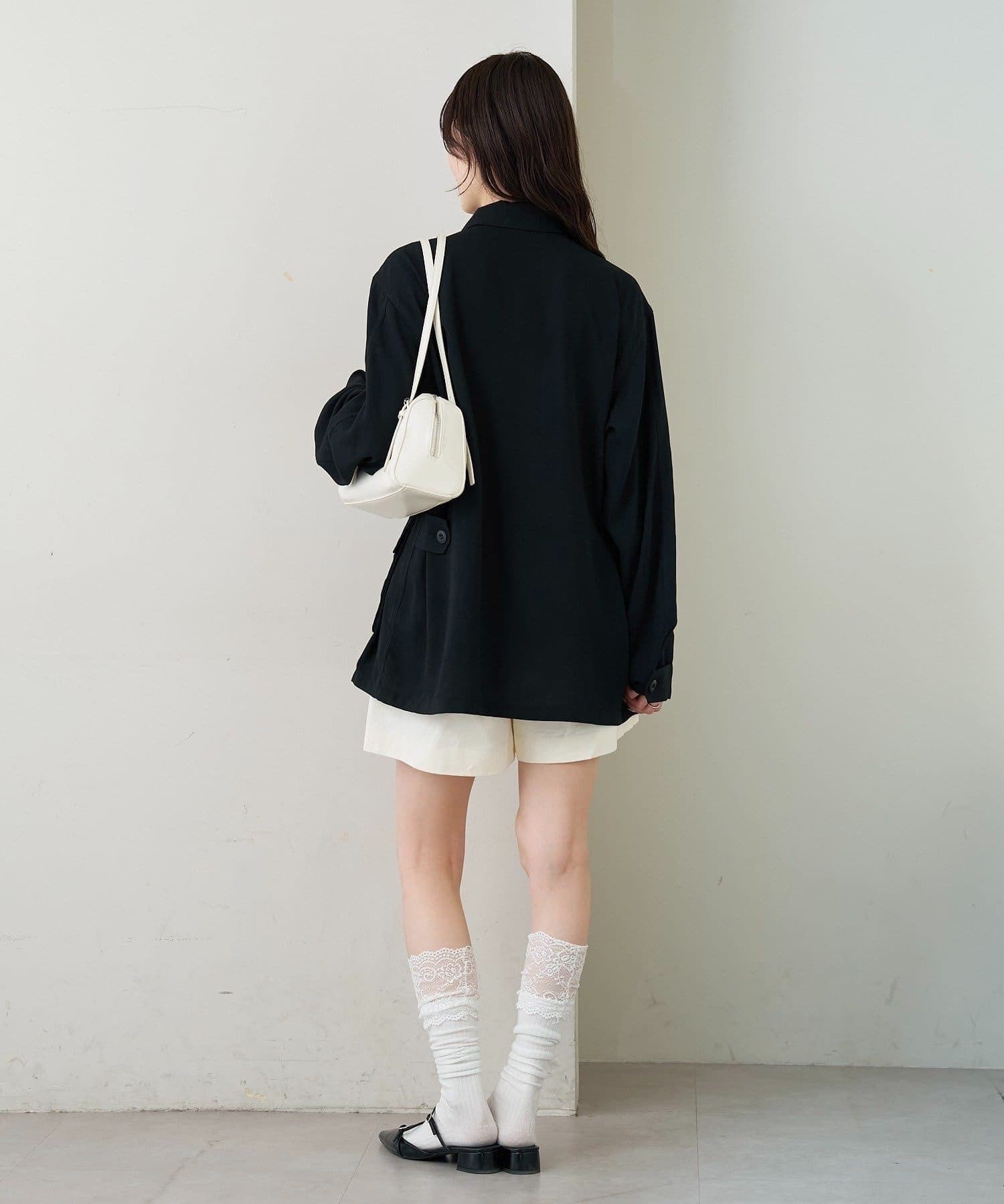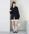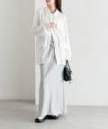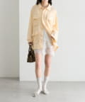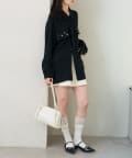 ・パンツ合わせで、キレイめスタイリングに。ミニボトム合わせで可愛らしいフェミニンさをプラス。
