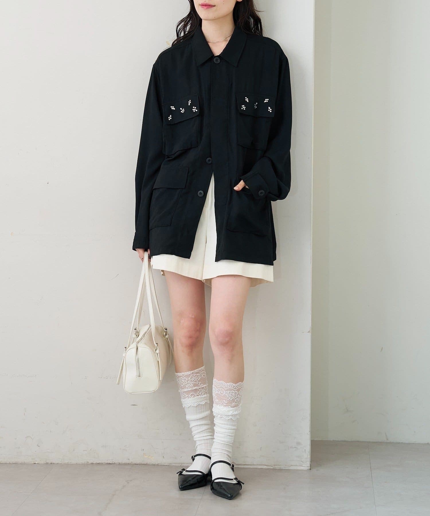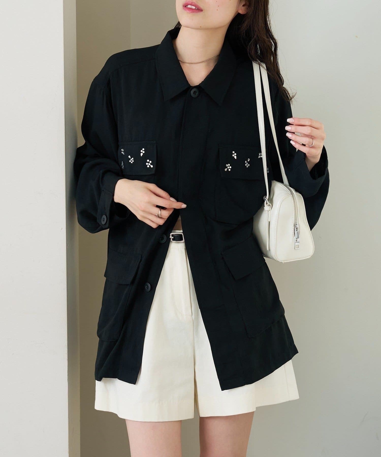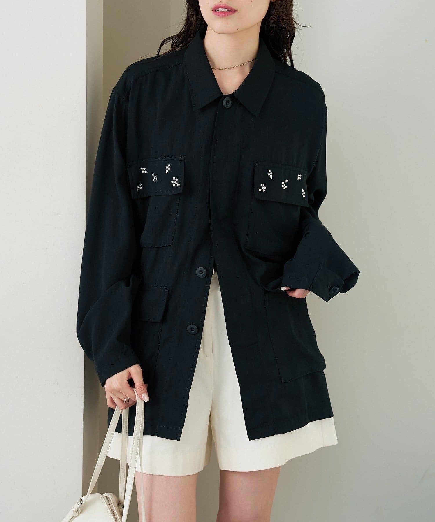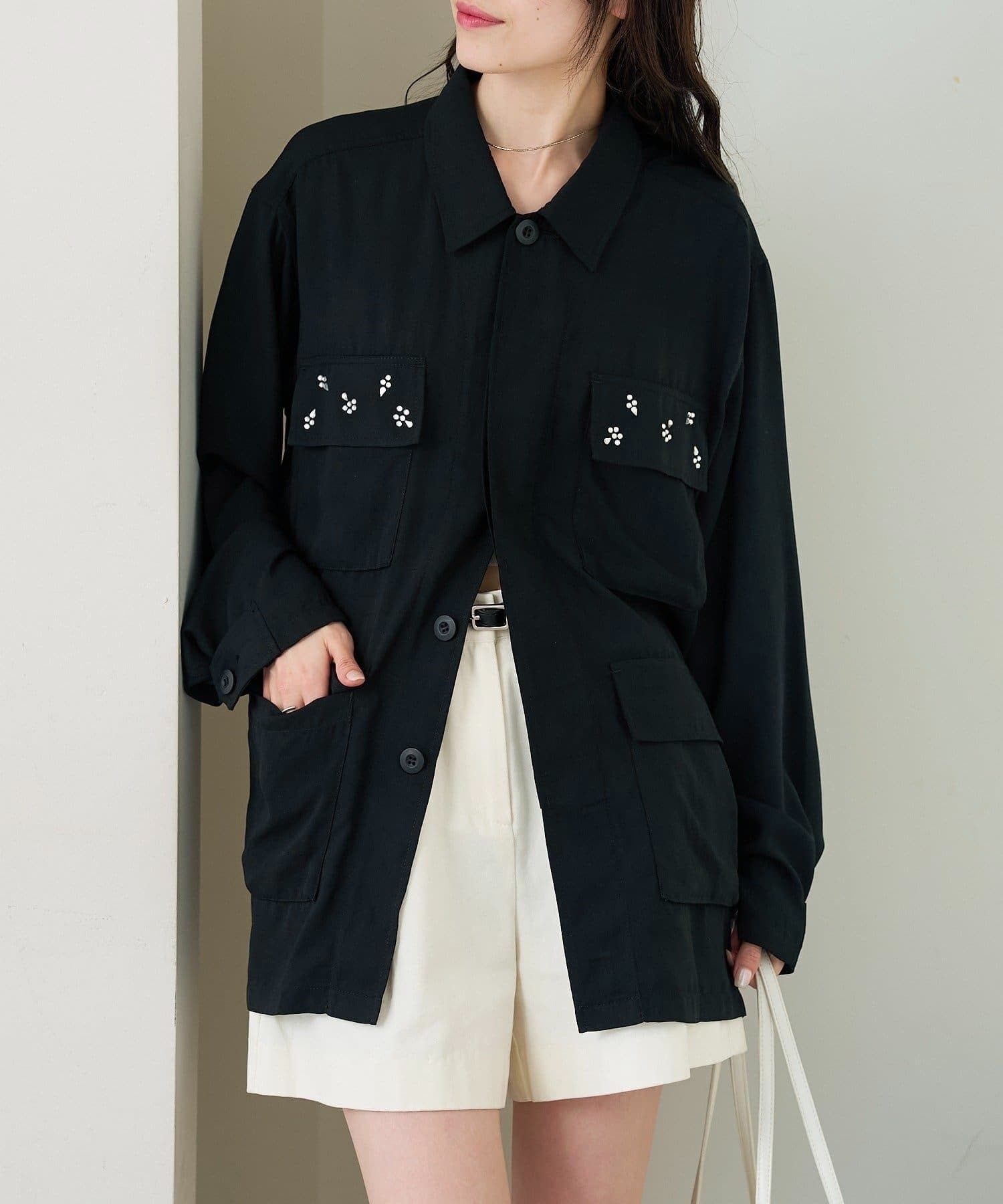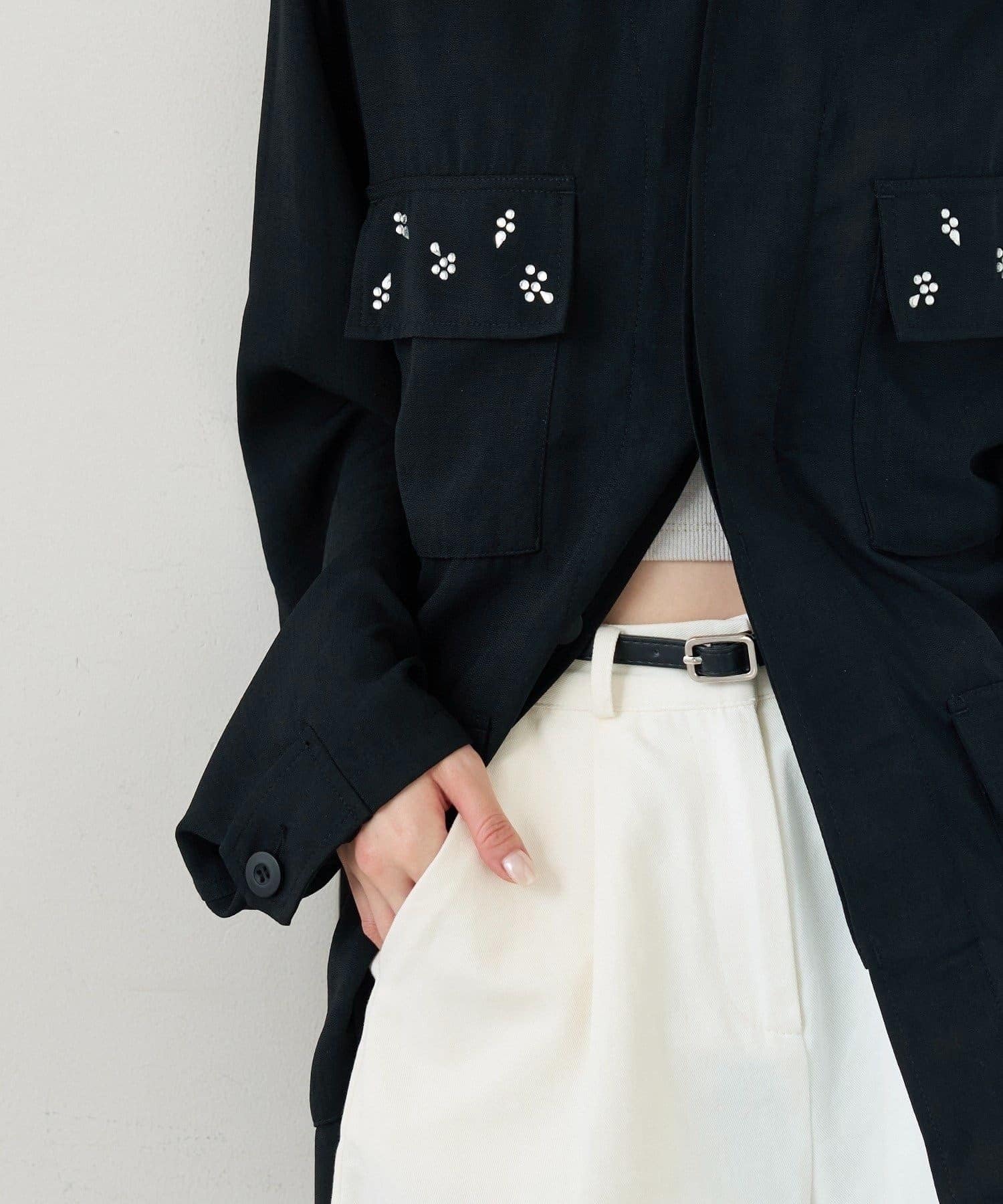 ・ポケット部分にあしらわれたビジューが目を惹くポイントに◎