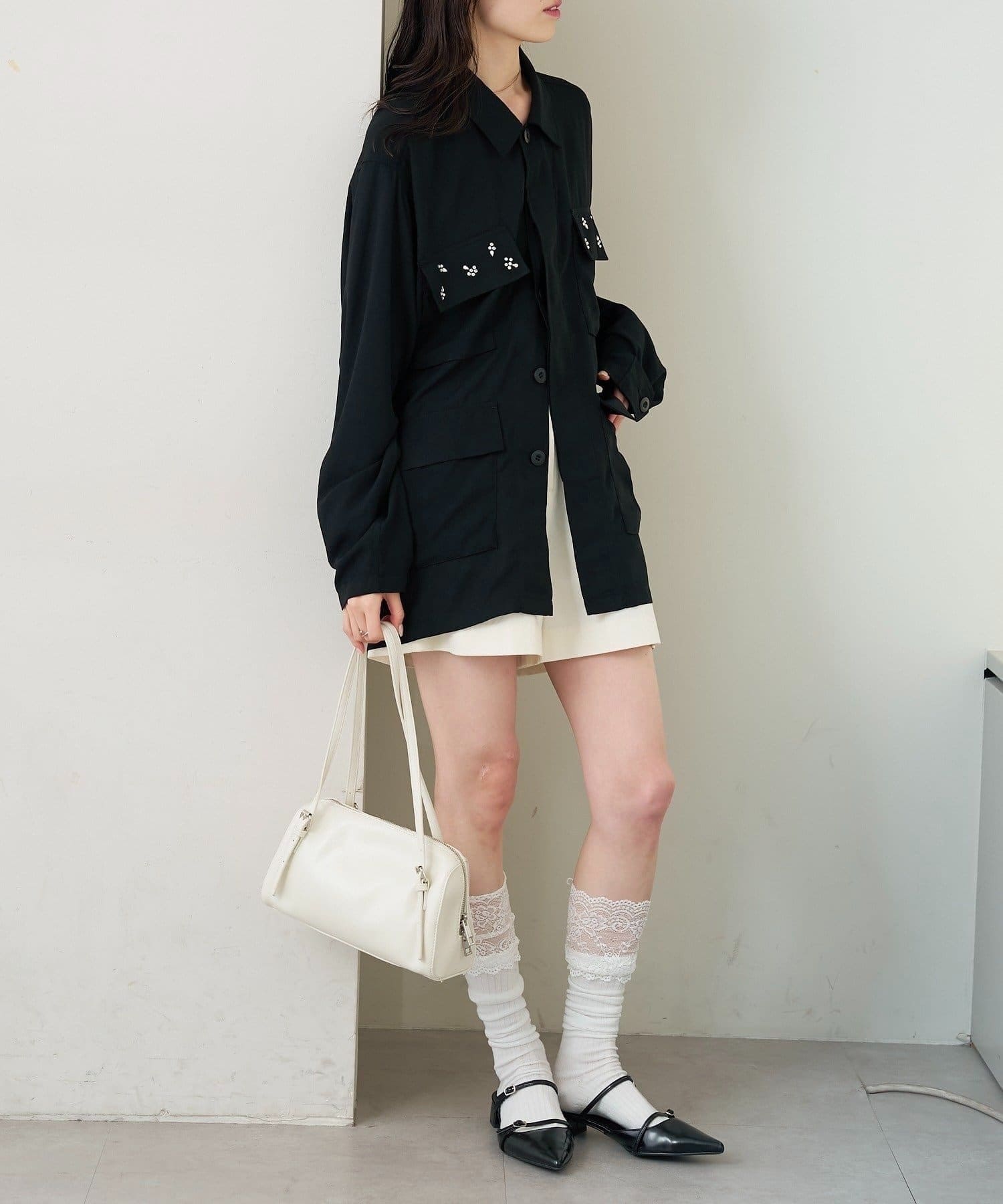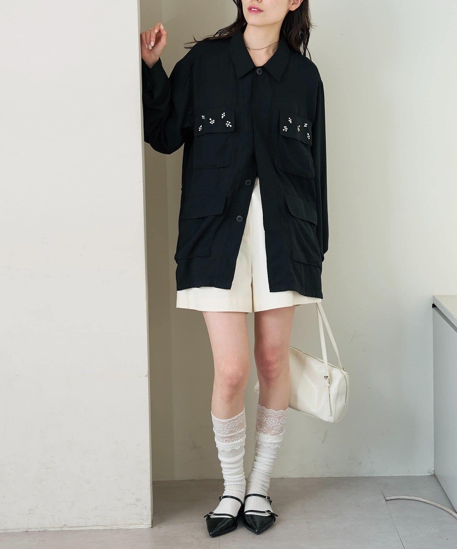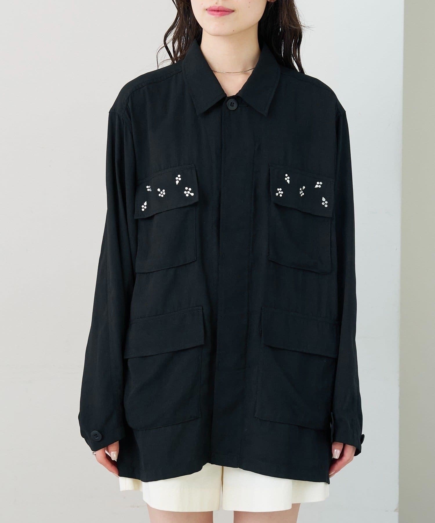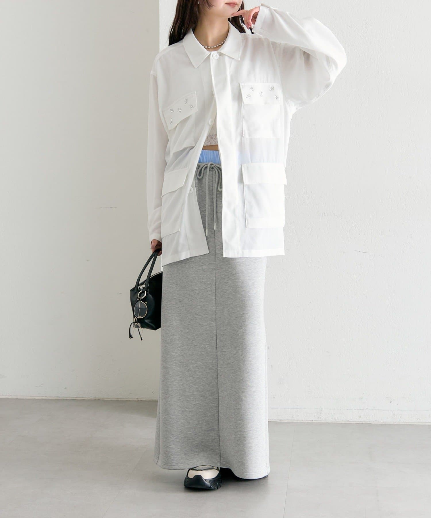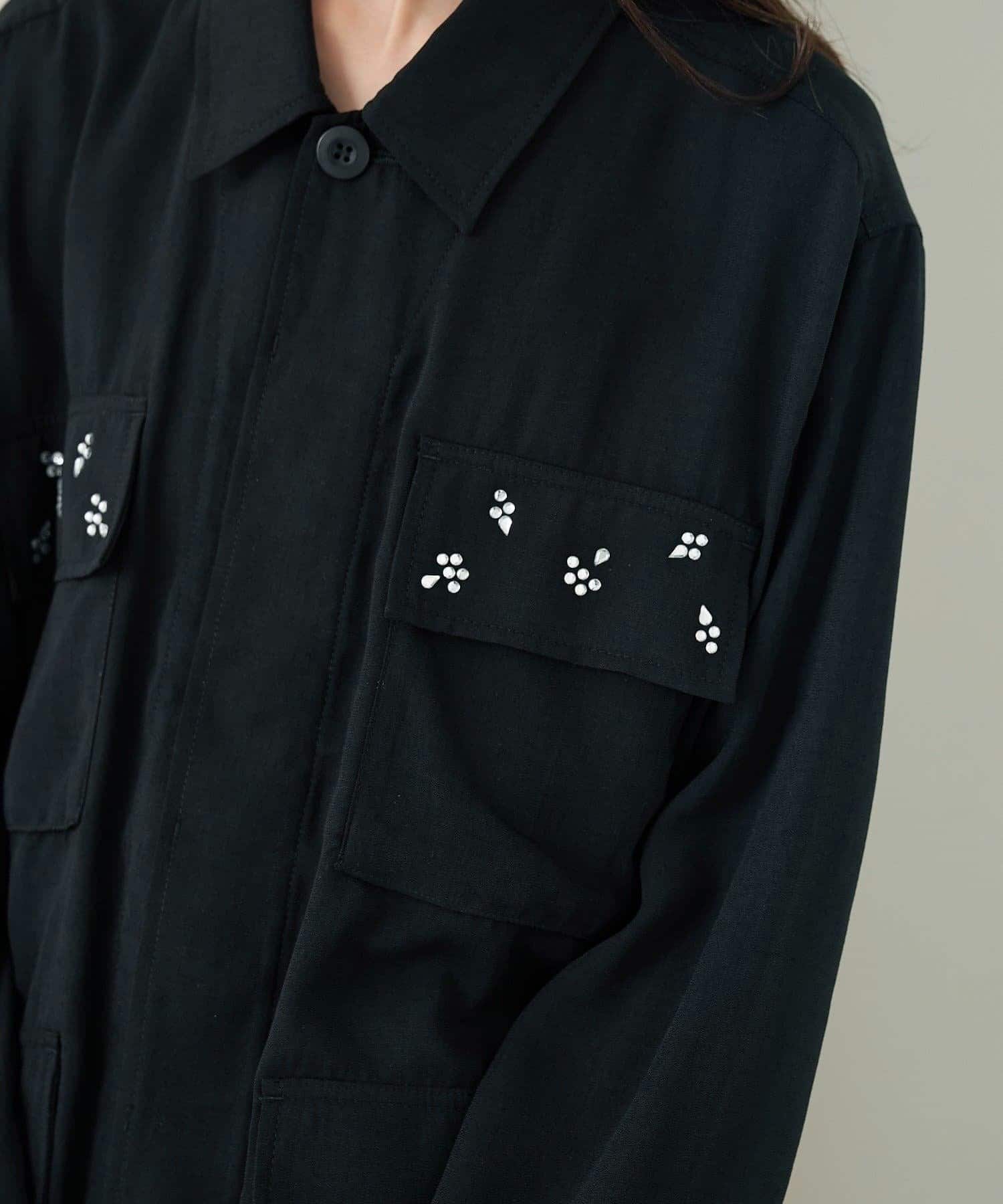 ・ポケット部分にあしらわれたビジューが目を惹くポイントに◎