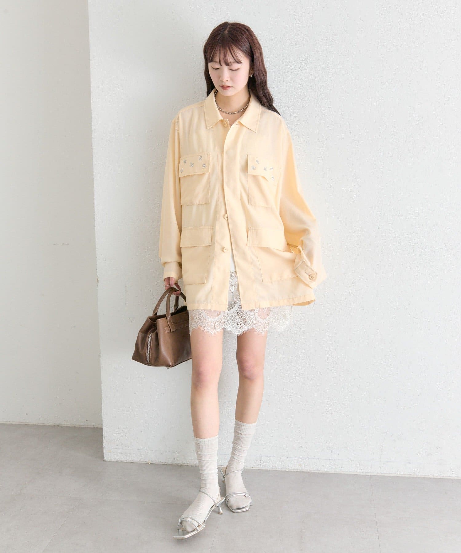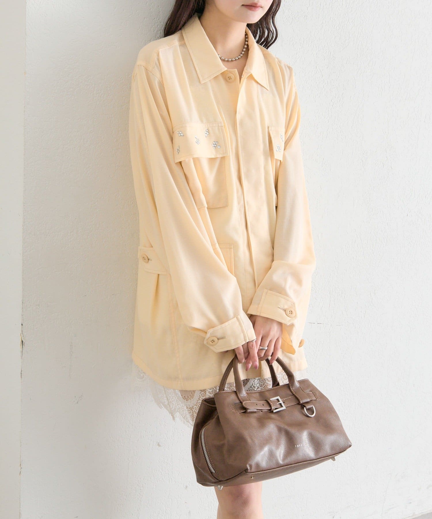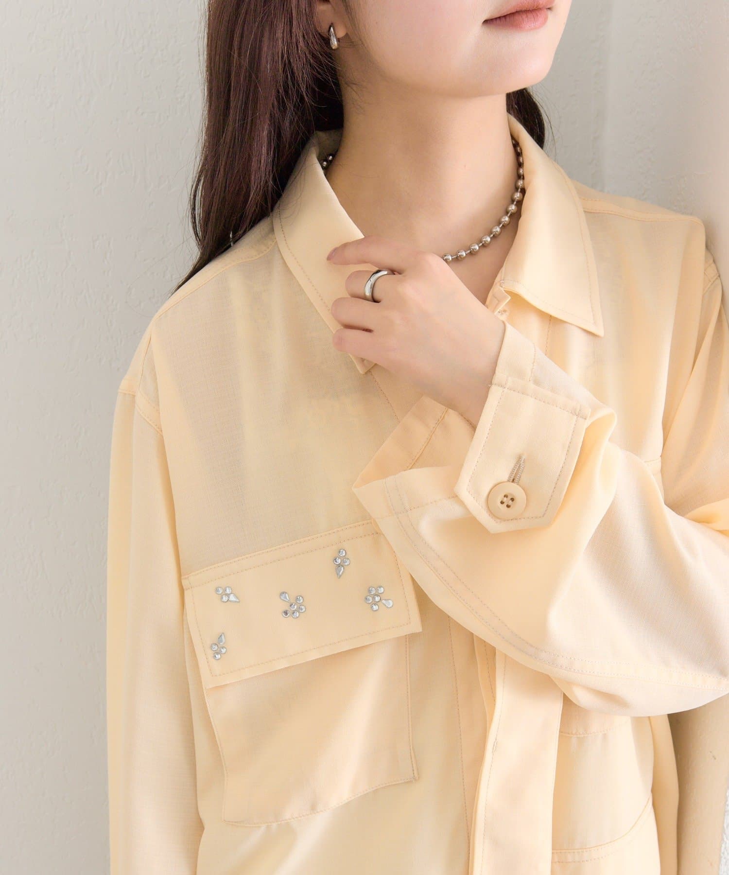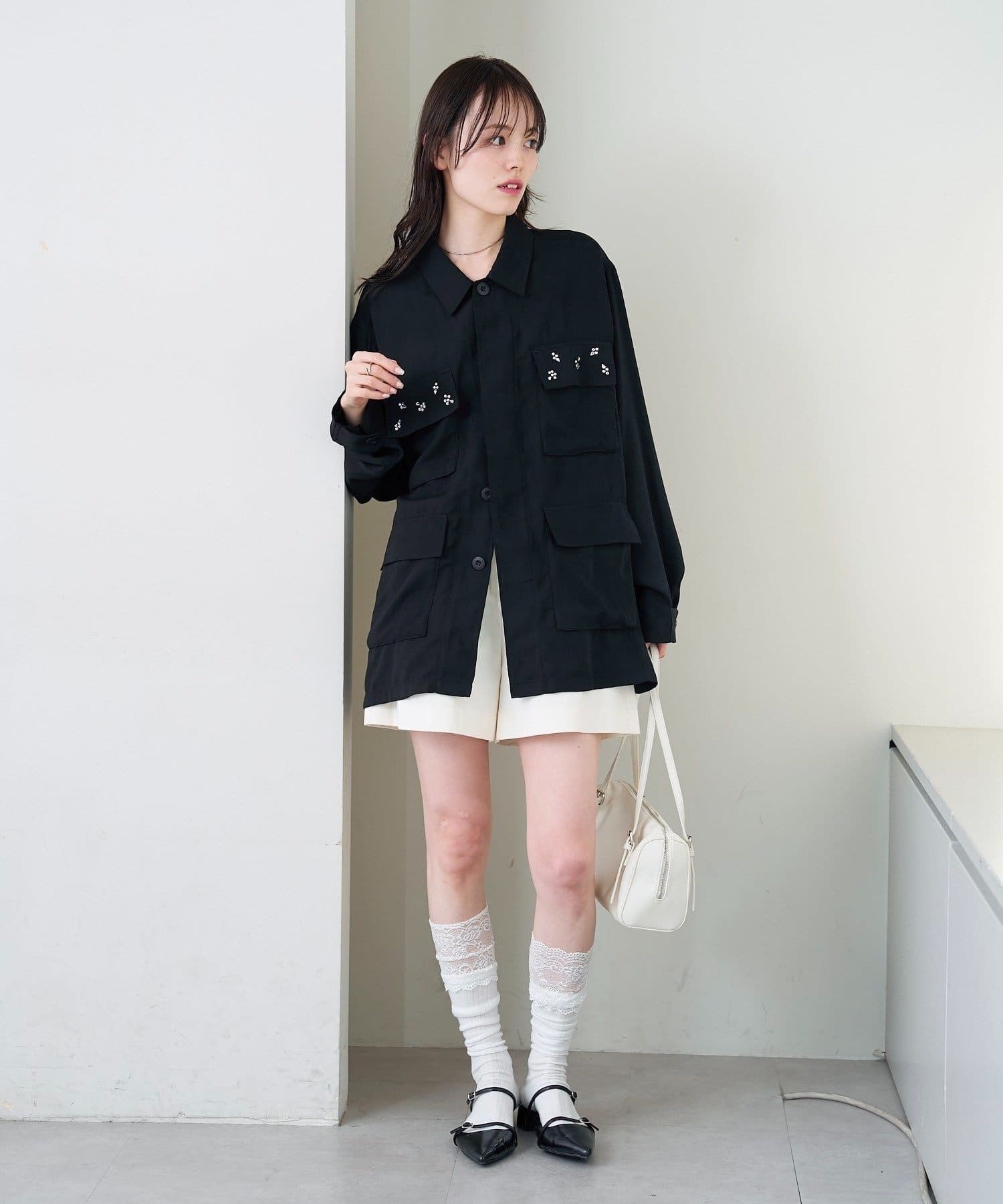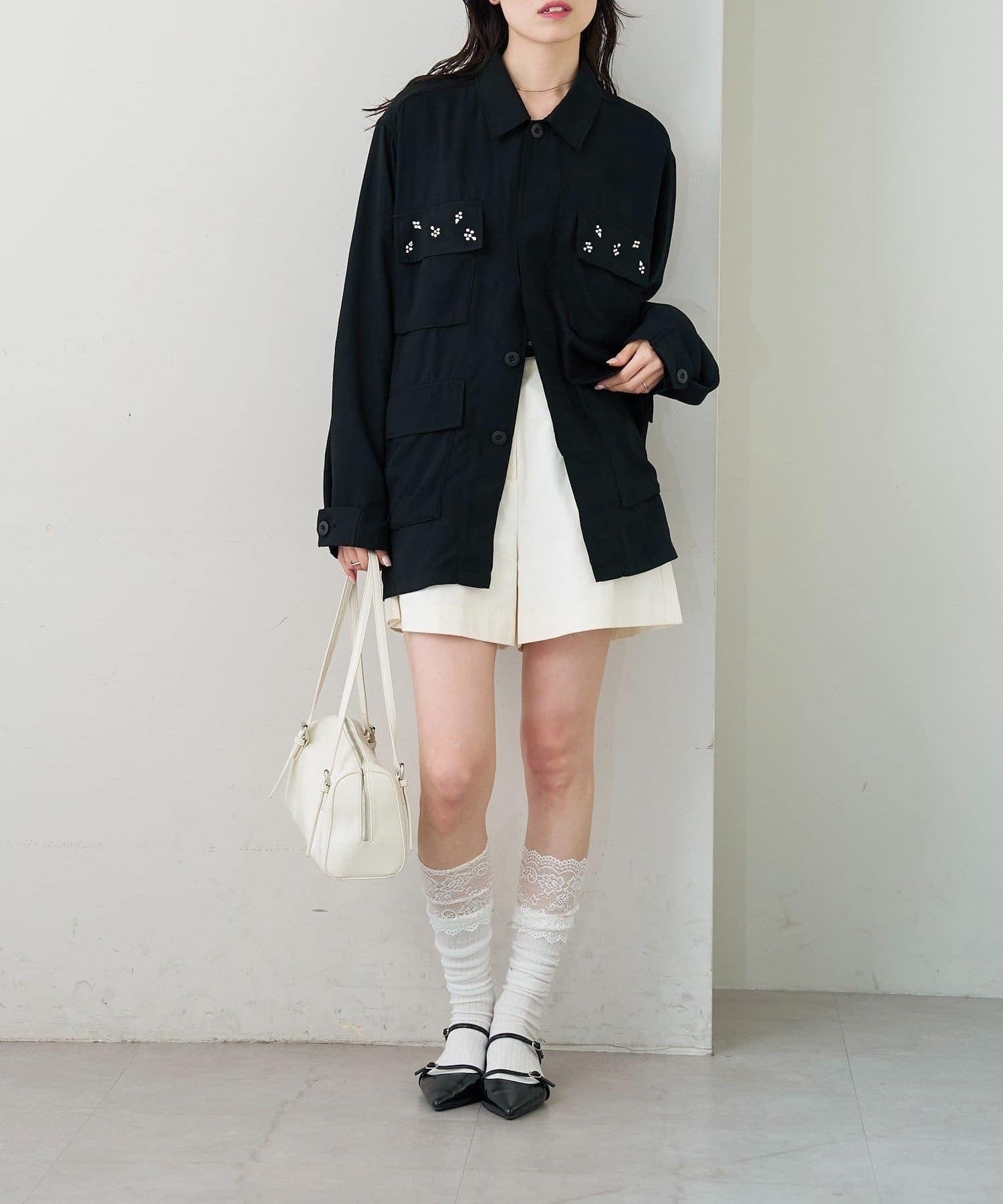 ・ポケット部分にあしらわれたビジューが目を惹くポイントに◎