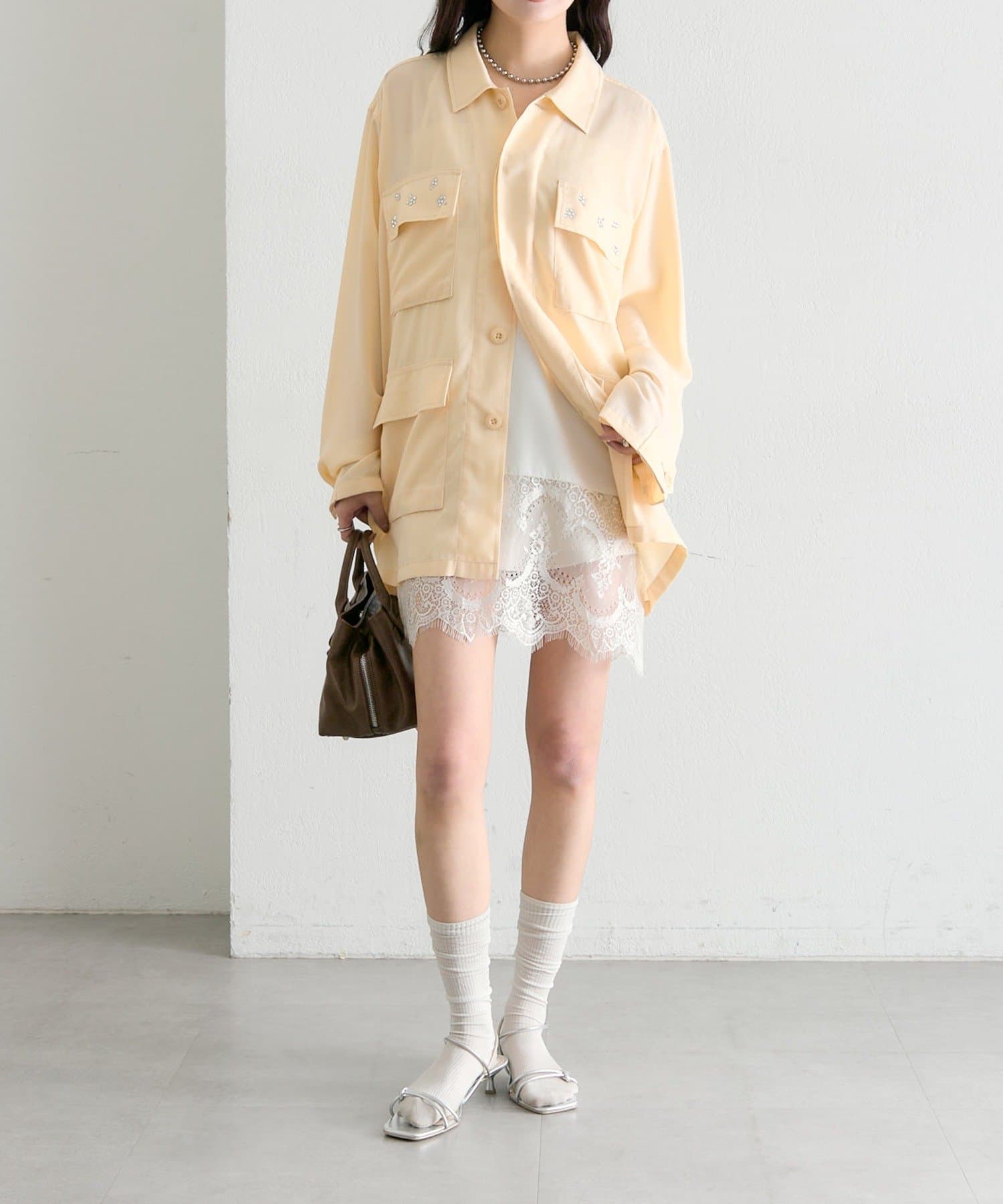 ・ビジューを主役に、アクセサリーはシンプルなものを合わせるのがおすすめです。