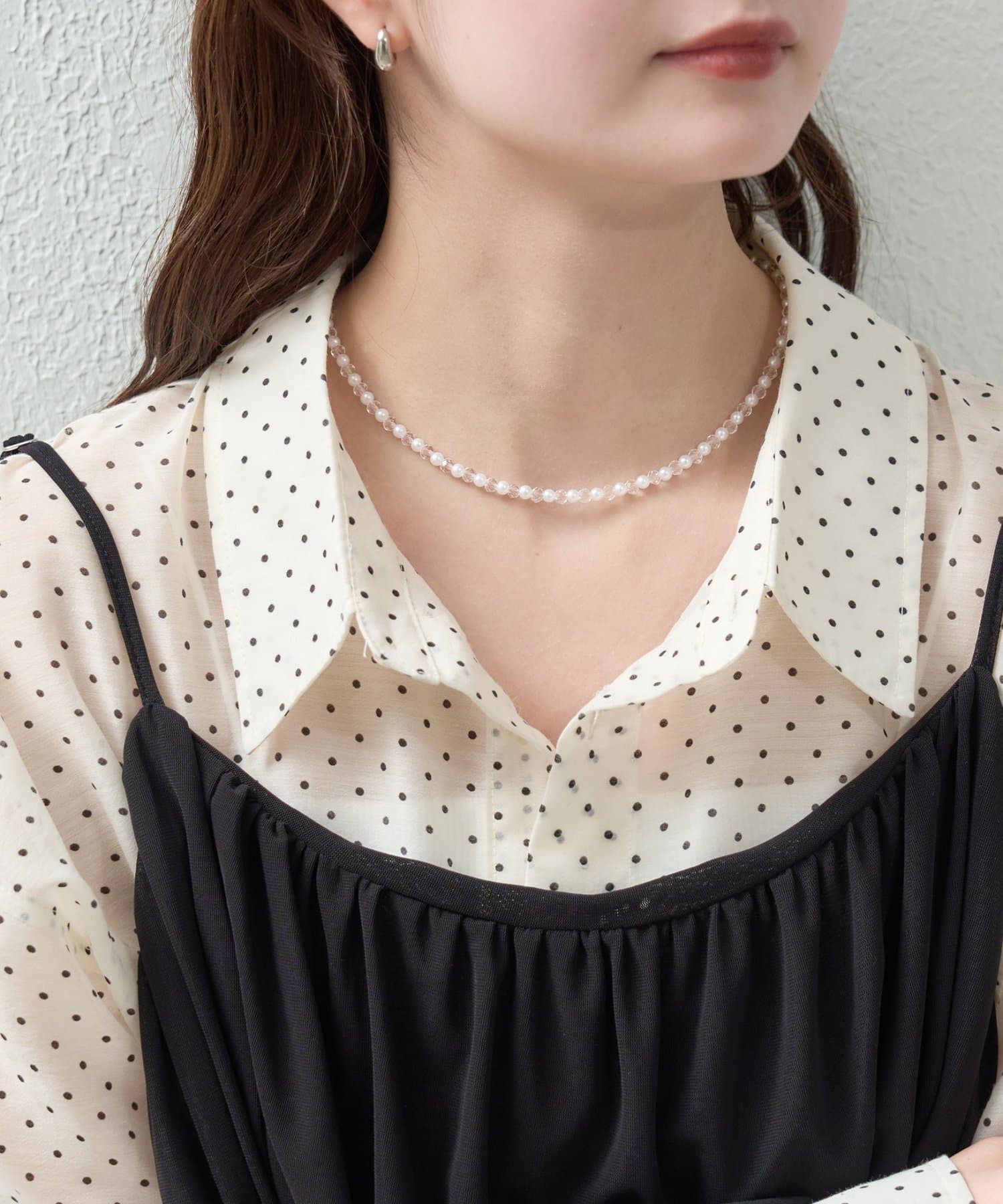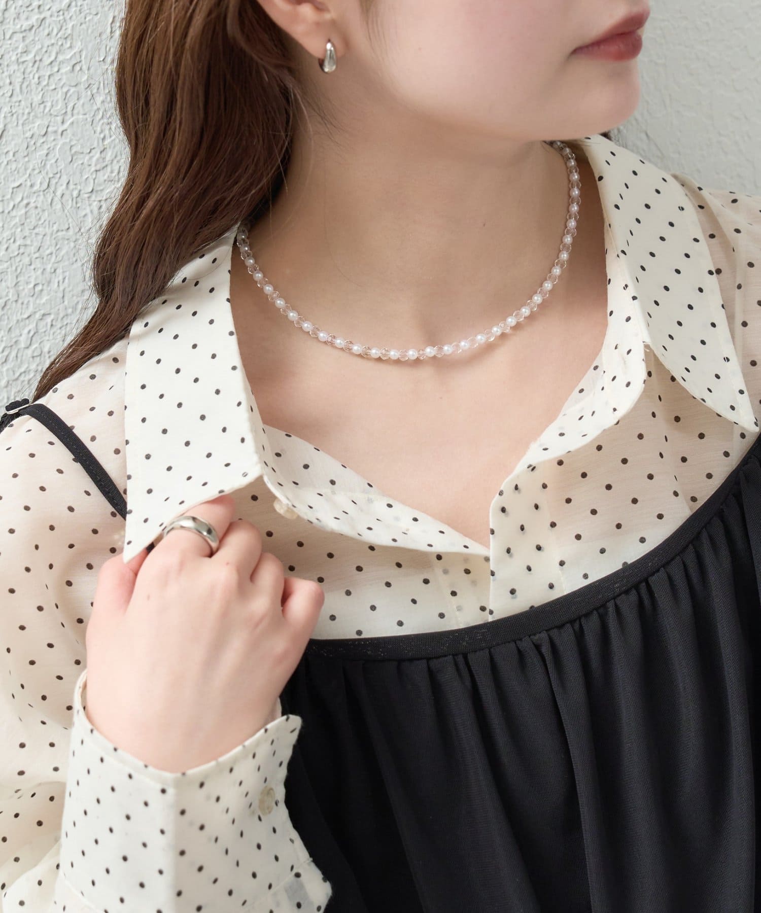軽やかな抜け感をつくるパールクリアネックレス