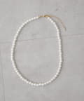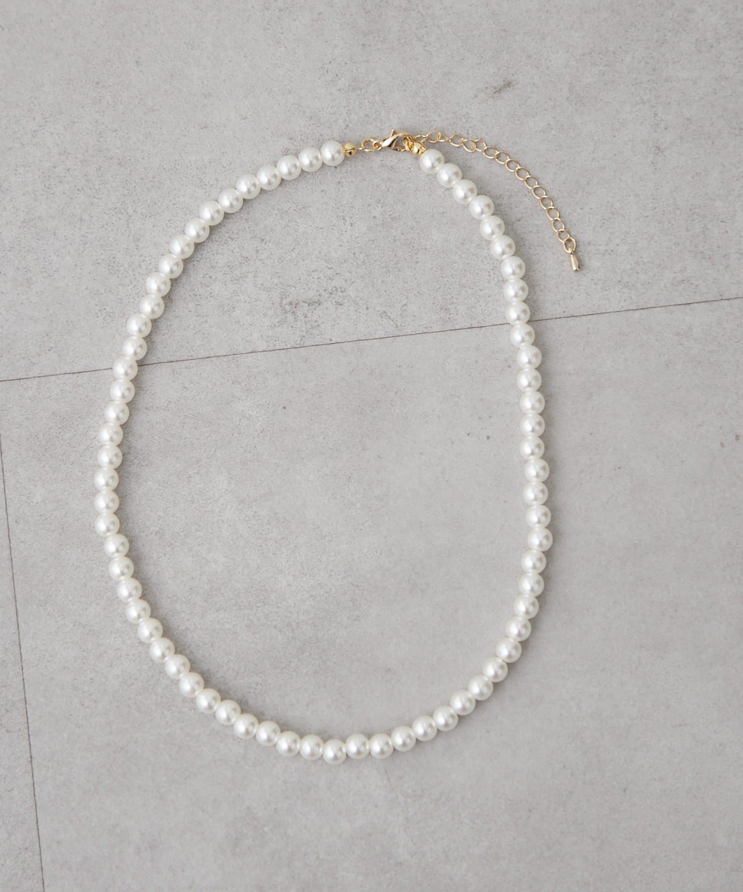 上品に馴染む、シンプルなデザインのパールネックレス
