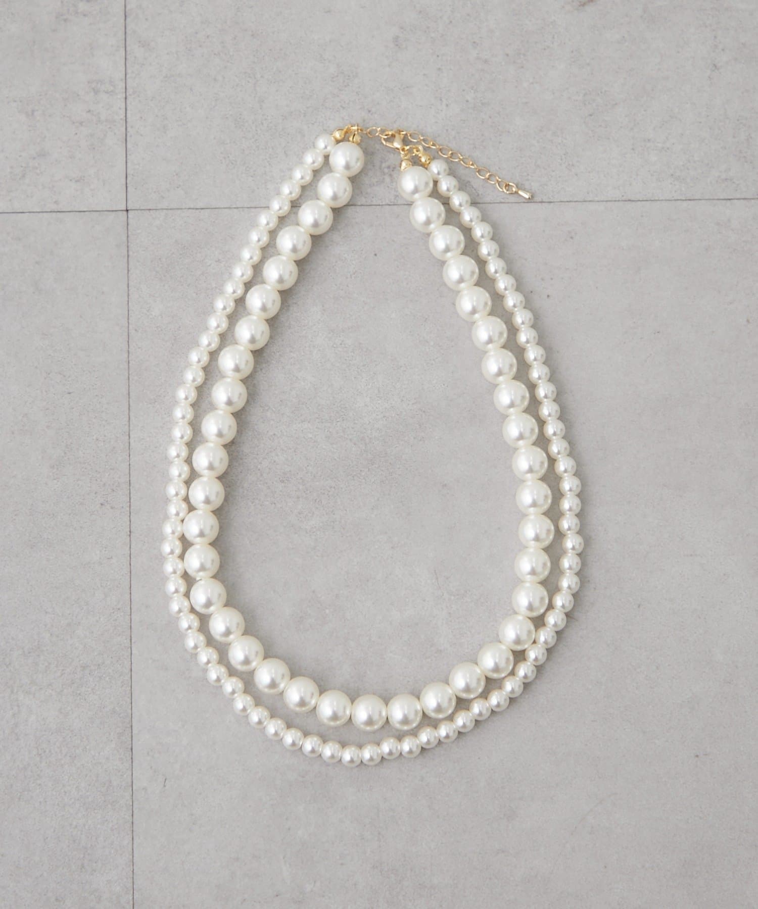 ・大粒パールと小粒パールの2連仕様で立体感あるデザインのネックレス。