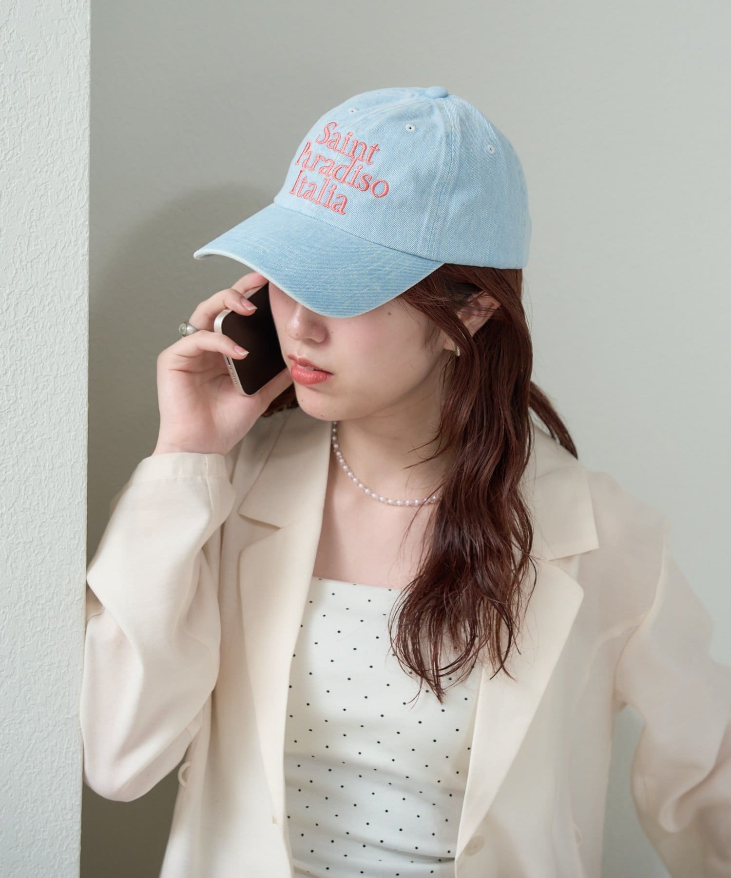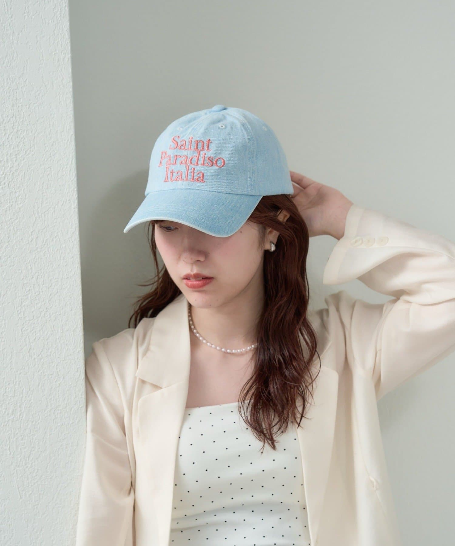 フロントの刺繍ロゴがポイントになったデニムキャップ