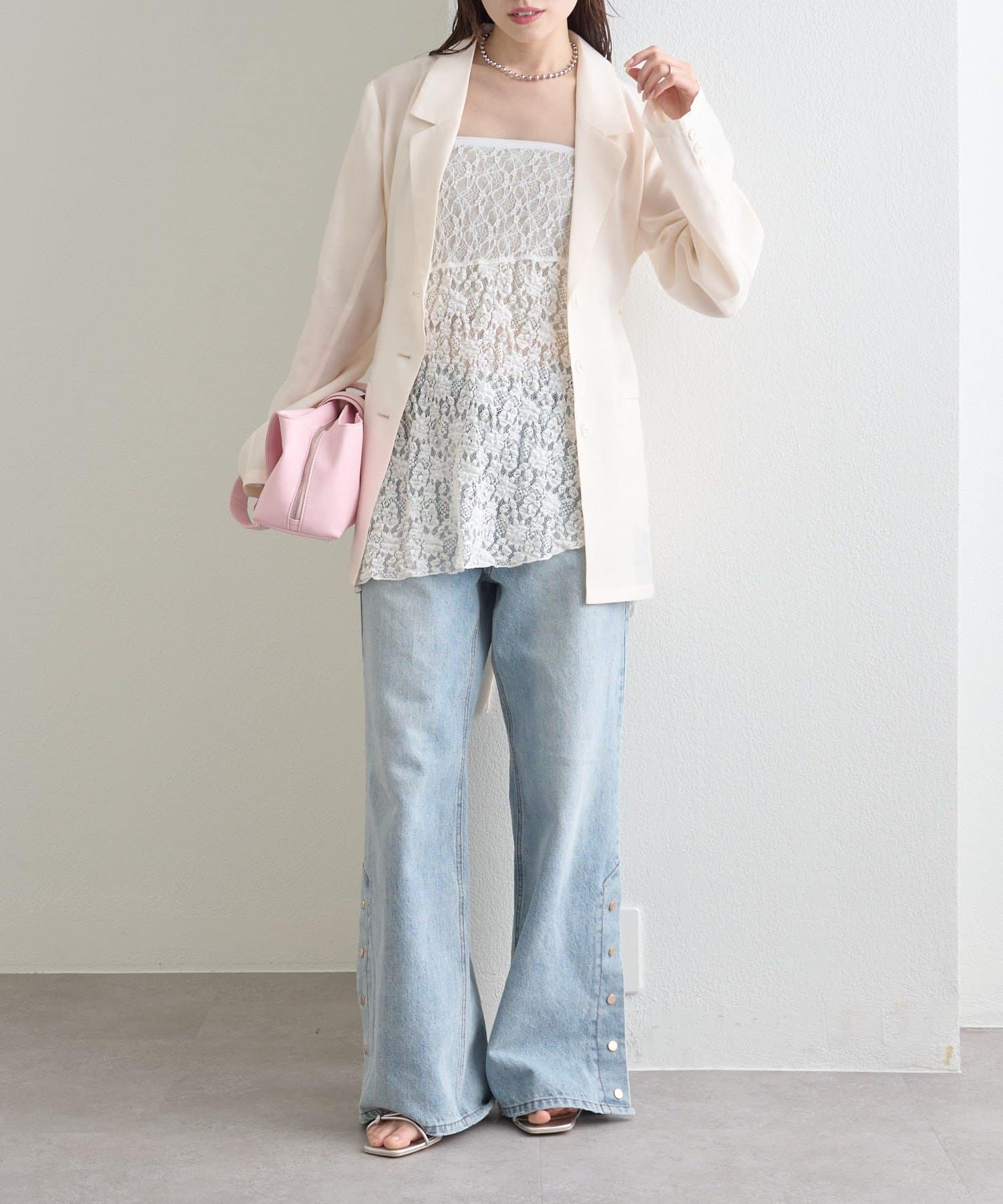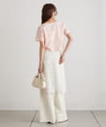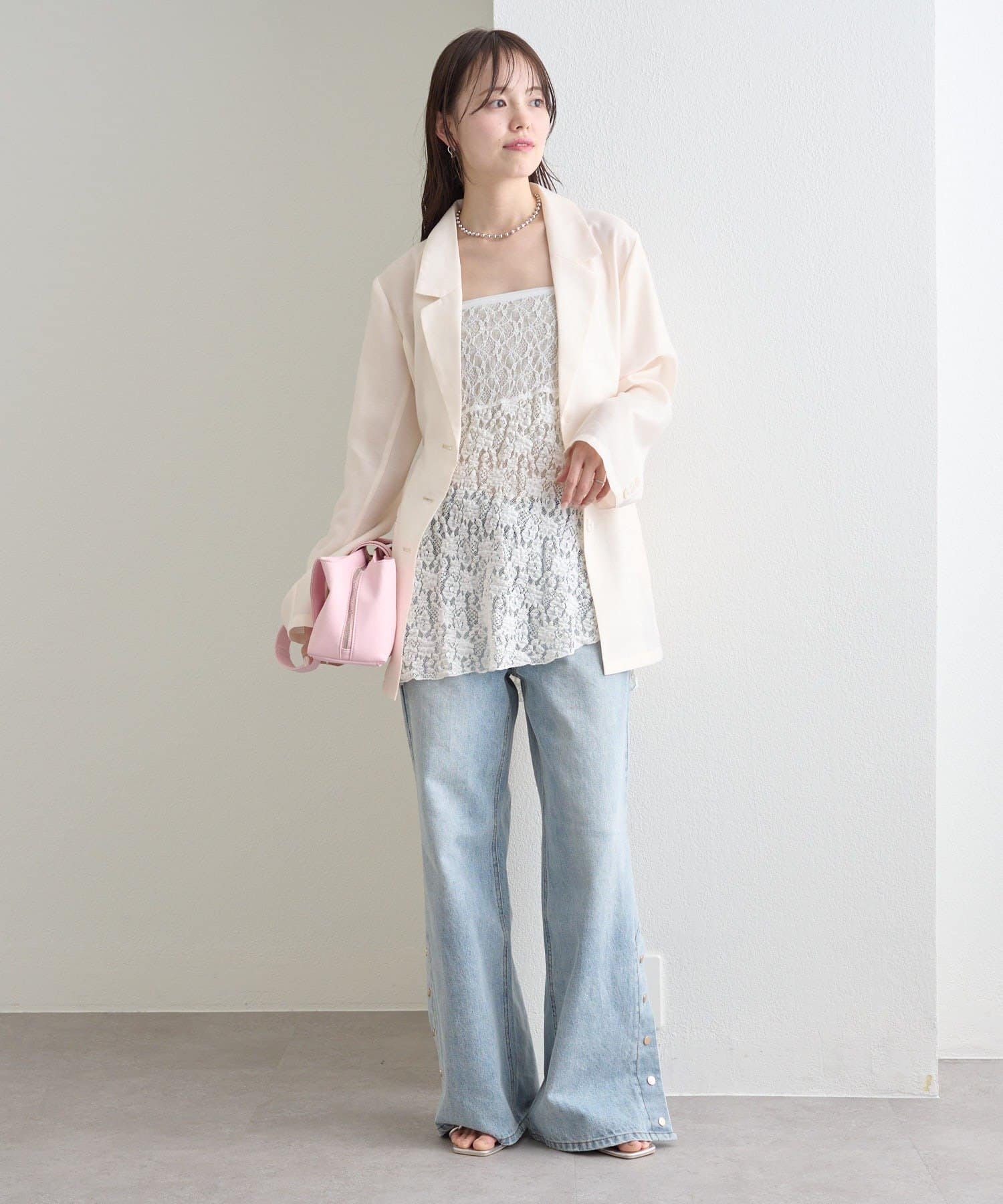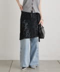 シンプルなボトムスに重ねるだけで、トレンド感のあるスタイリングが完成します。