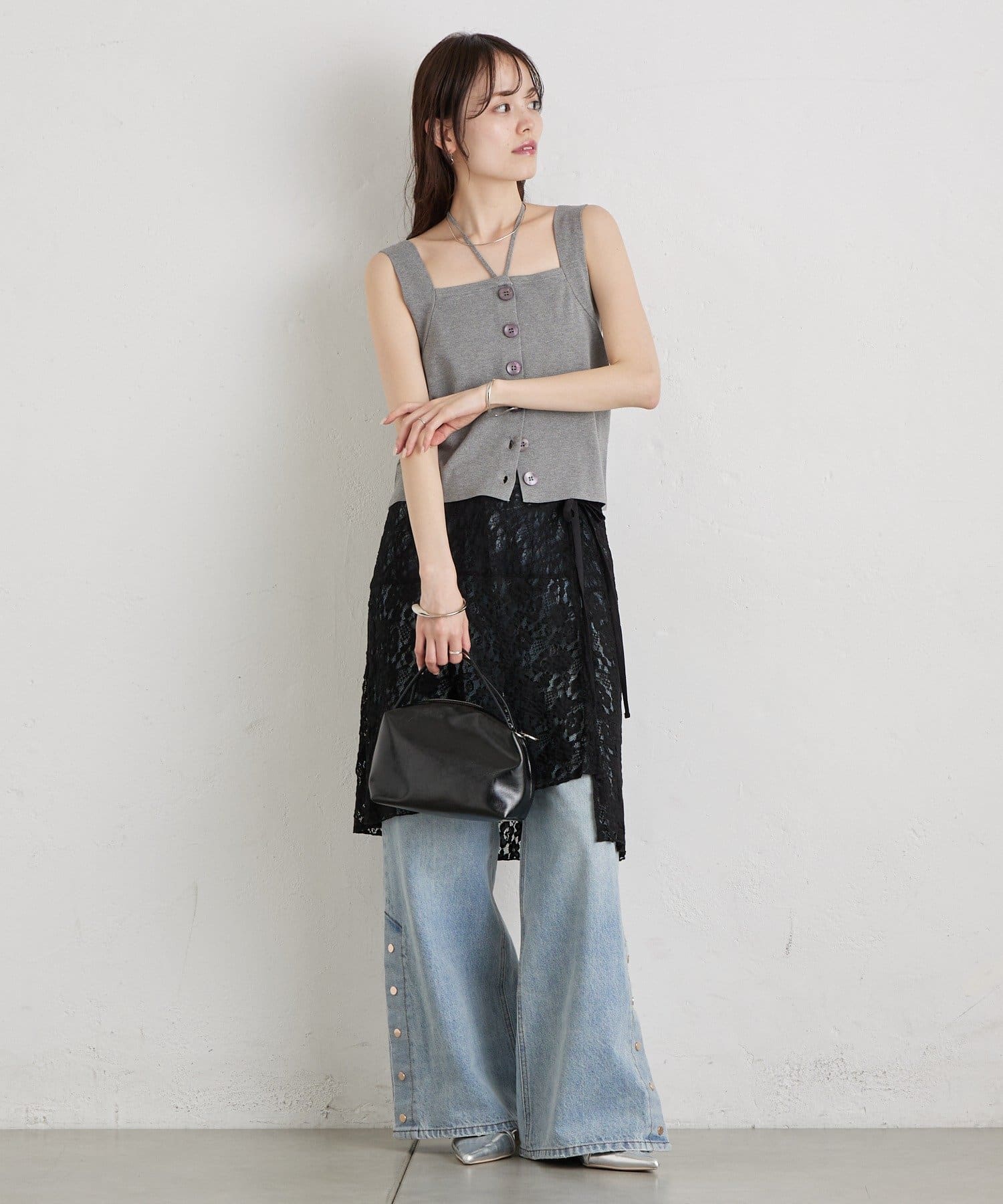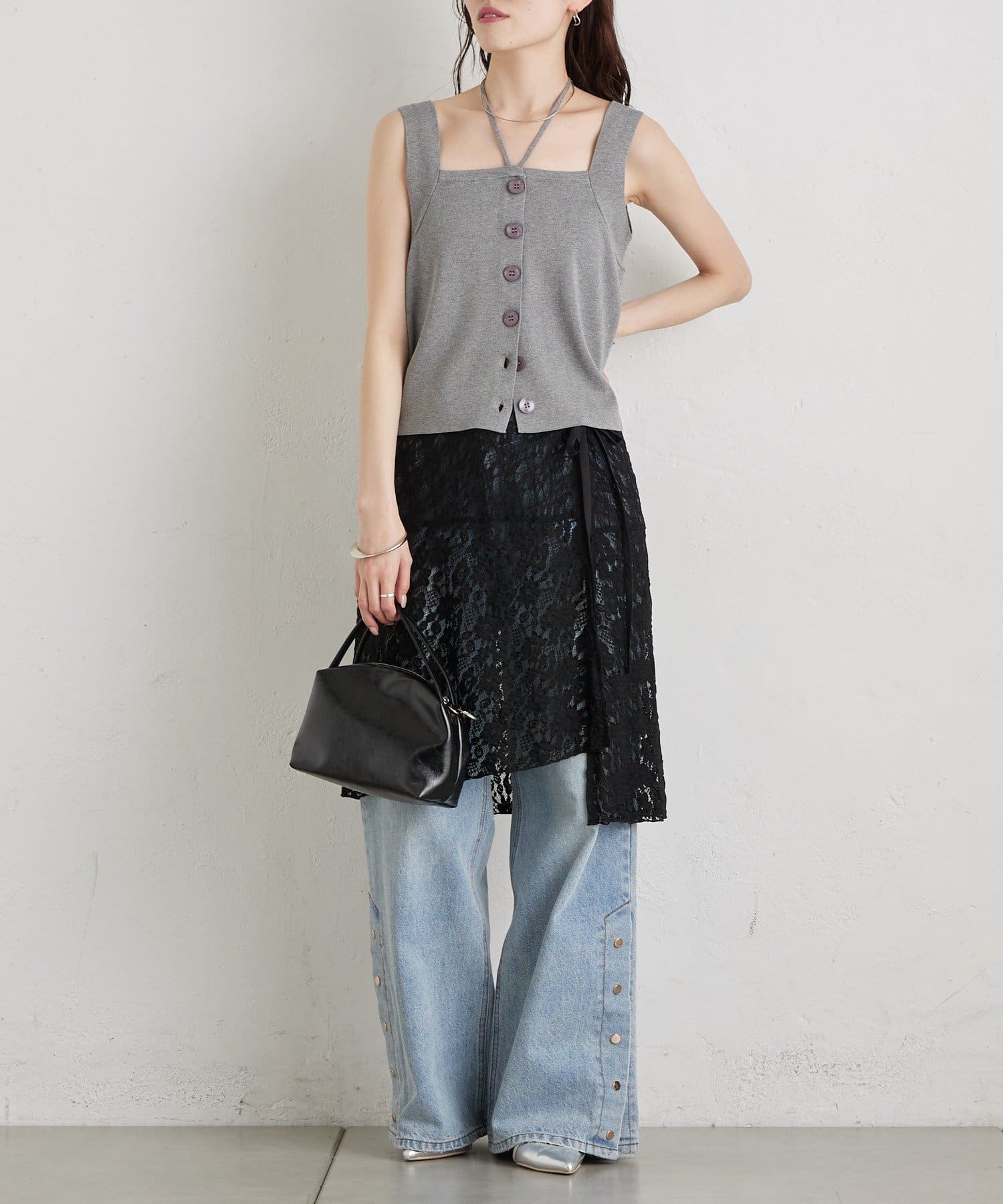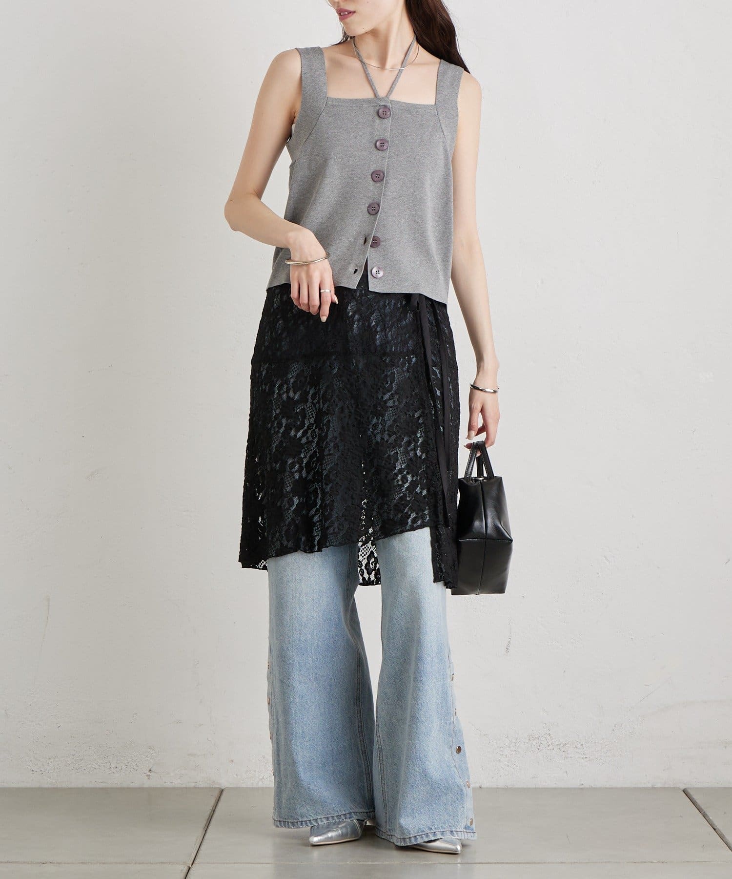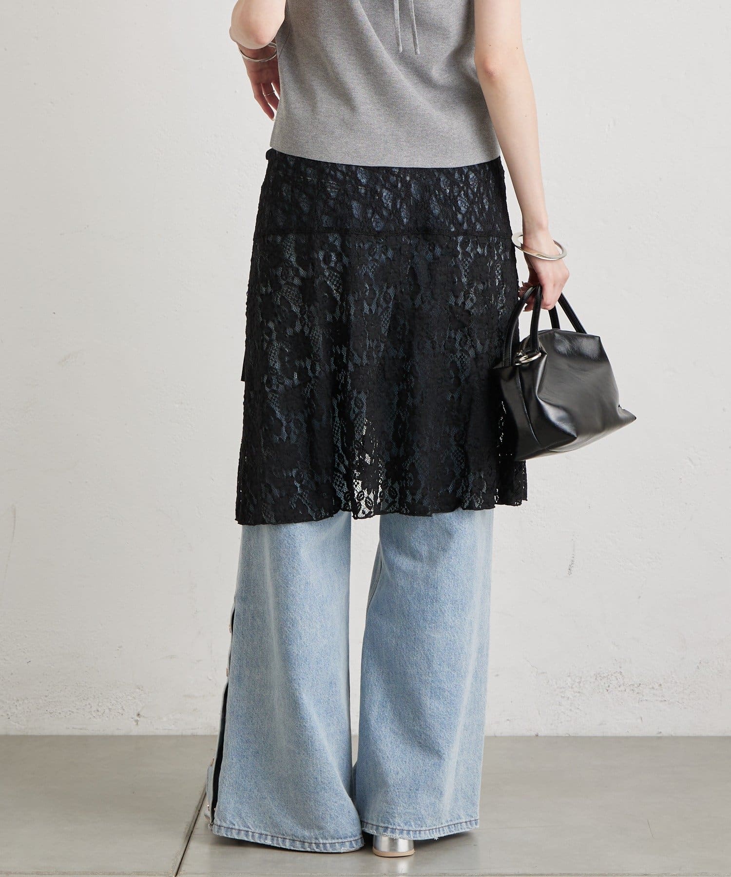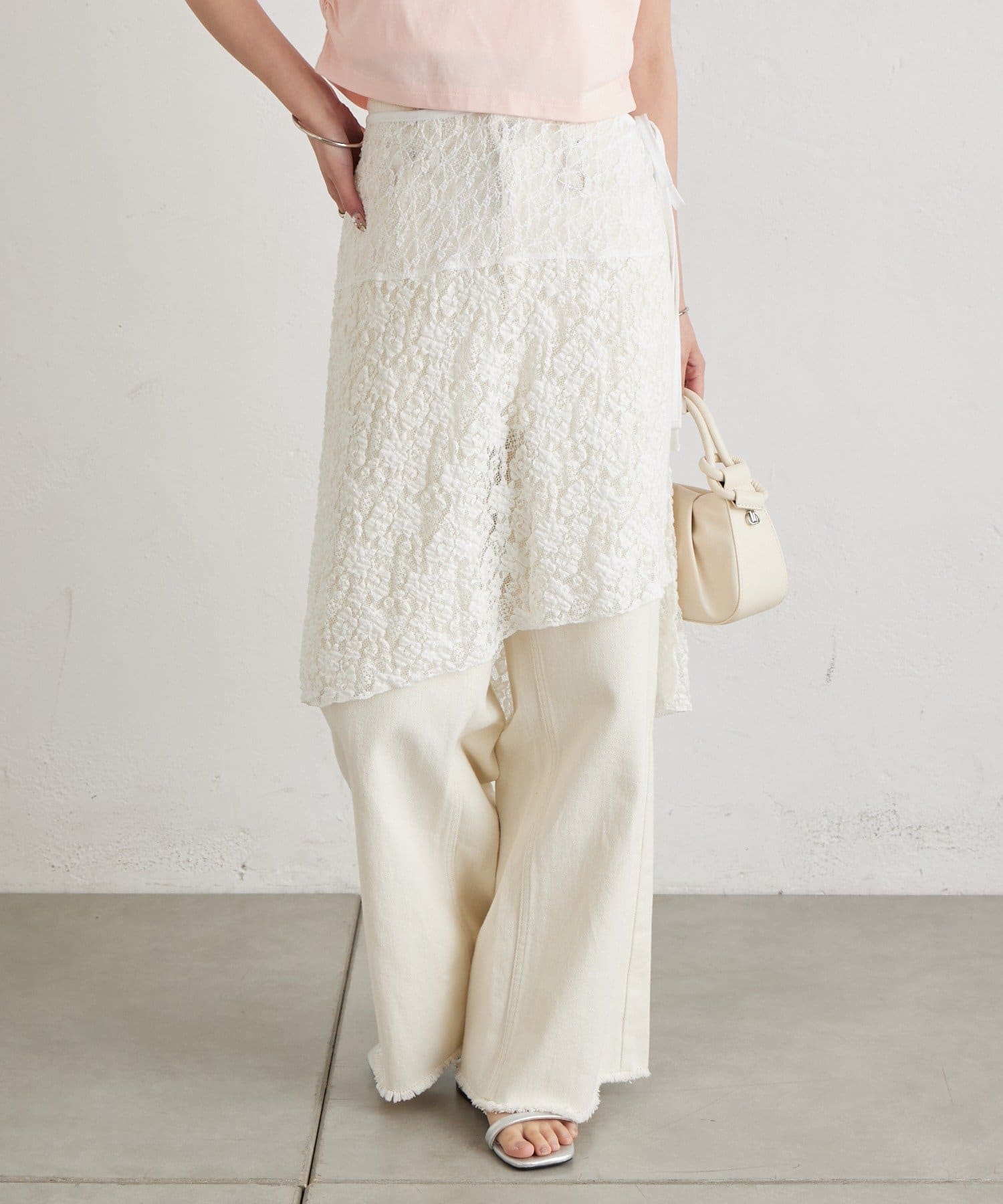 繊細なレースが可愛い 旬なレイヤードスタイルを楽しめるラップスカート