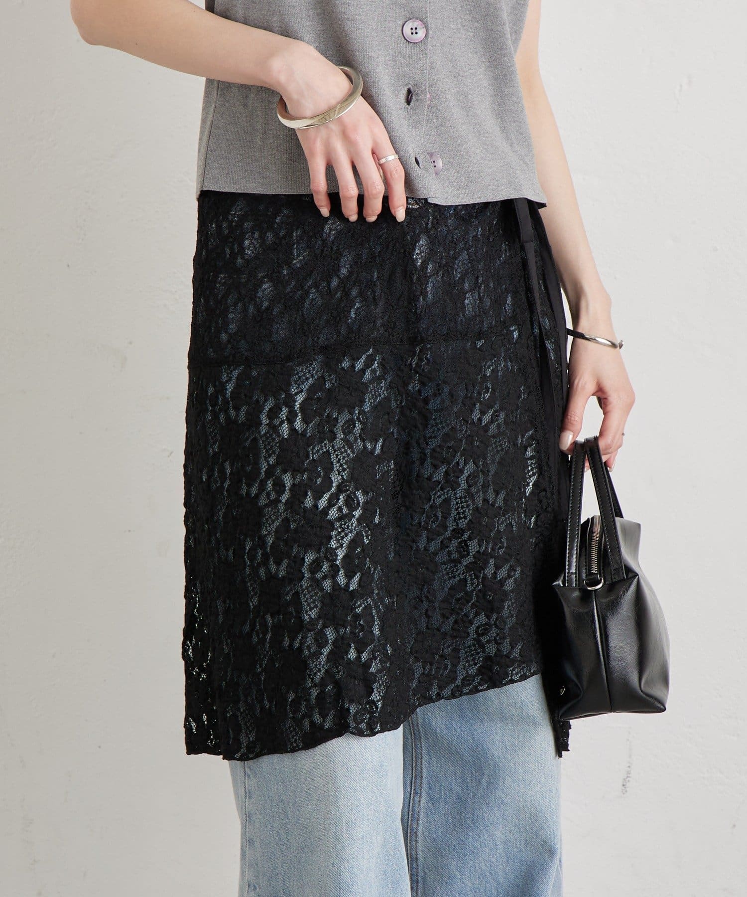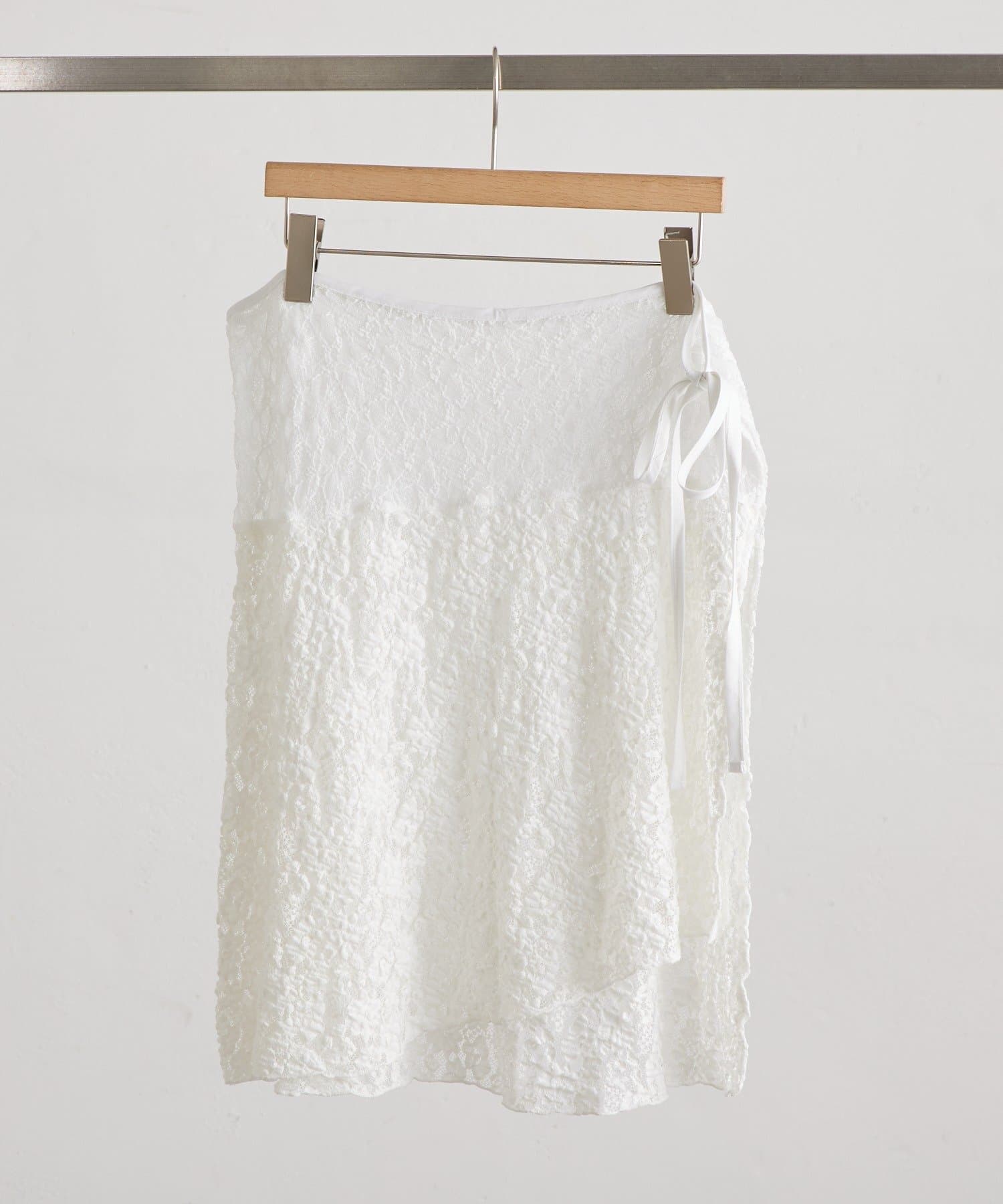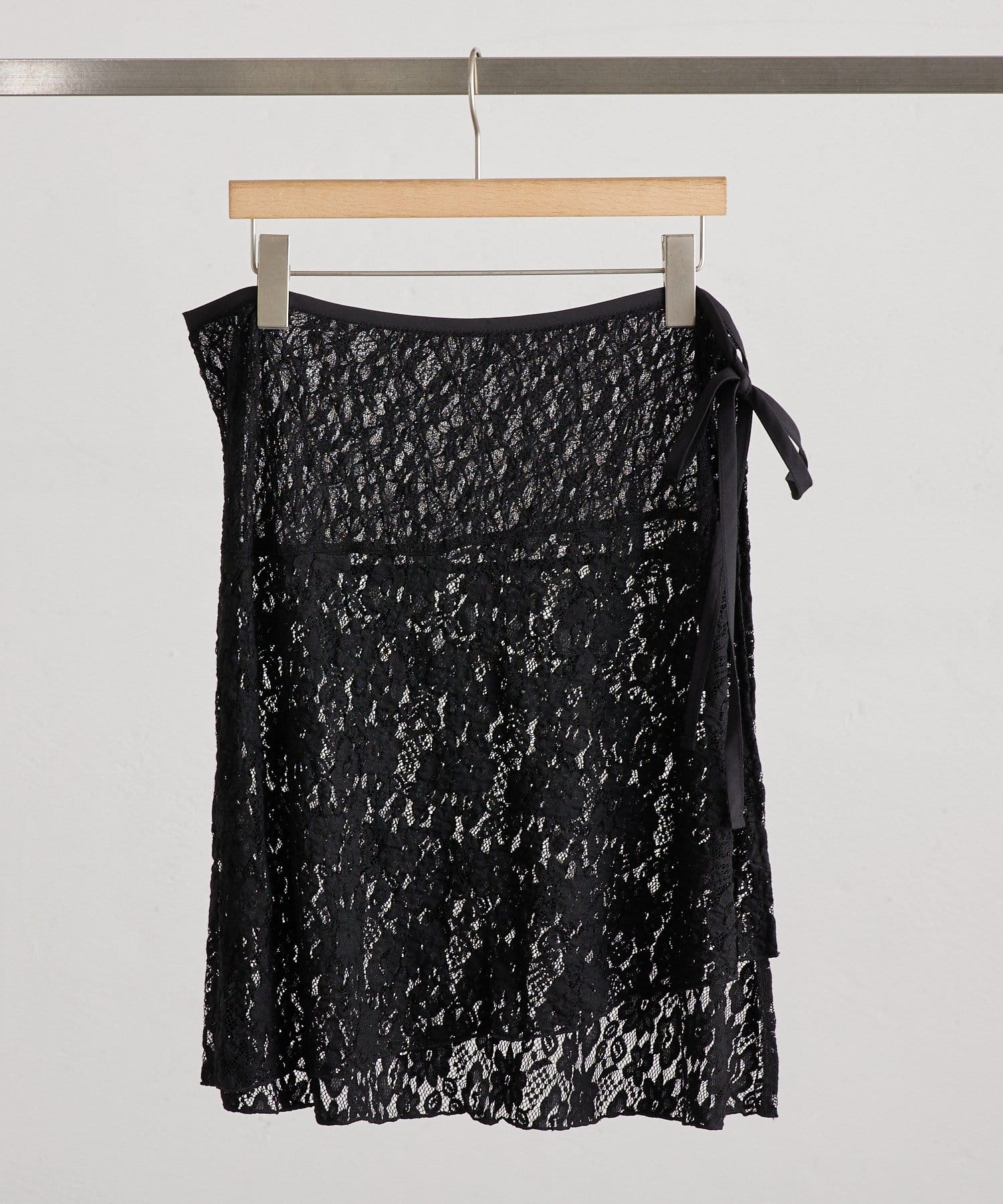 繊細なレースが女性らしさを引き立てるラップスカート。