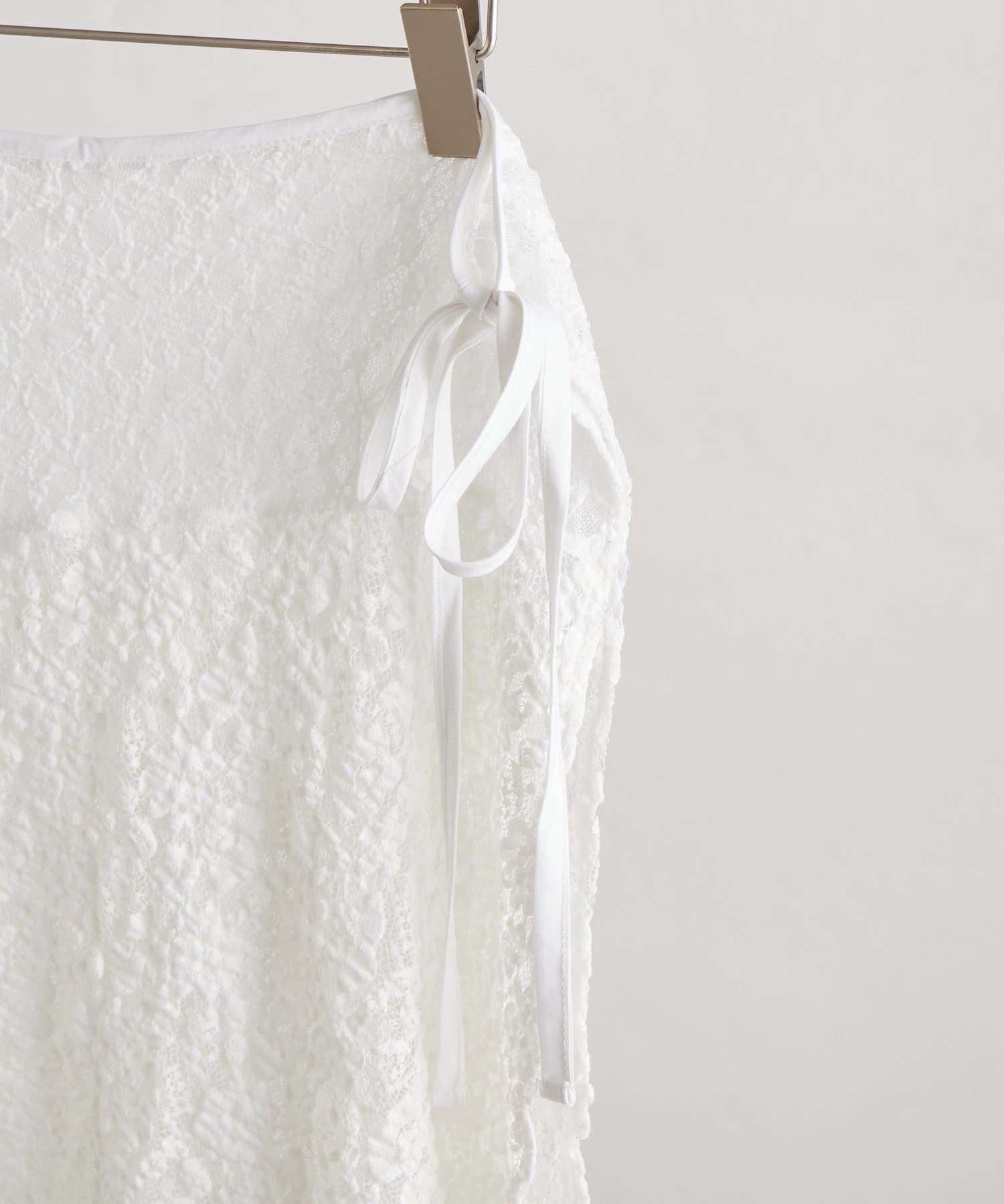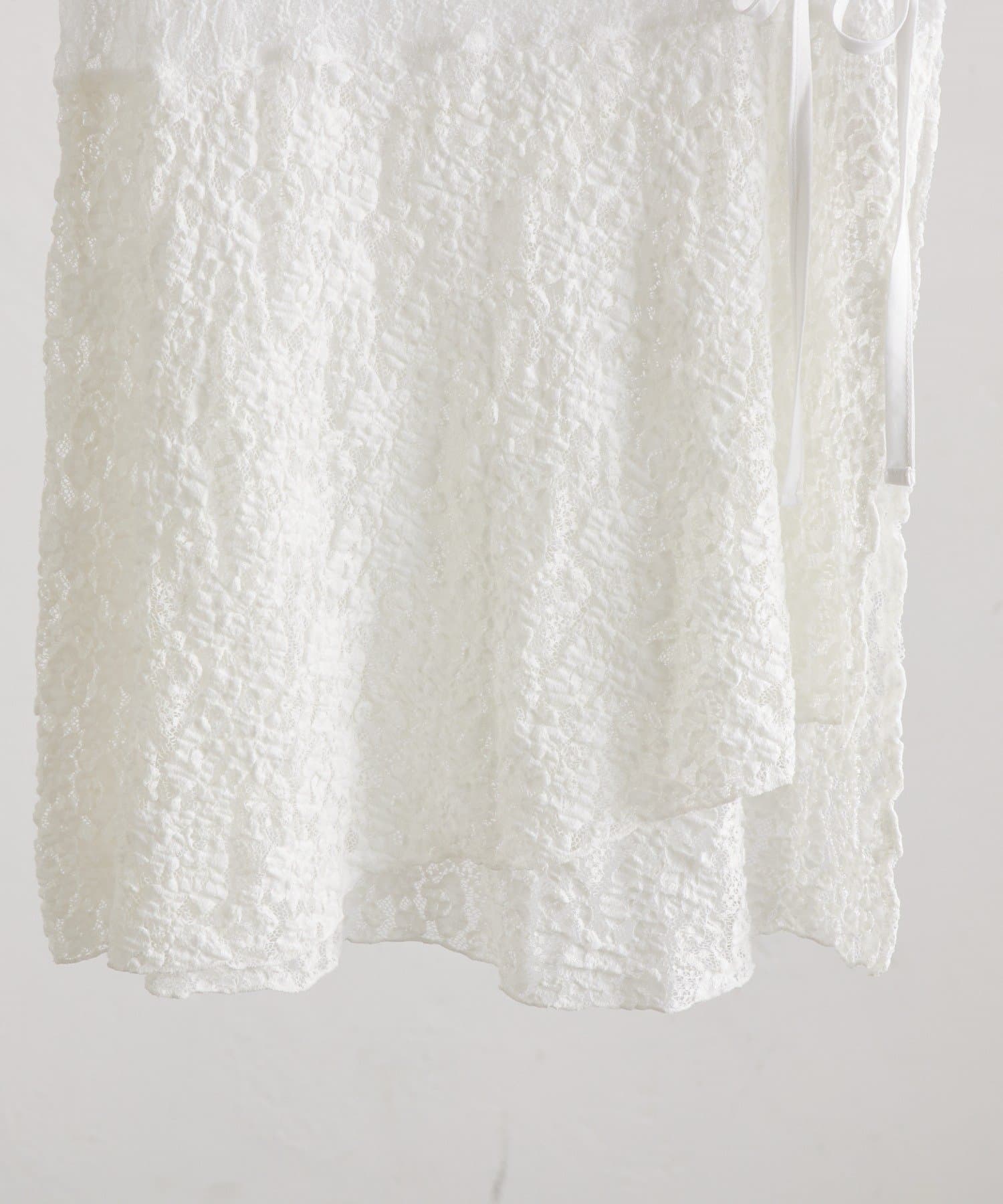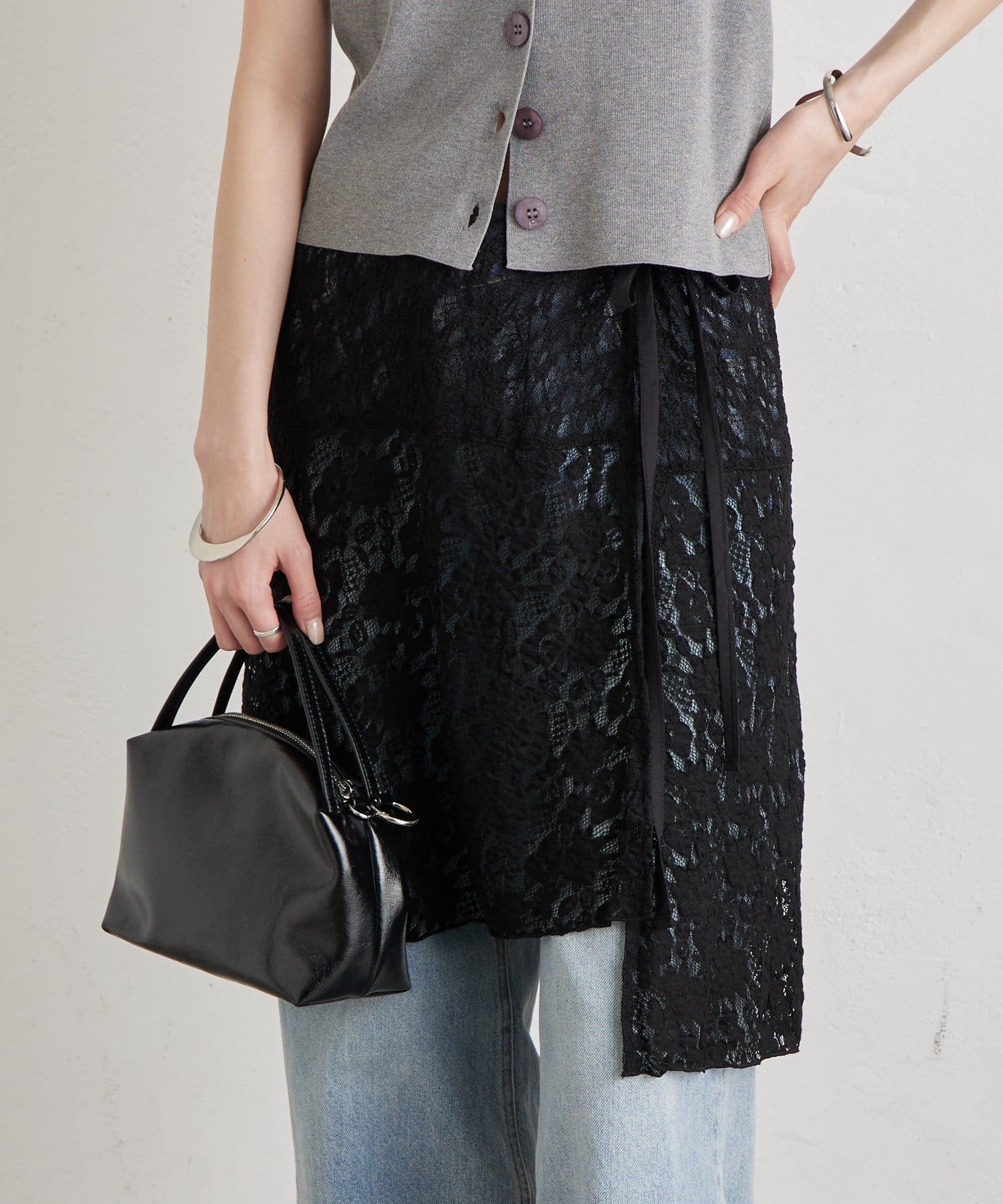 繊細なレースが女性らしさを引き立てるラップスカート。