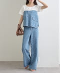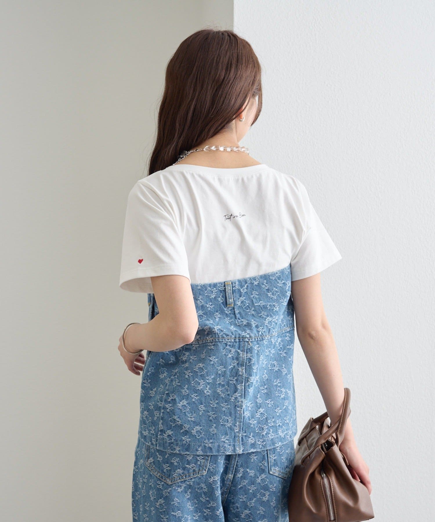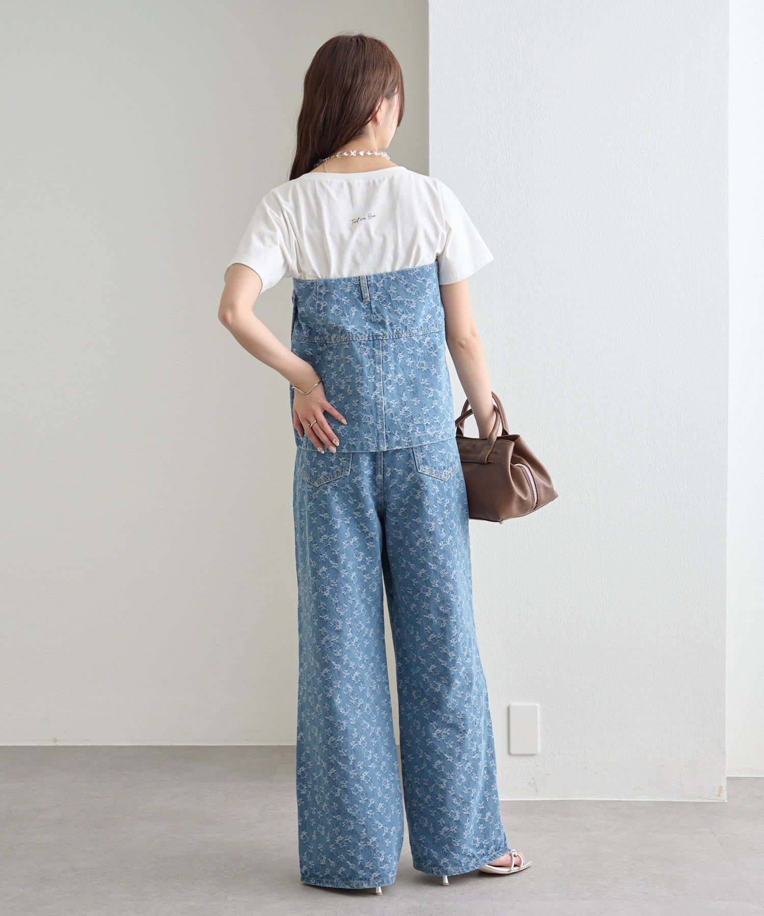 ・カジュアルになりがちなデニムアイテムも、小花柄デザインで女性らしく柔らかい印象に。