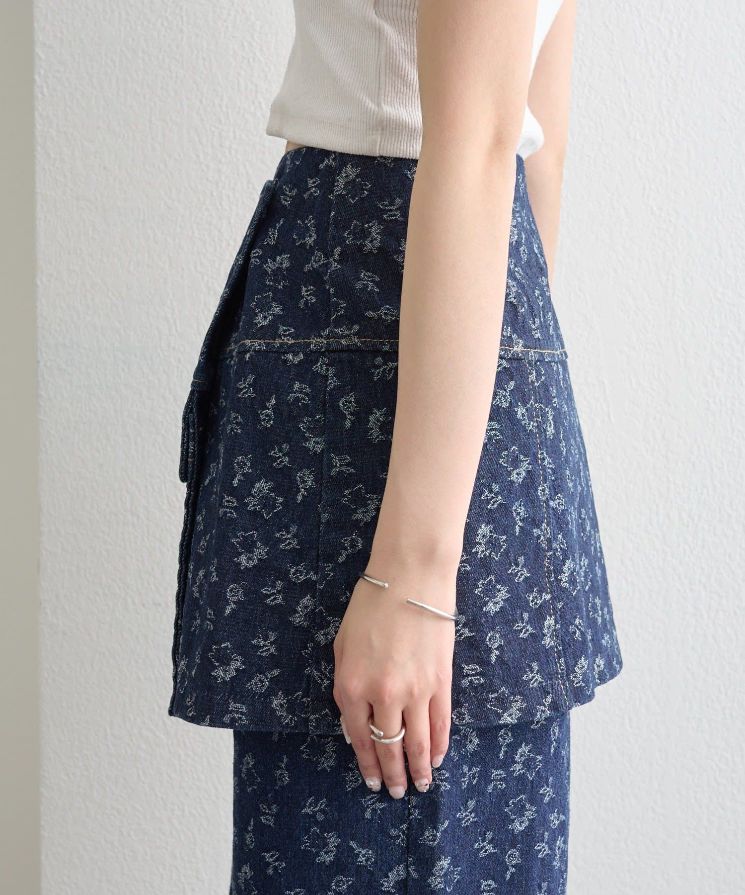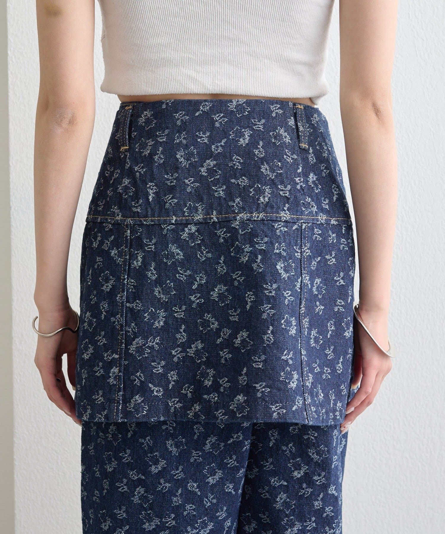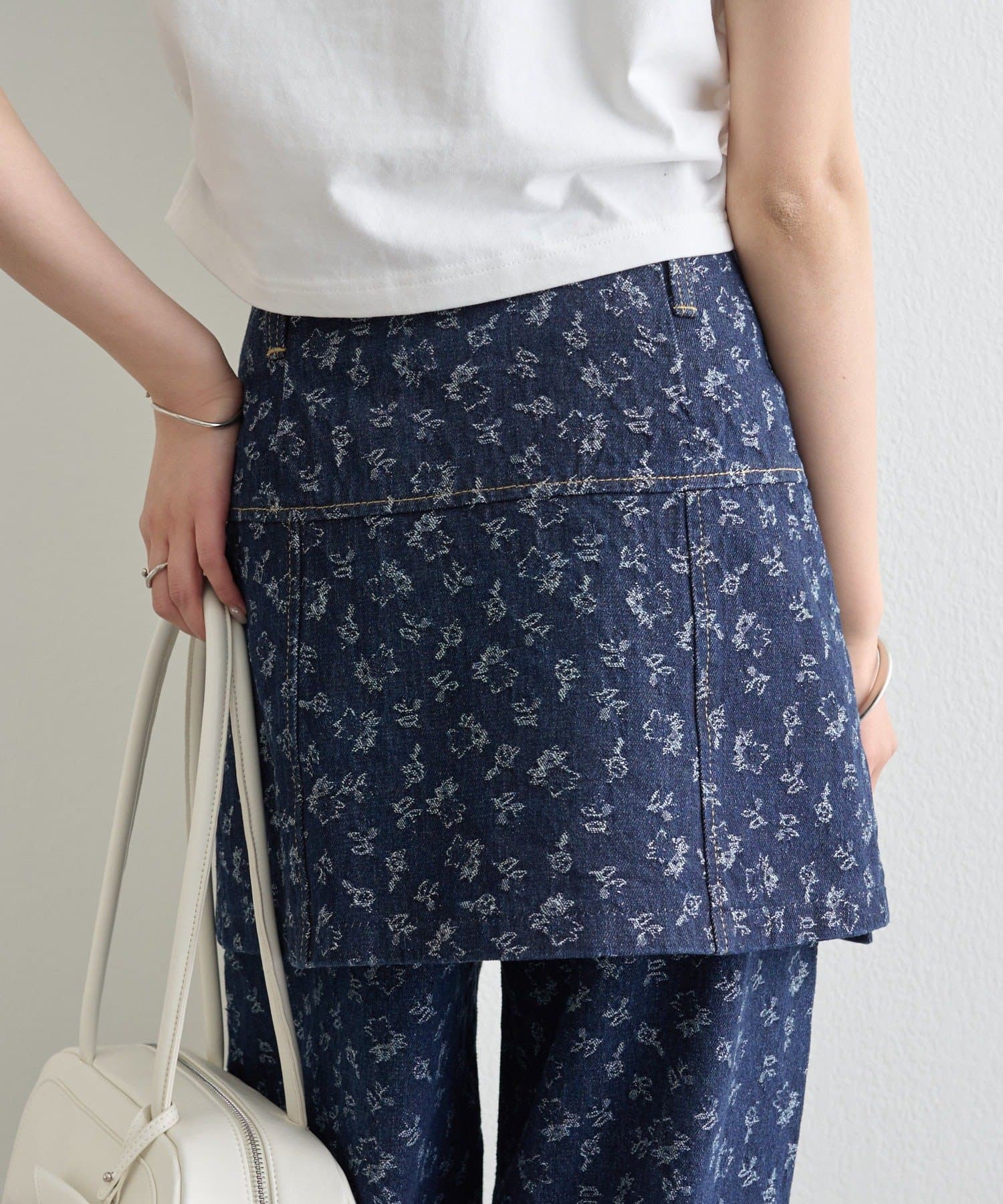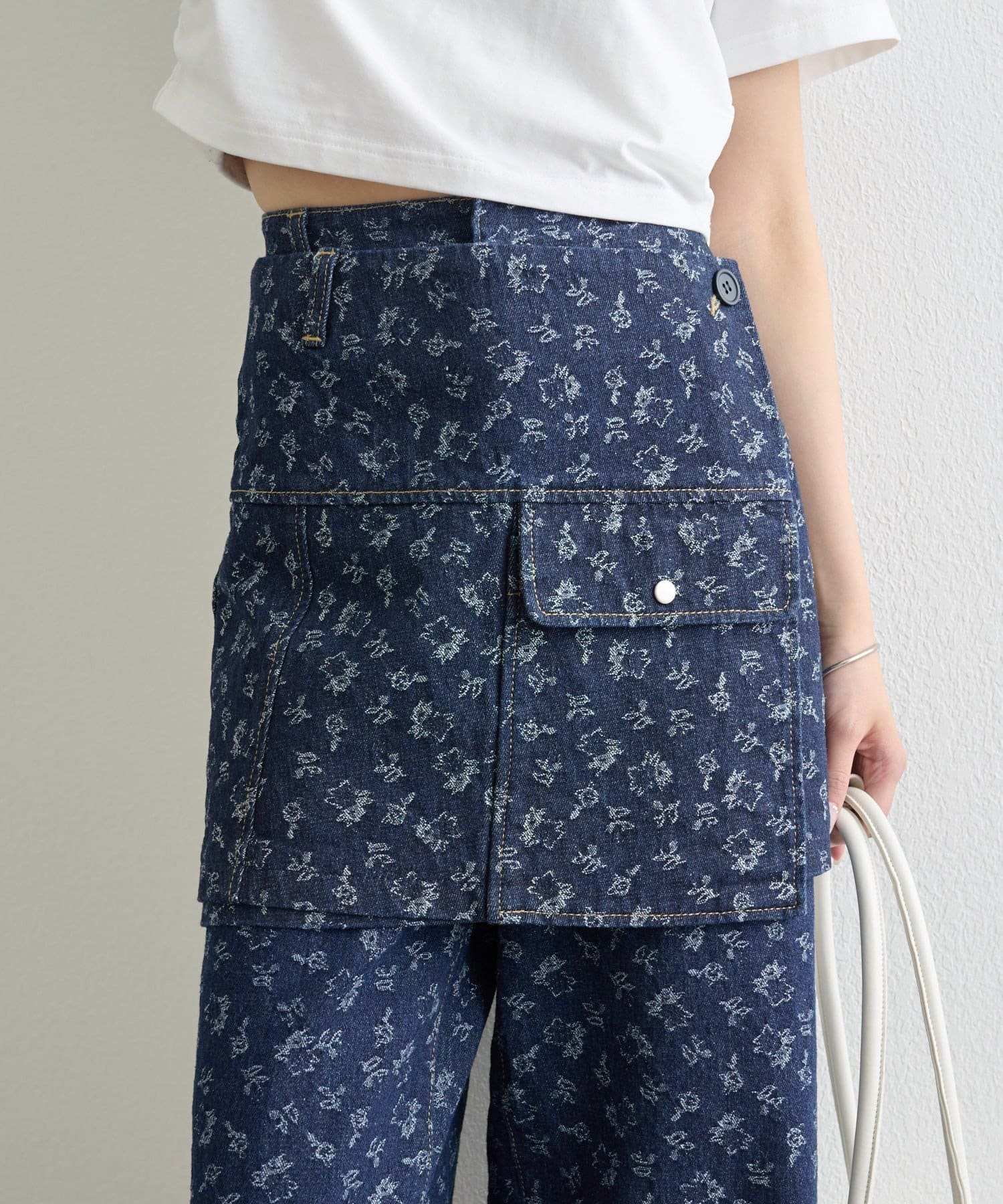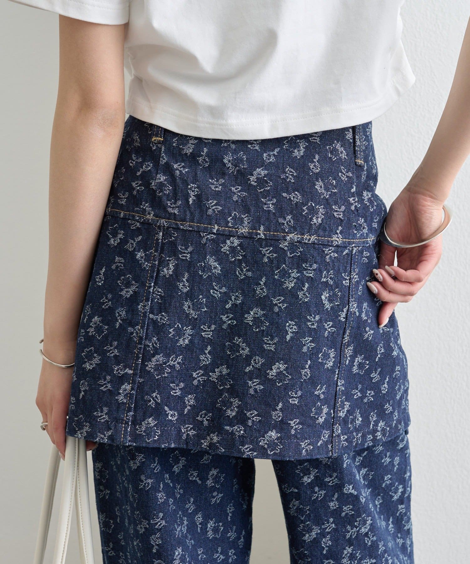 ・デニム素材にフラワー柄を落とし込んだ、周りと差はつくラップスカート。
