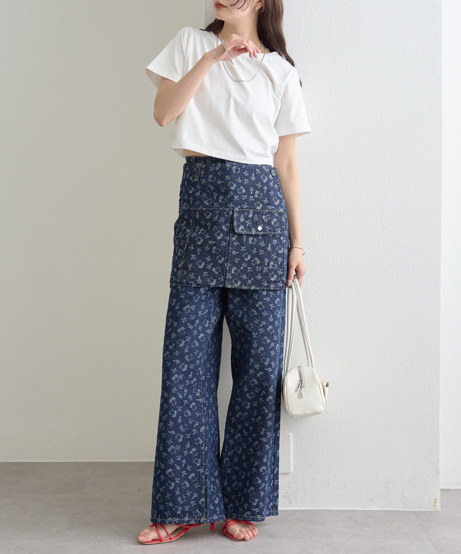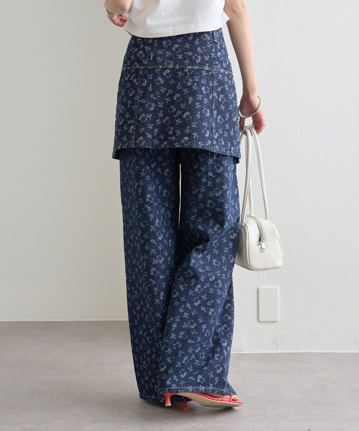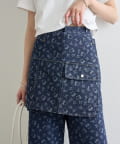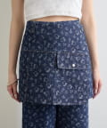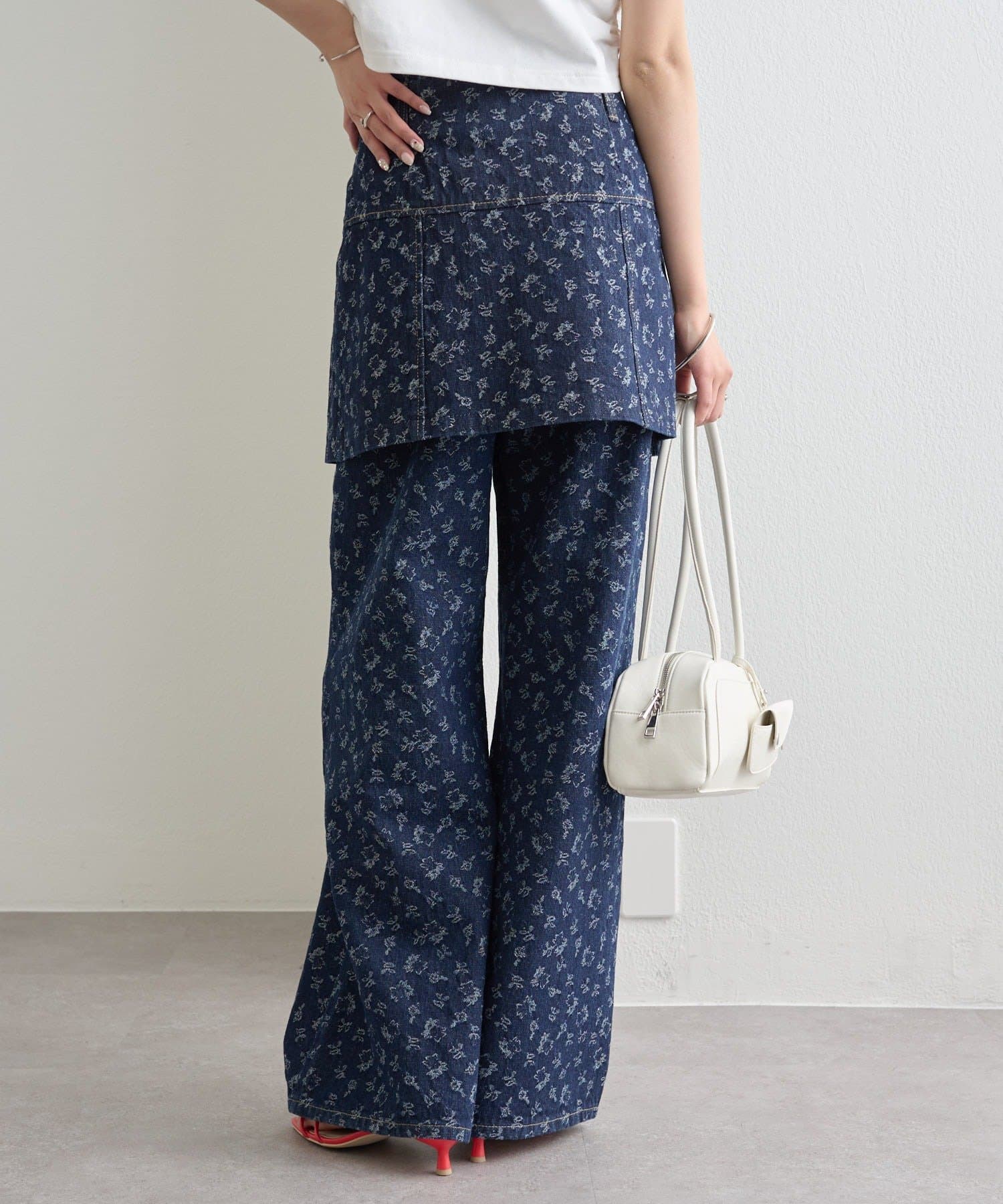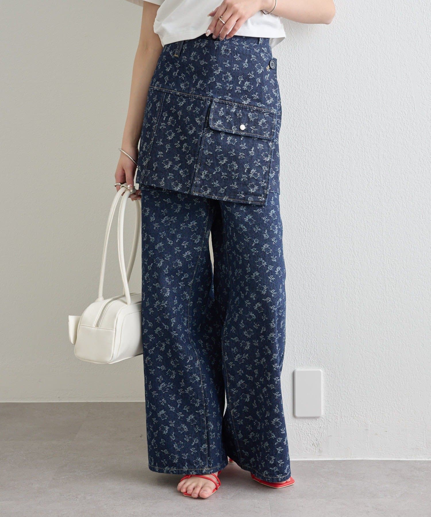 ・デニム素材にフラワー柄を落とし込んだ、周りと差はつくラップスカート。
