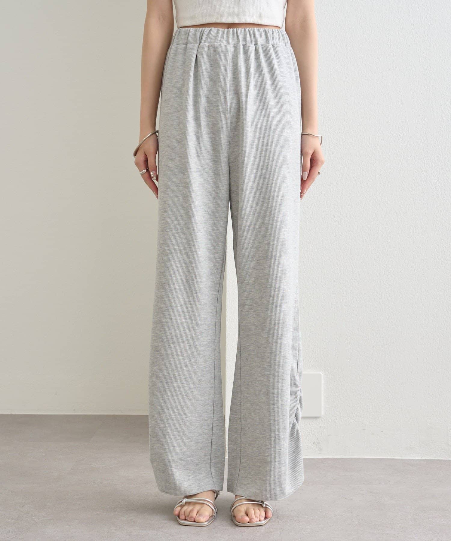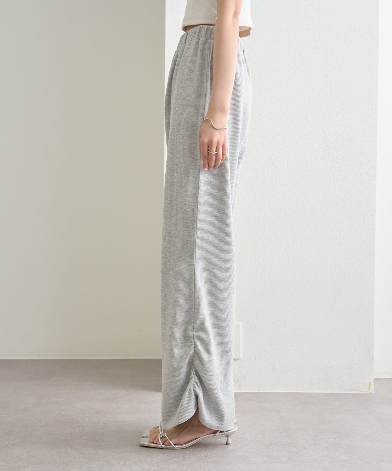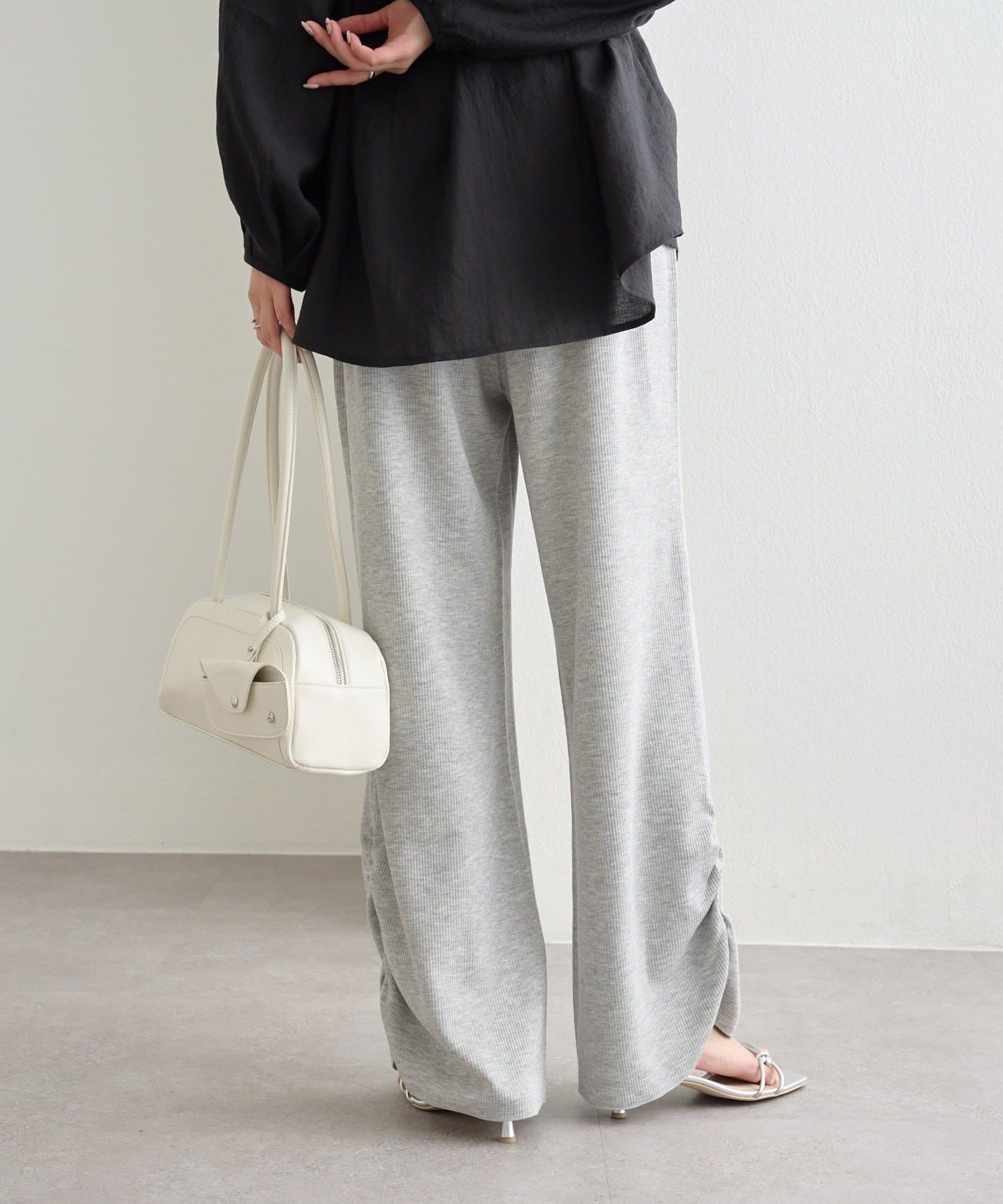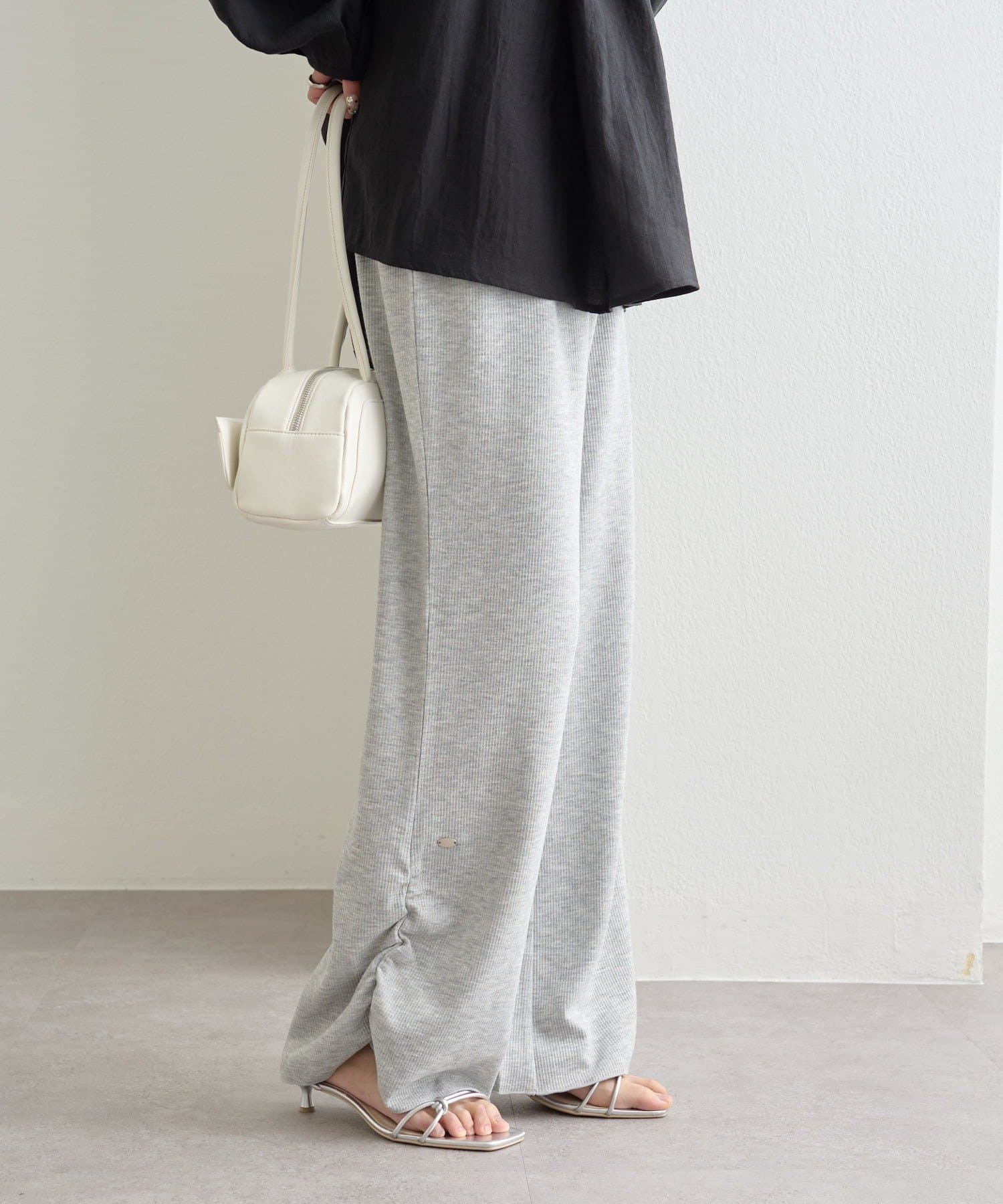 ラフな惹き心地ながらも裾ギャザーで抜け感をプラスするリブパンツ