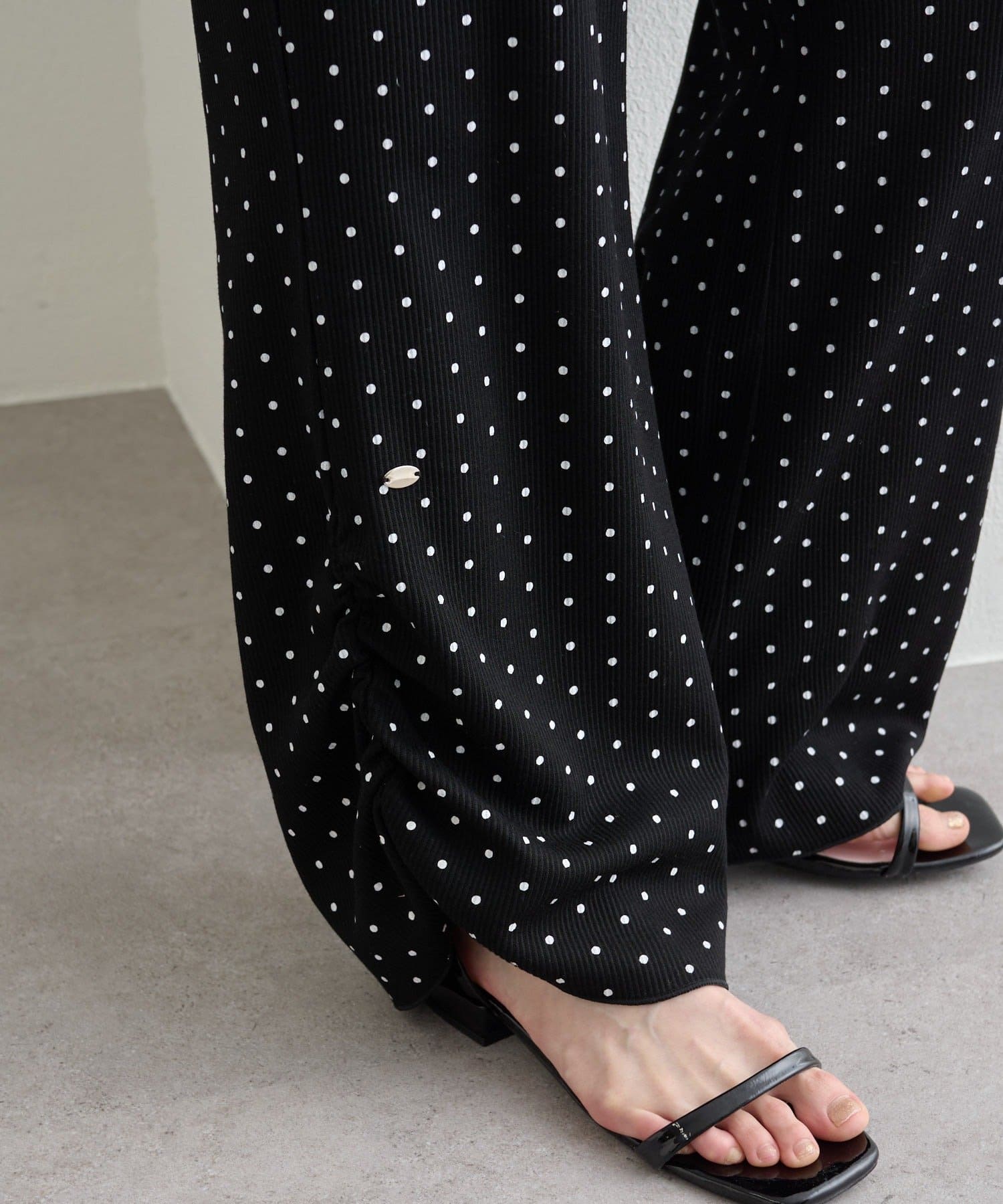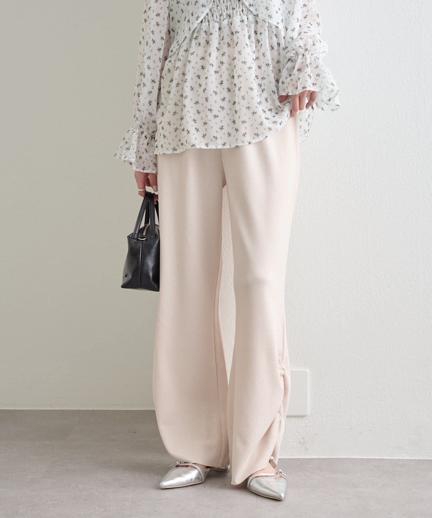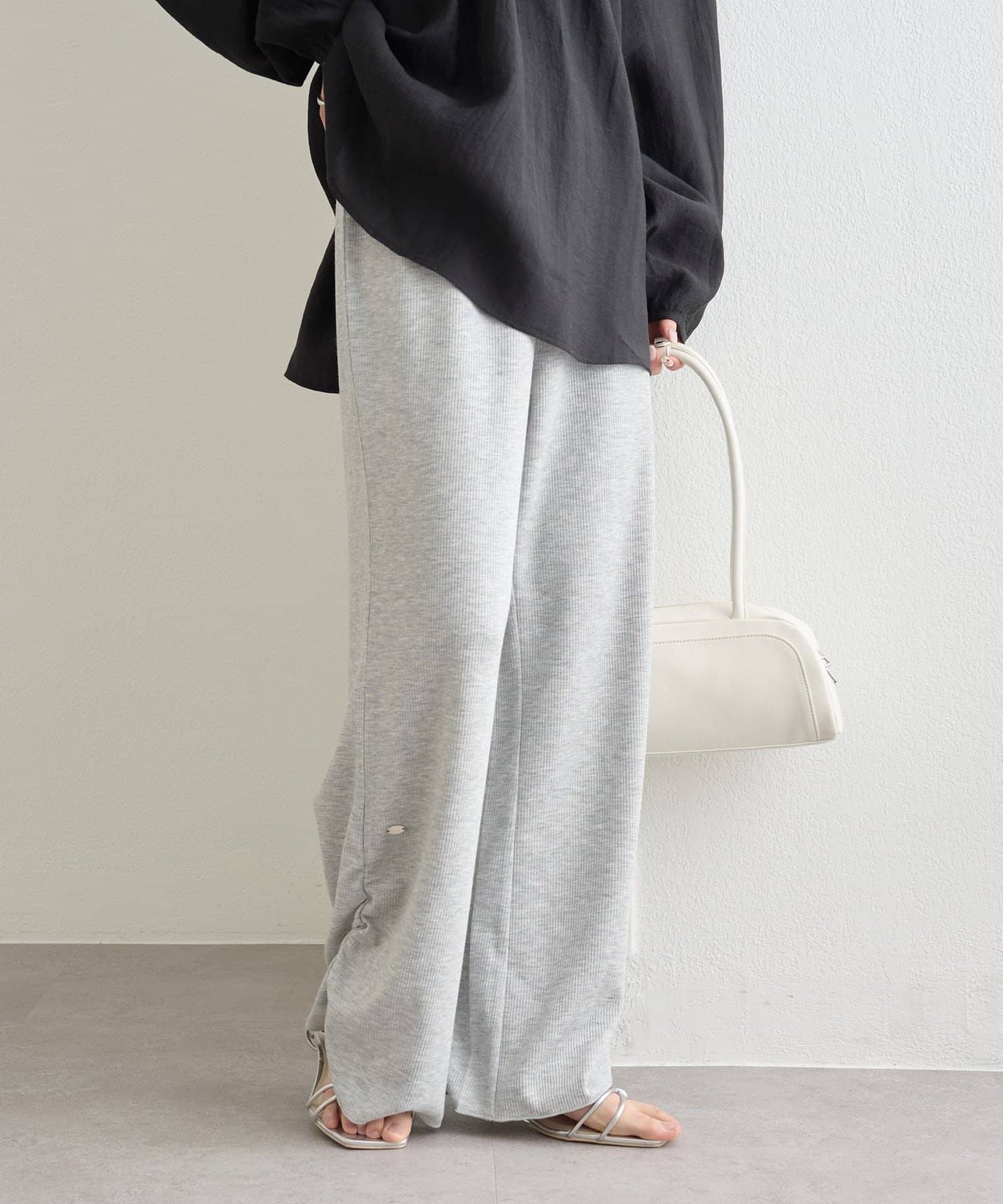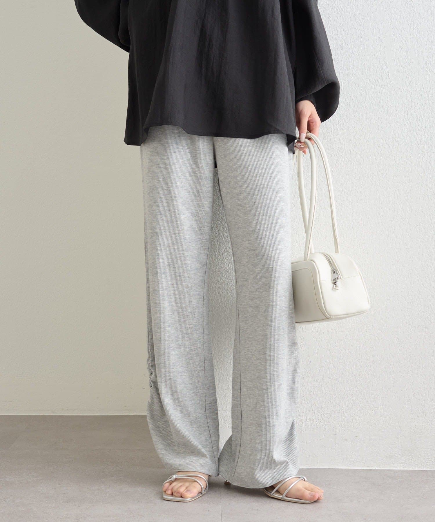 ラフな惹き心地ながらも裾ギャザーで抜け感をプラスするリブパンツ