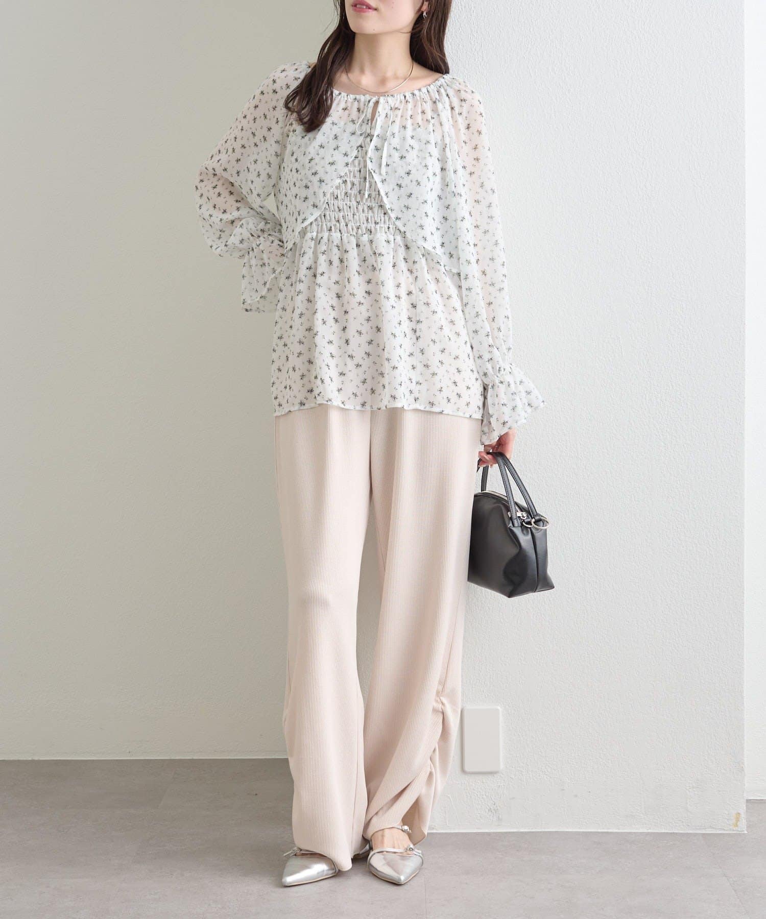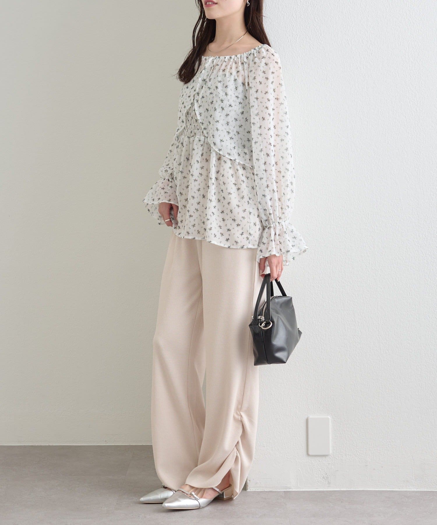 ・裾のギャザーがポイントになり、シンプルすぎずさりげなくアクセントをプラスします。