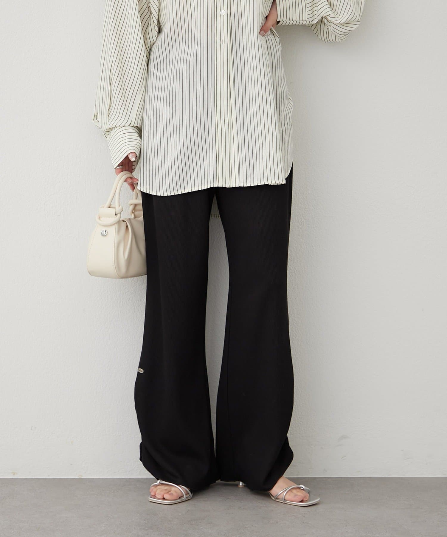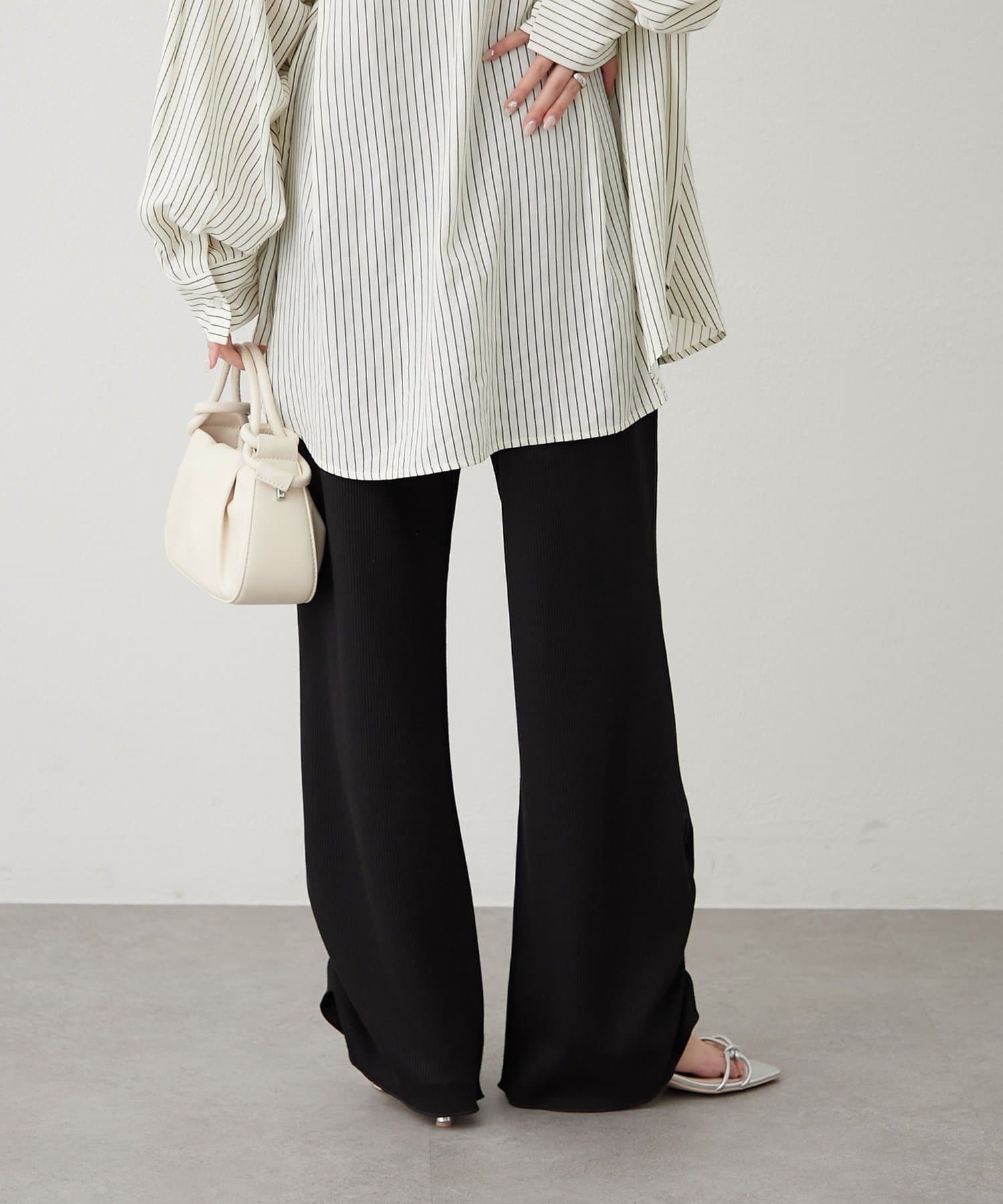 ・伸縮性のあるリブ素材で、リラックス感がありながらもすっきり見えが叶うパンツ。