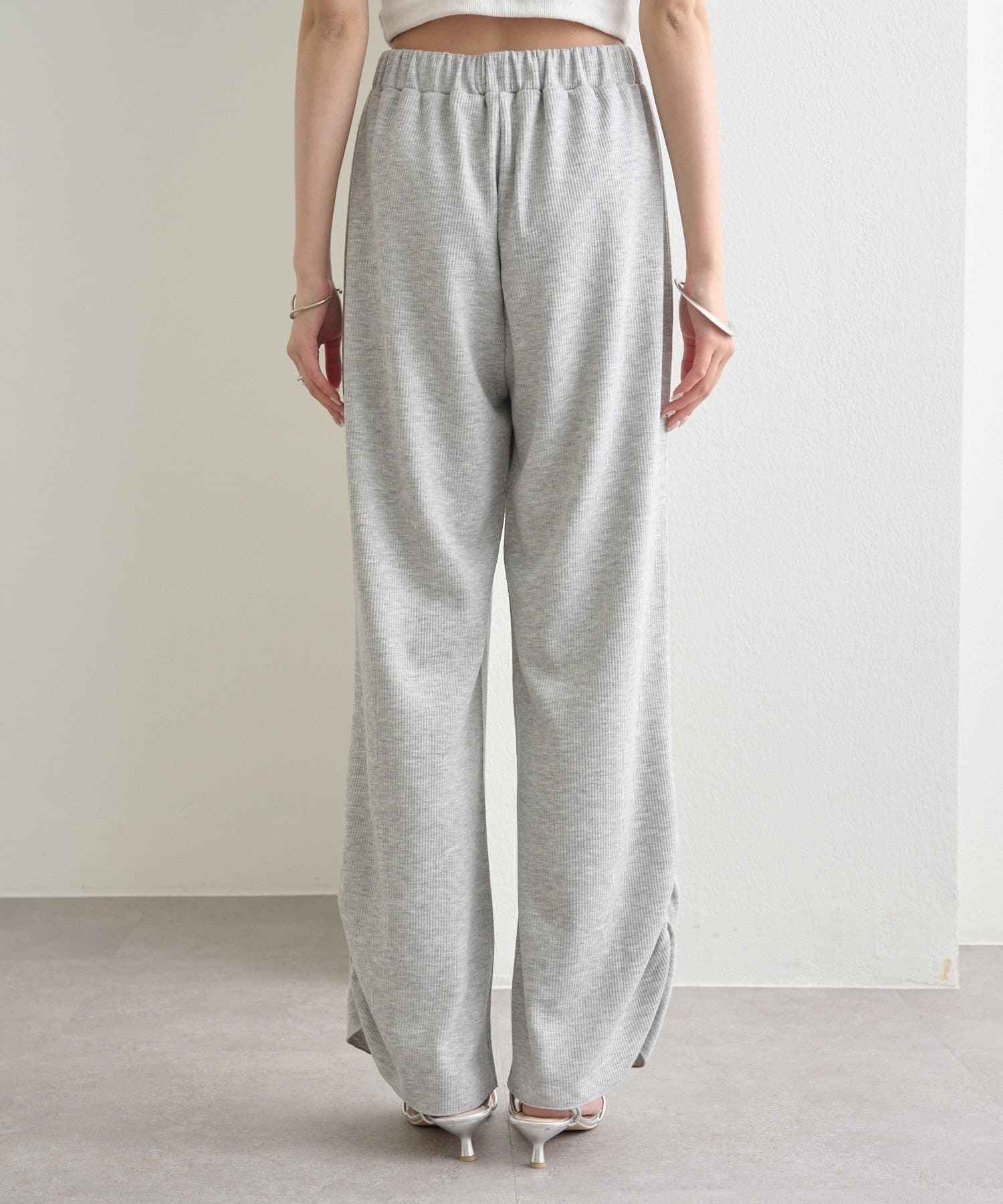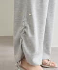 ラフな惹き心地ながらも裾ギャザーで抜け感のあるリブパンツ