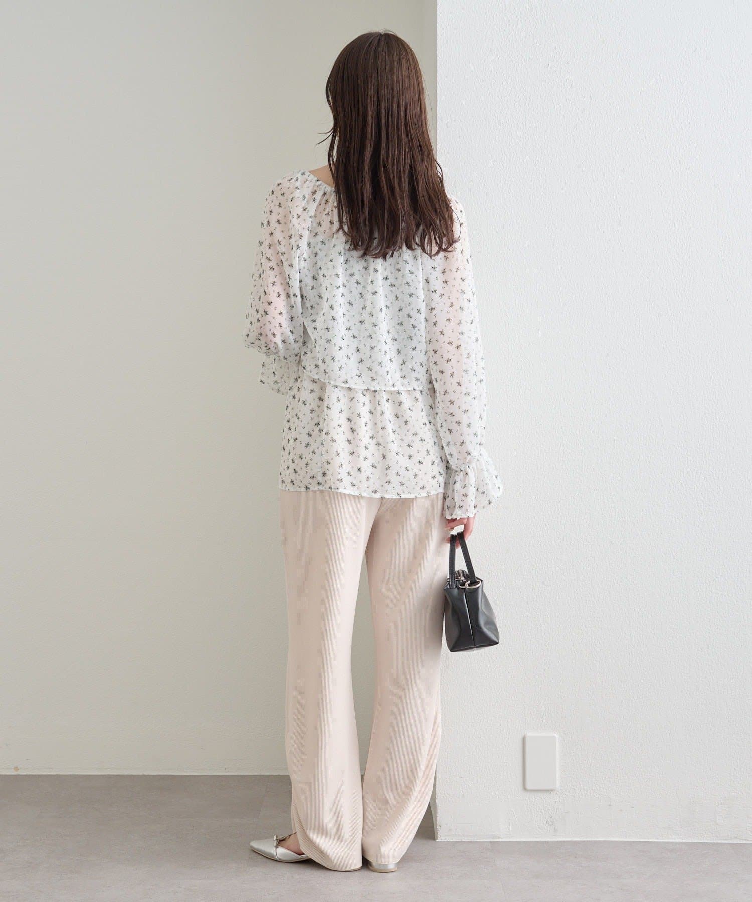 裾のギャザーがさりげないアクセントになって、シンプルなスタイリングでもおしゃれに見えます◎