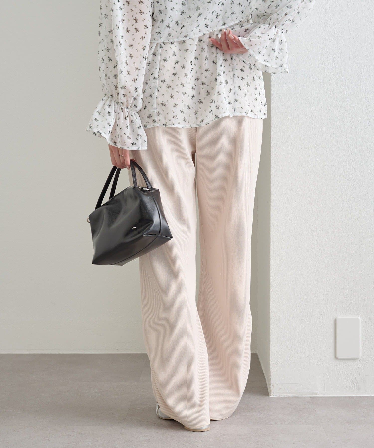 ・伸縮性のある素材で、リラックス感がありながらもスタイルアップが叶うリブパンツ。
