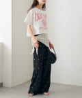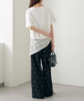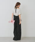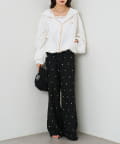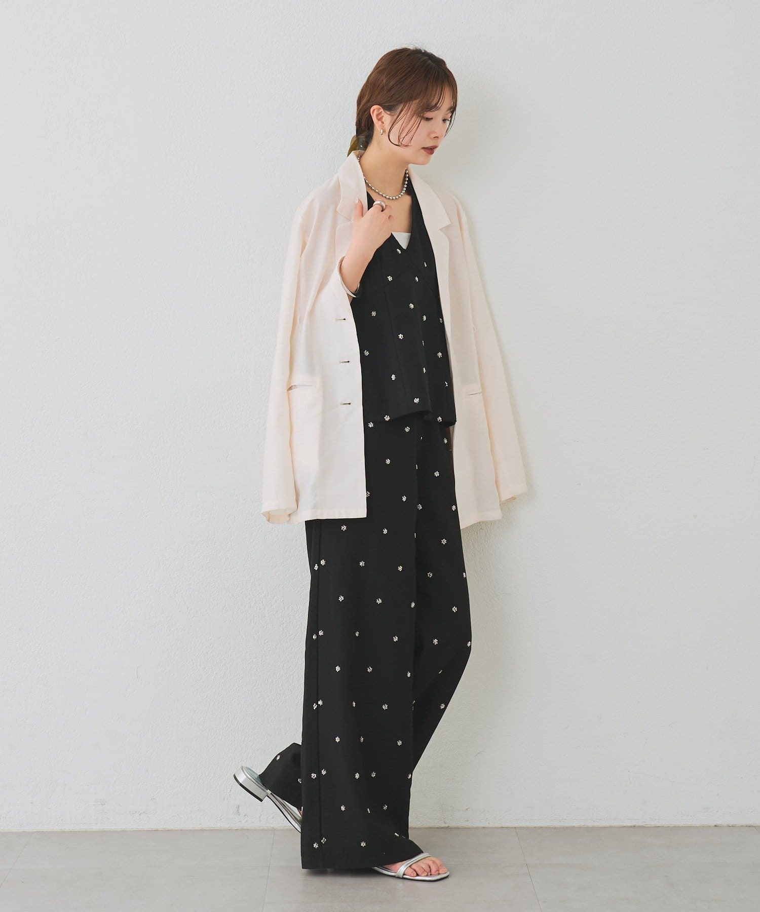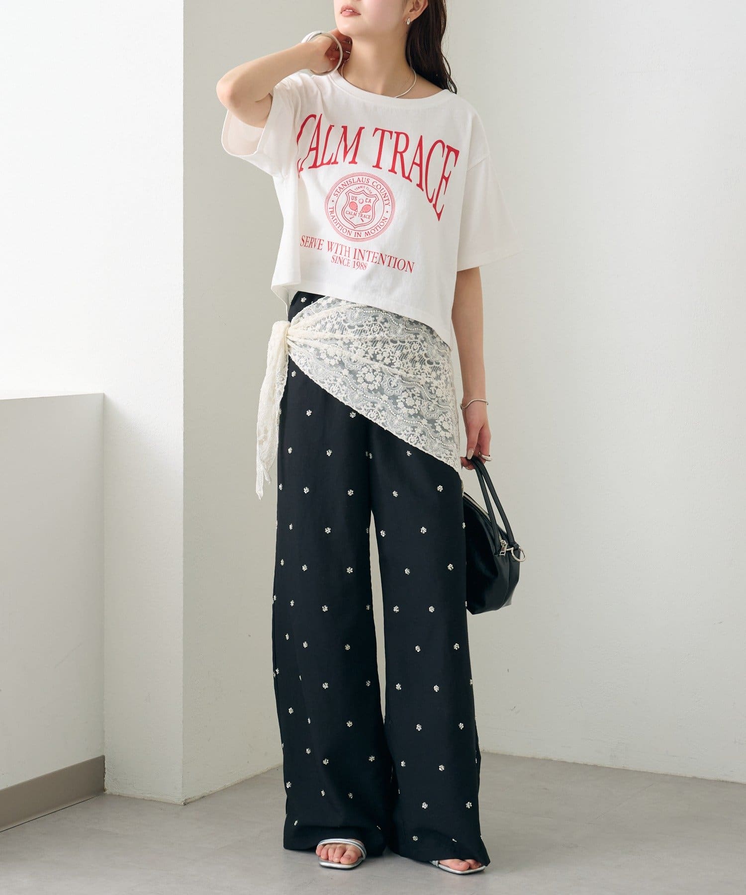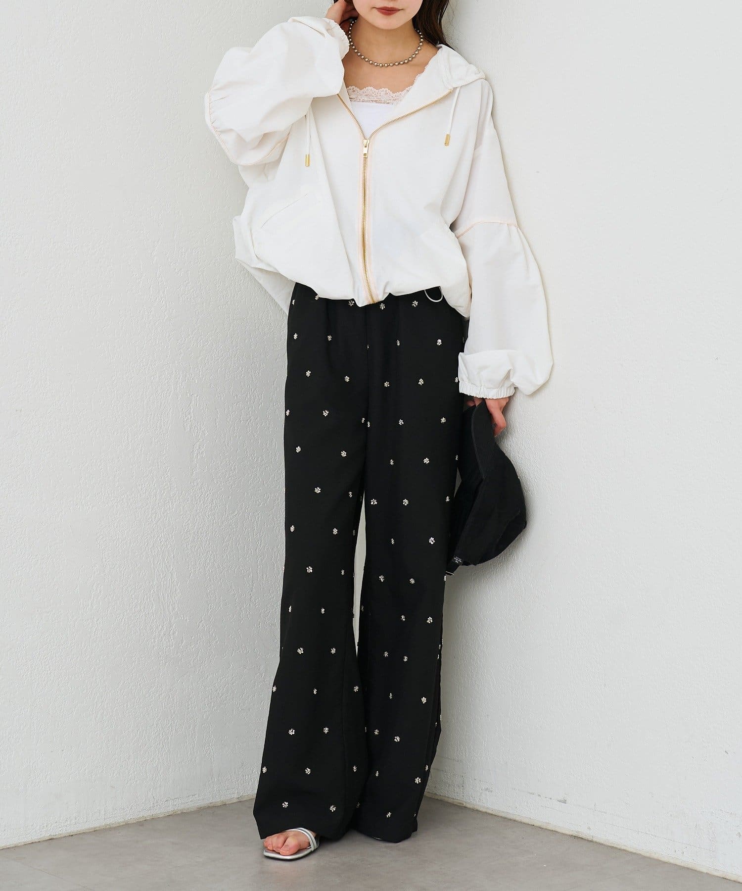 散りばめられた小花柄のビジューが目を惹く、大人可愛いスラックス