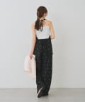 ・同素材のビジューフラワーホルタービスチェとのセットアップスタイルでこなれ感たっぷりなコーデに◎