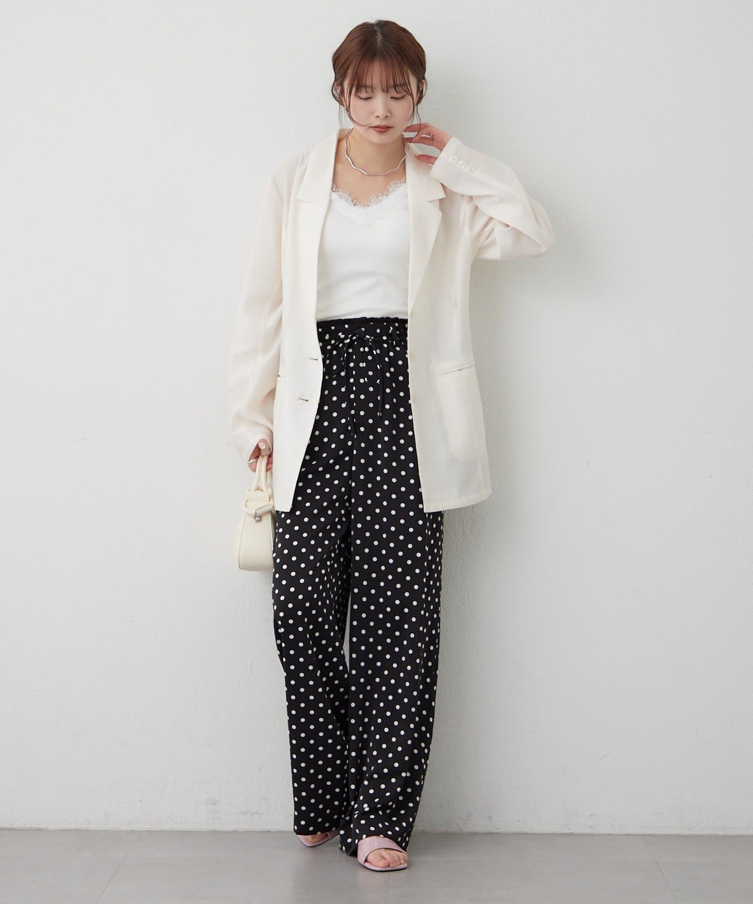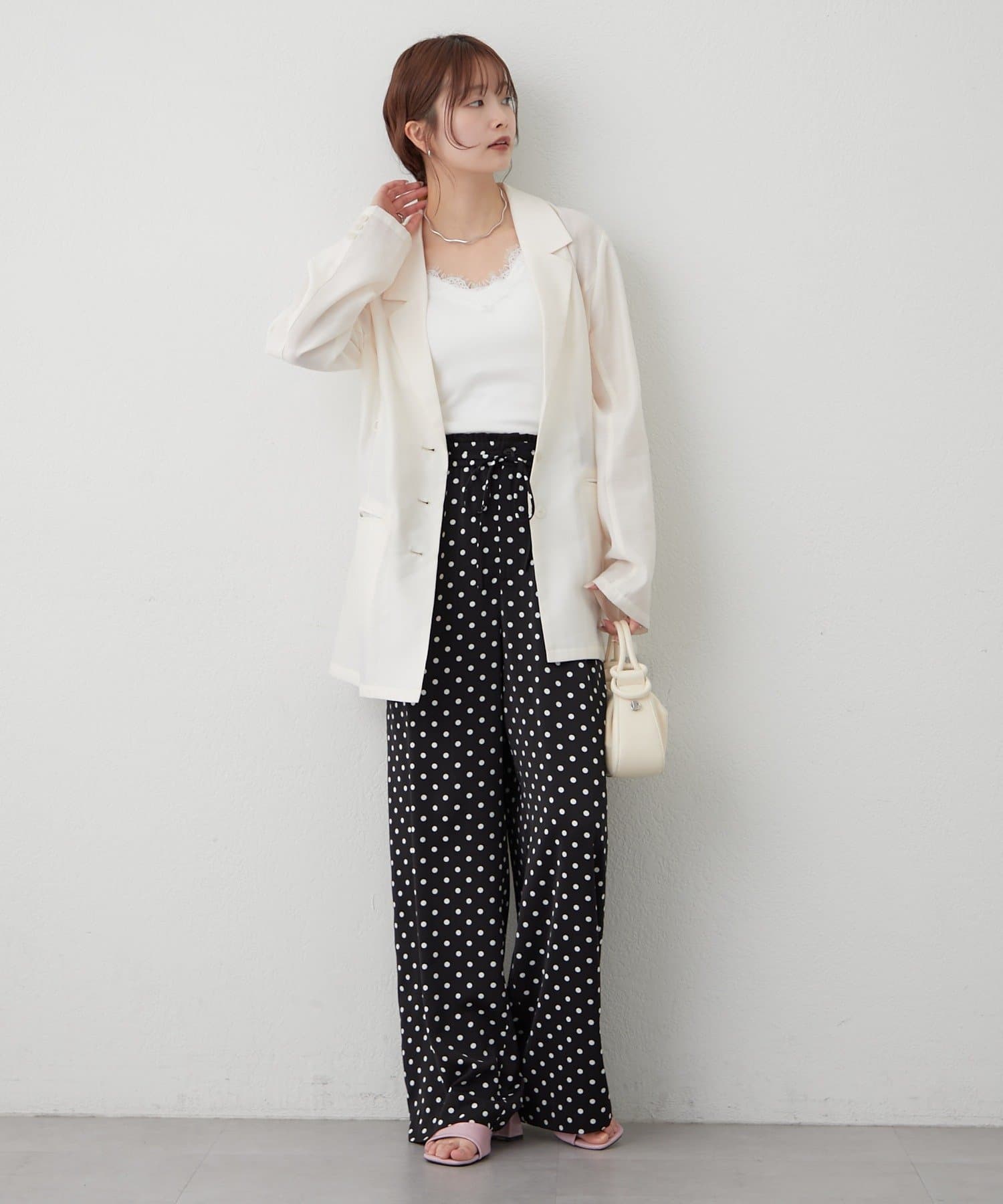 ドット柄がスタイリングの主役になるWベルトパンツ