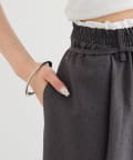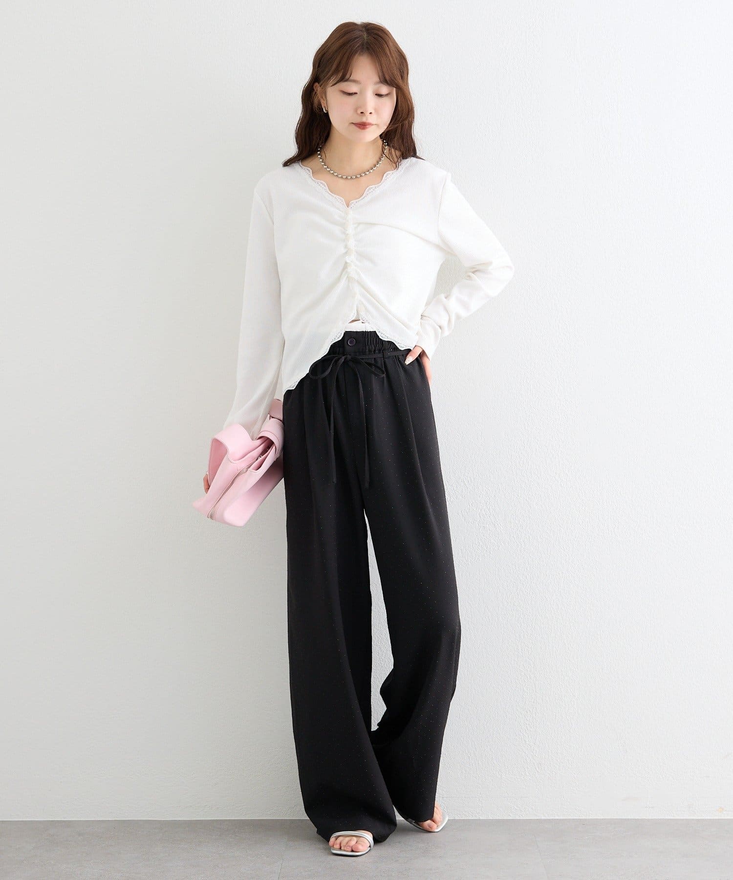 ・ウエストはレイヤード風デザインで、シンプルながらもアクセントの効いた仕上がりに。