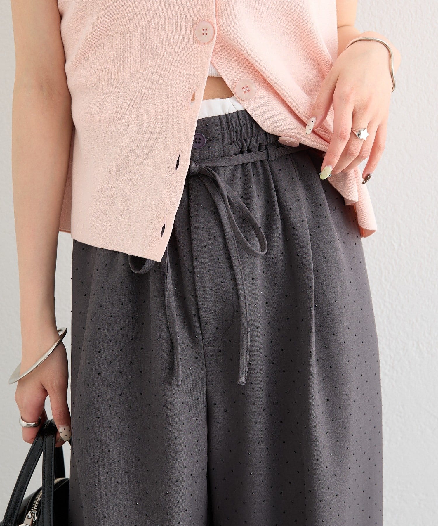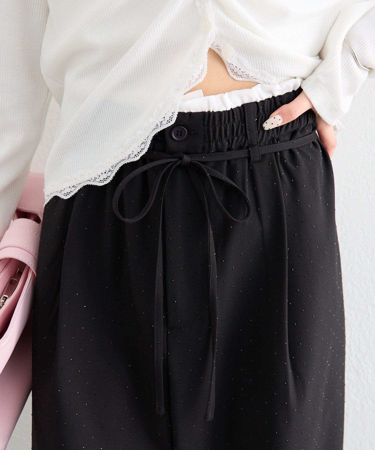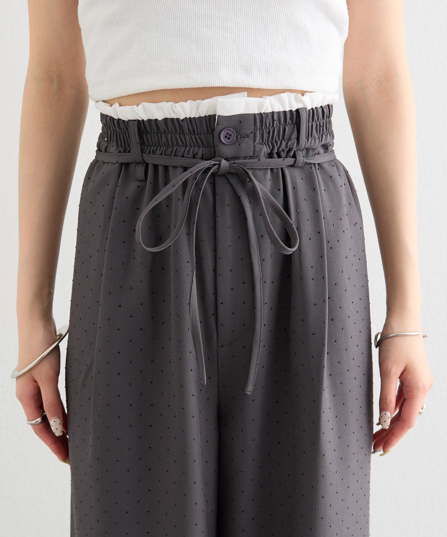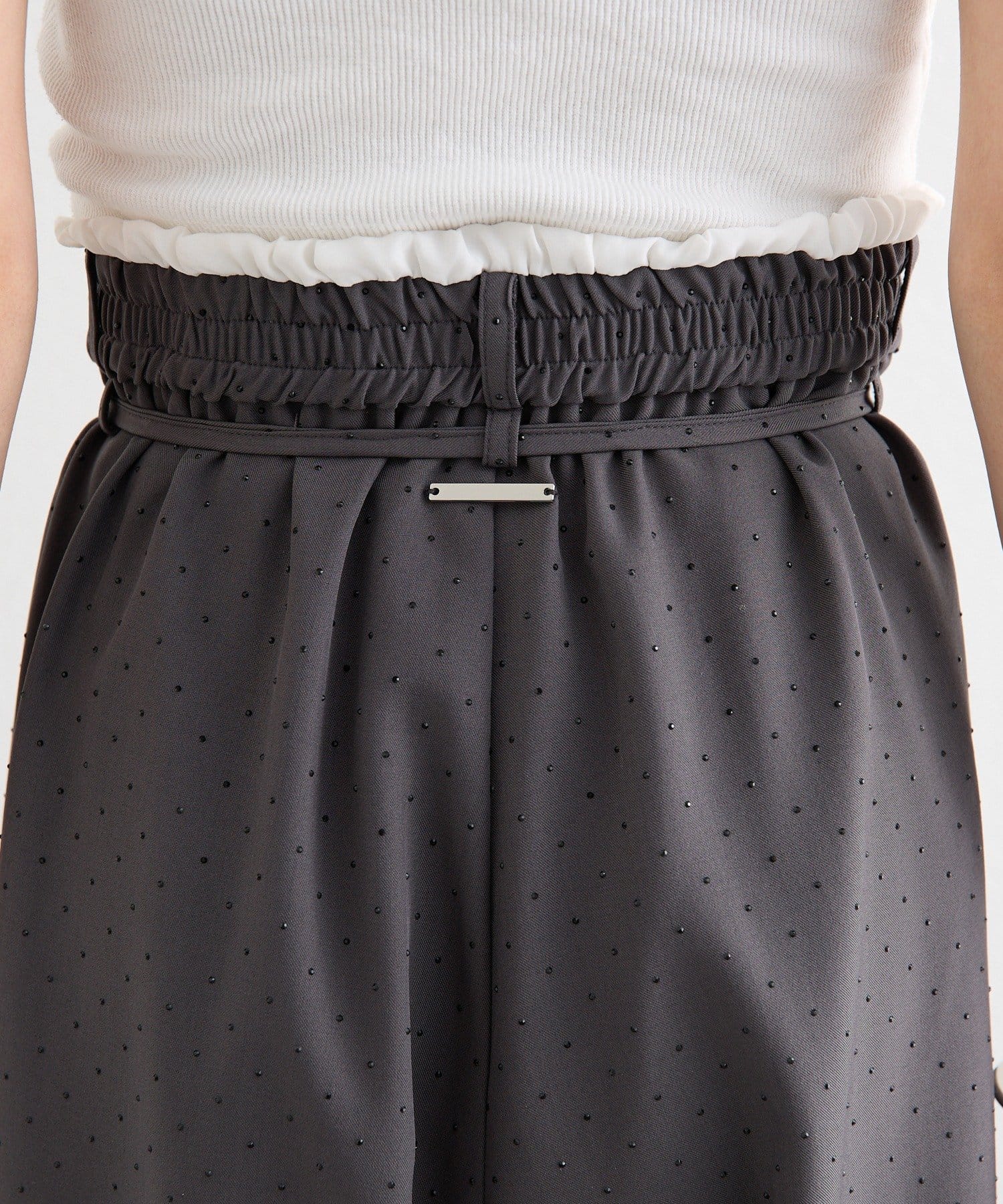 ラインストーンの輝きが存在感をプラスするWベルトパンツ