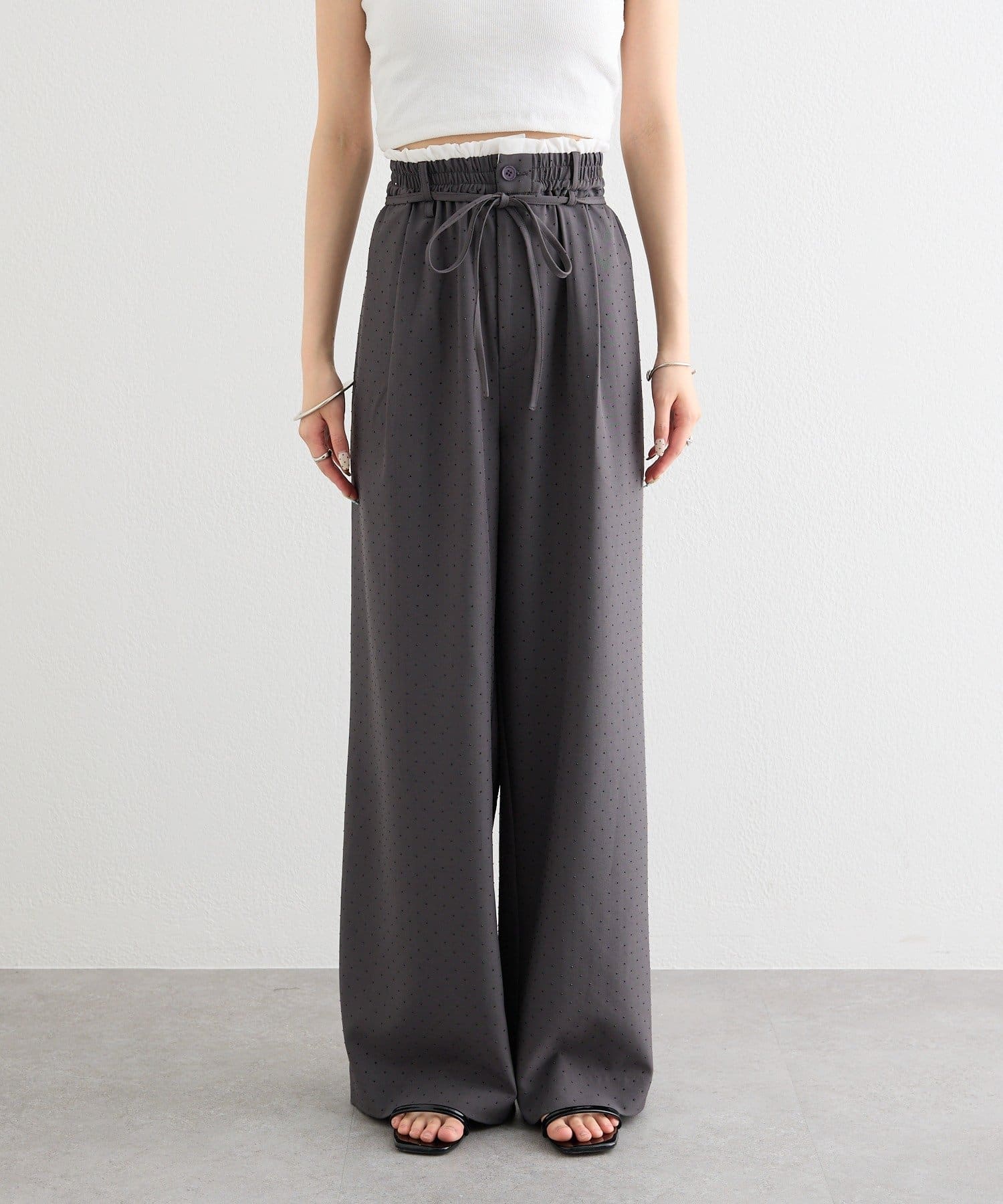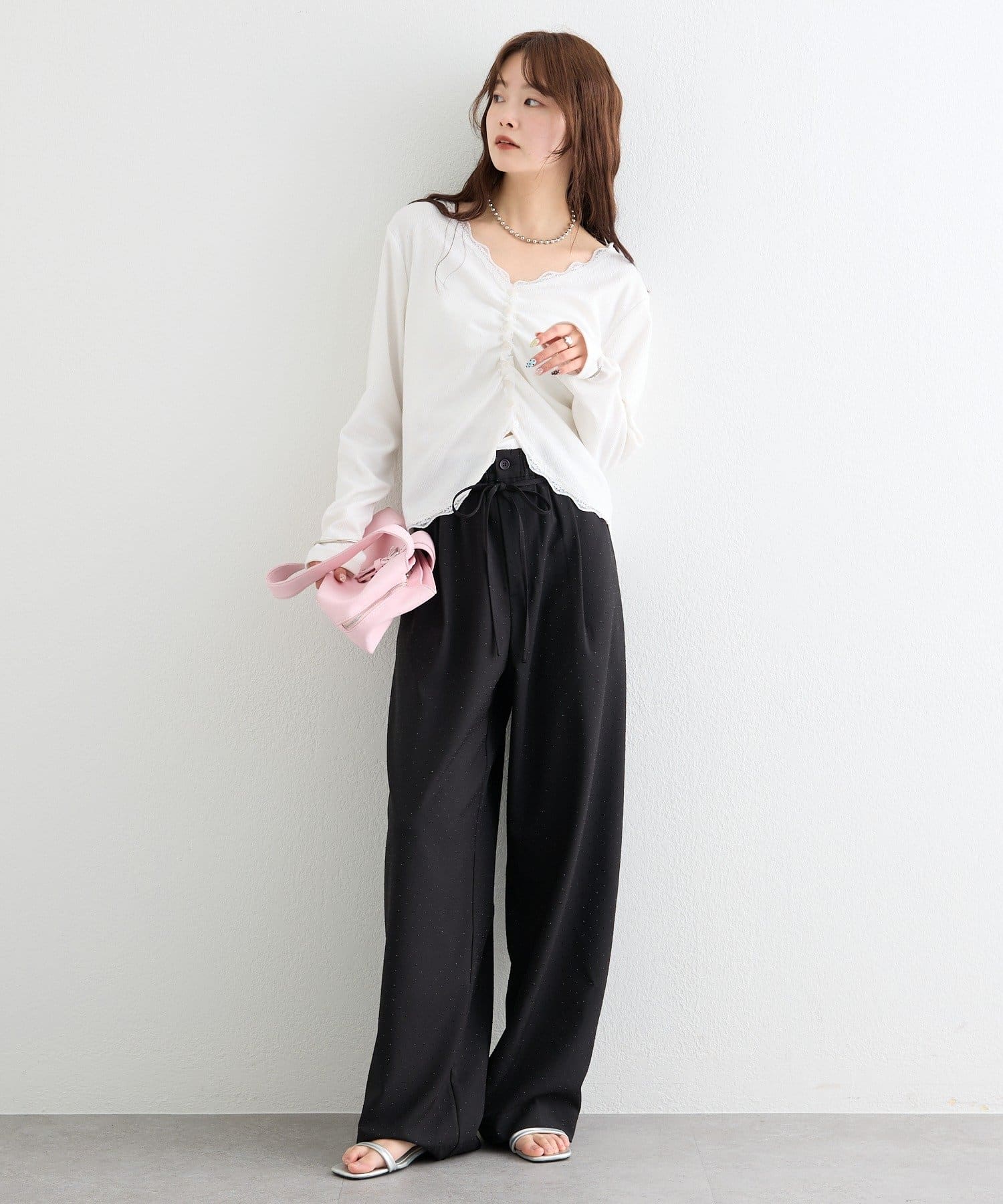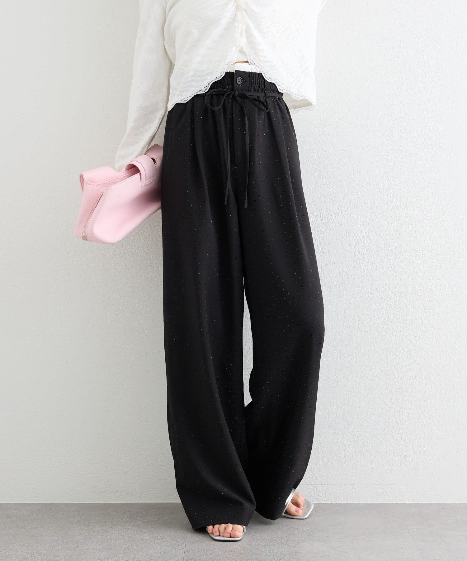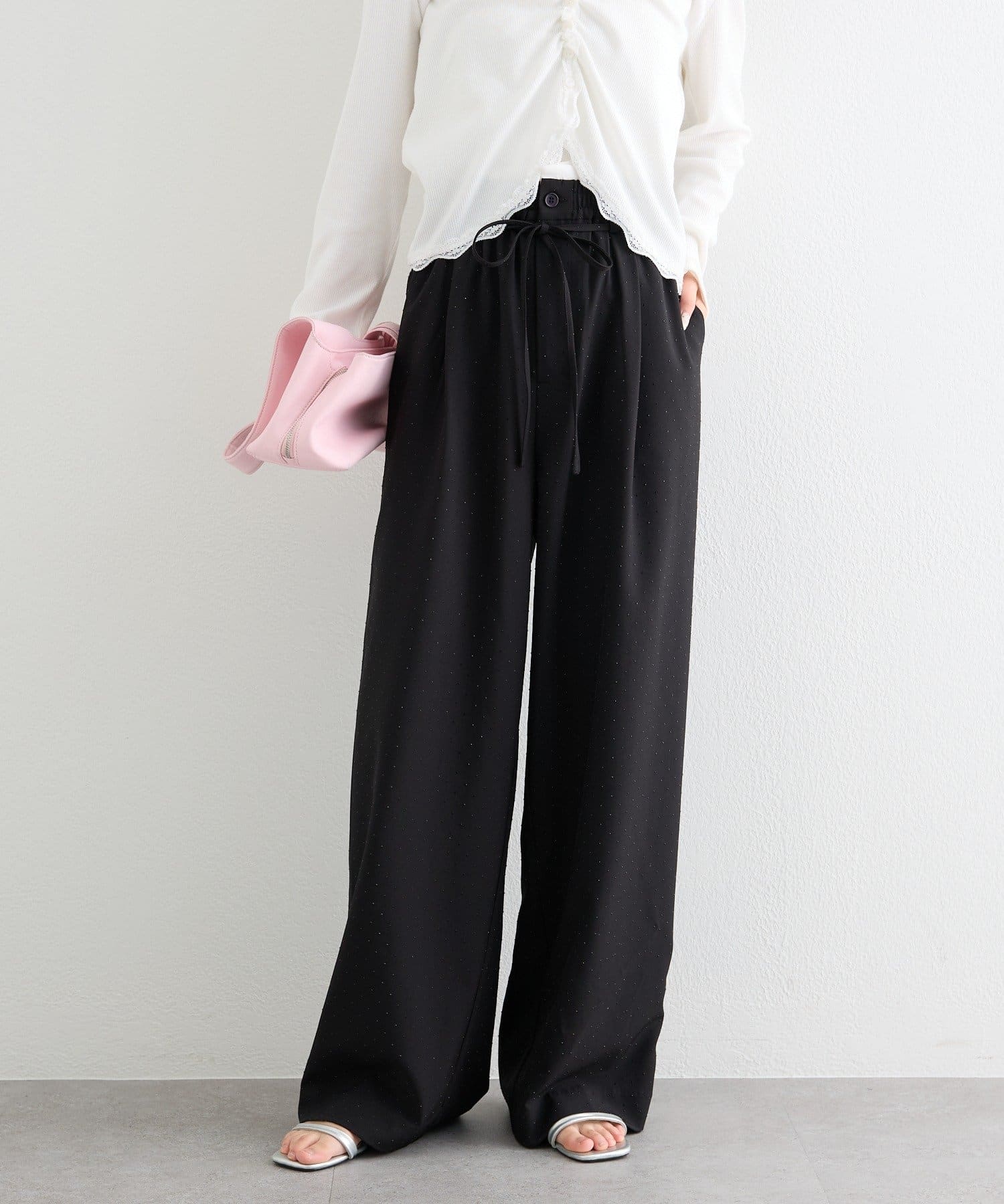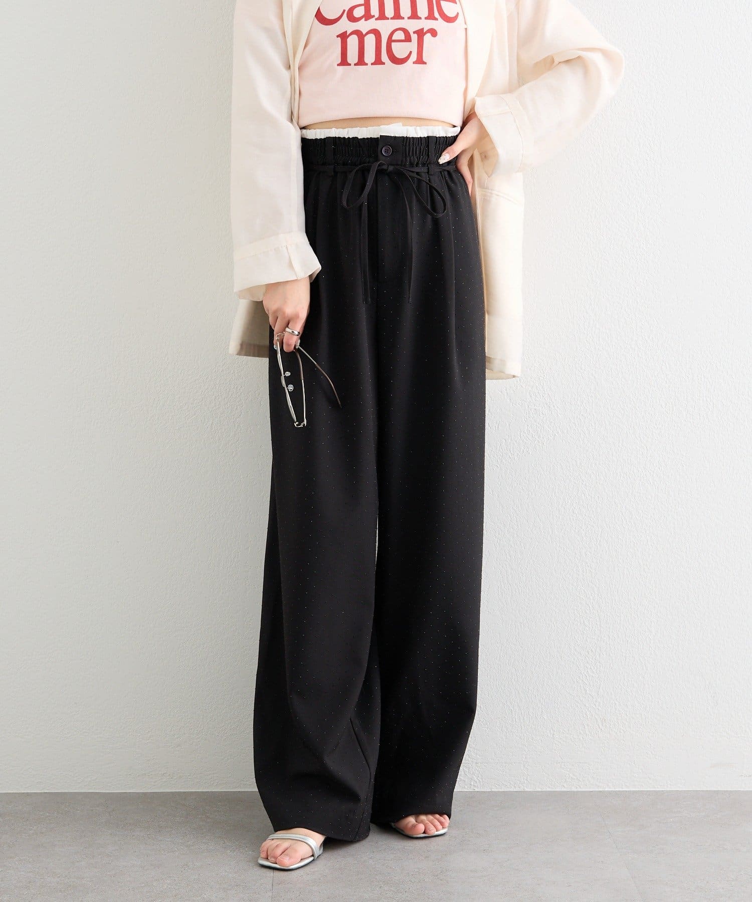 ラインストーンの輝きが存在感をプラスするWベルトパンツ