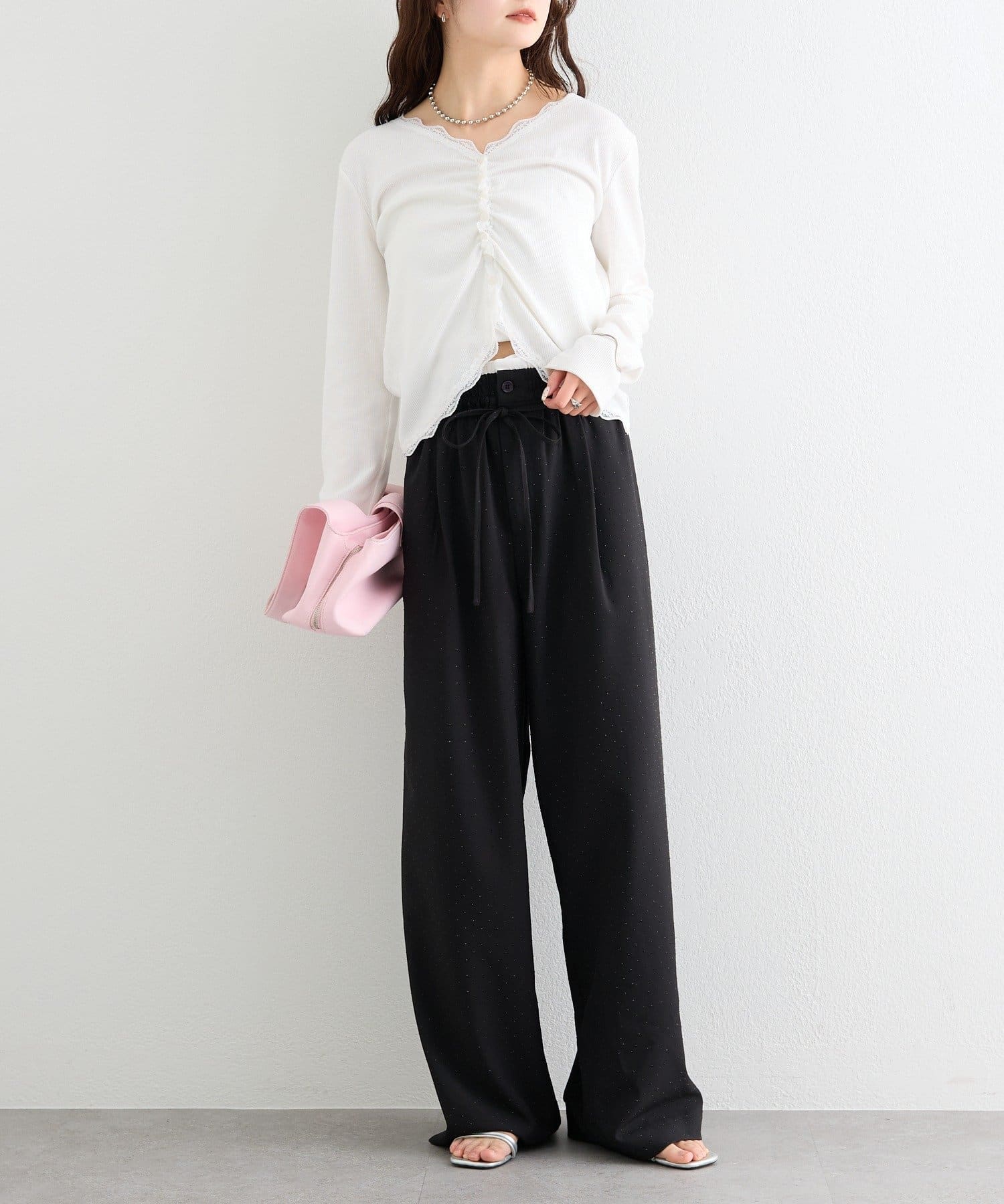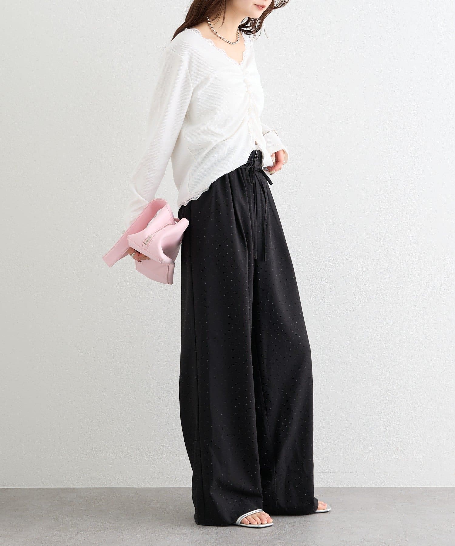・細かく散りばめられたラインストーンが、動くたびにさりげなく輝くデザイン。