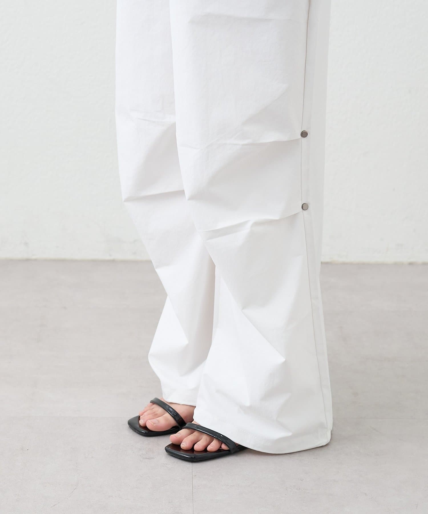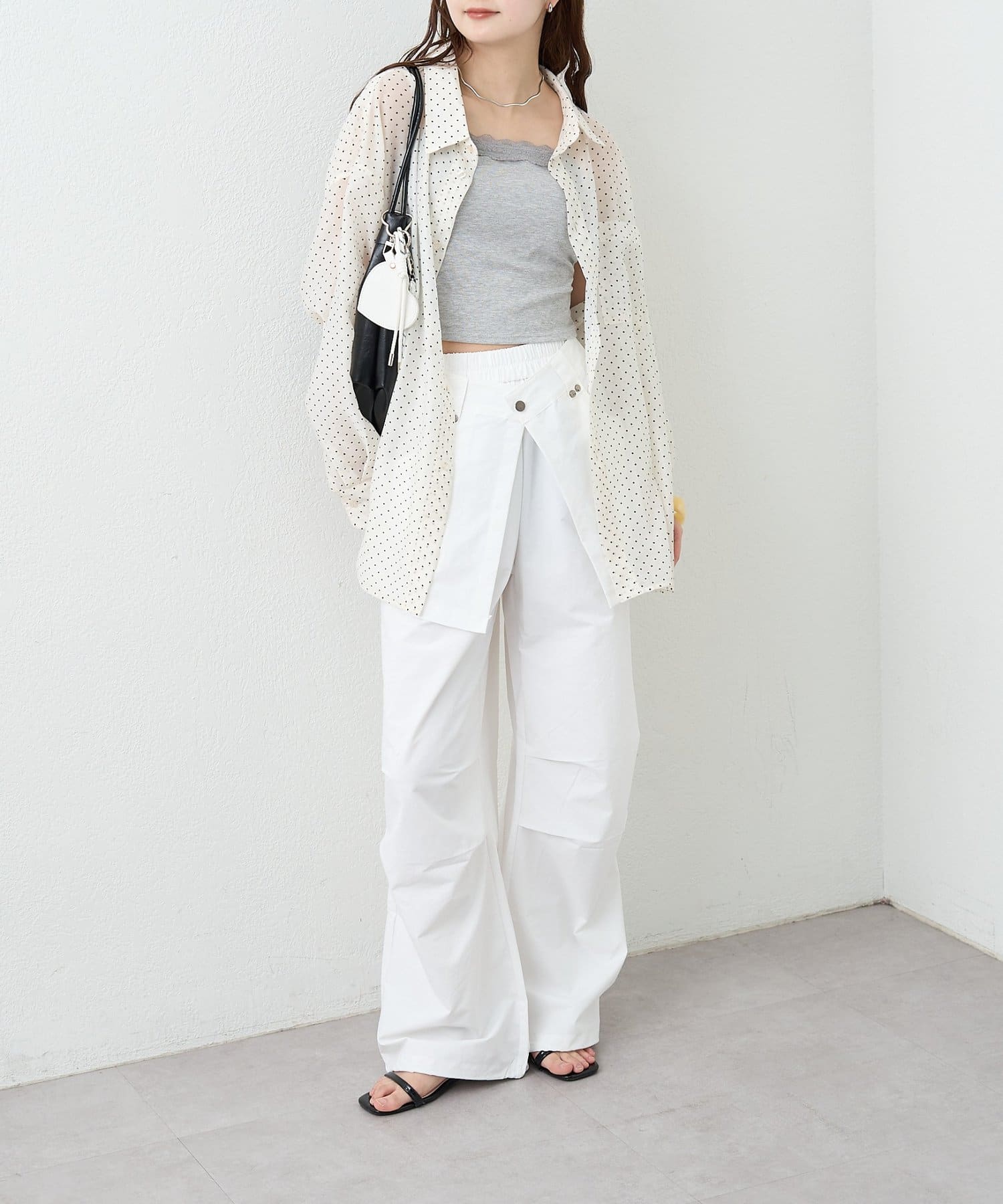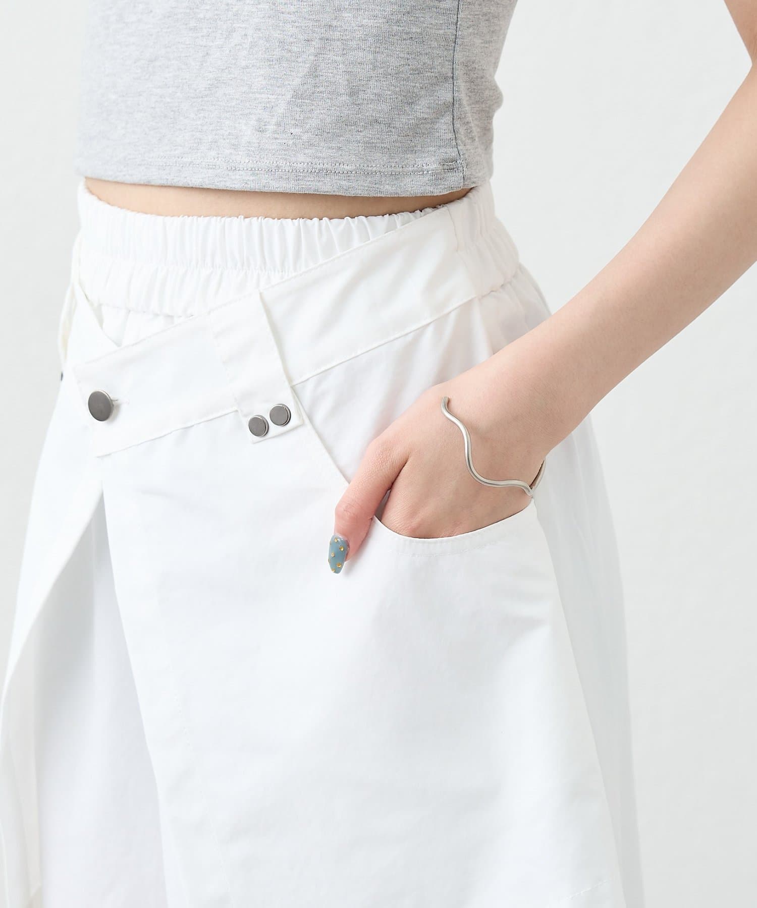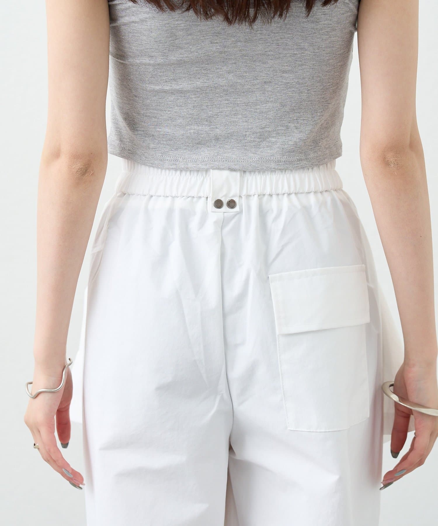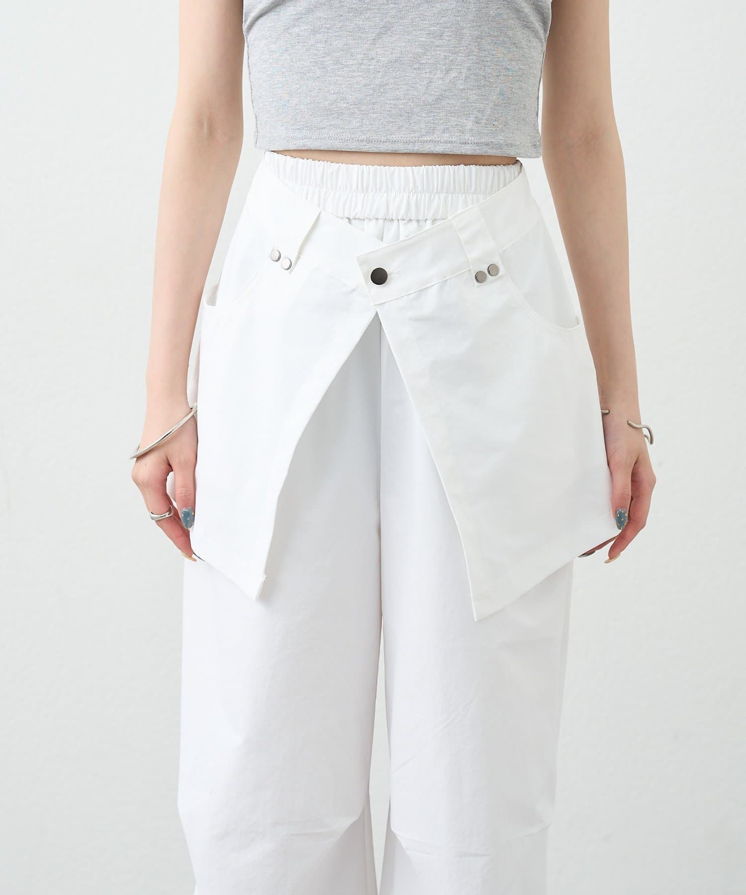 ・ワイドなシルエットでリラックス感があり、ラップデザインが気になる腰回りをカバーしてくれます。