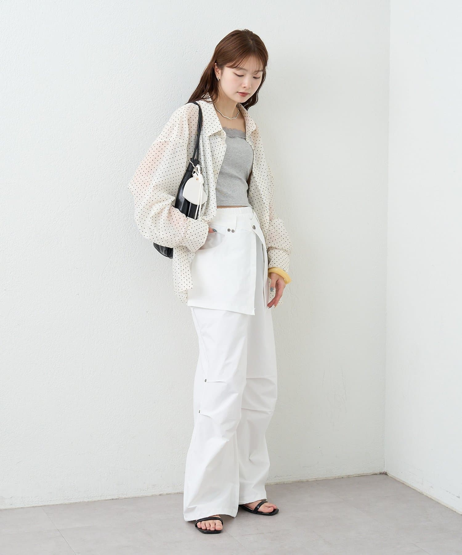 ・シャツやジャケットを合わせて、こなれ感のあるスタイリングに。