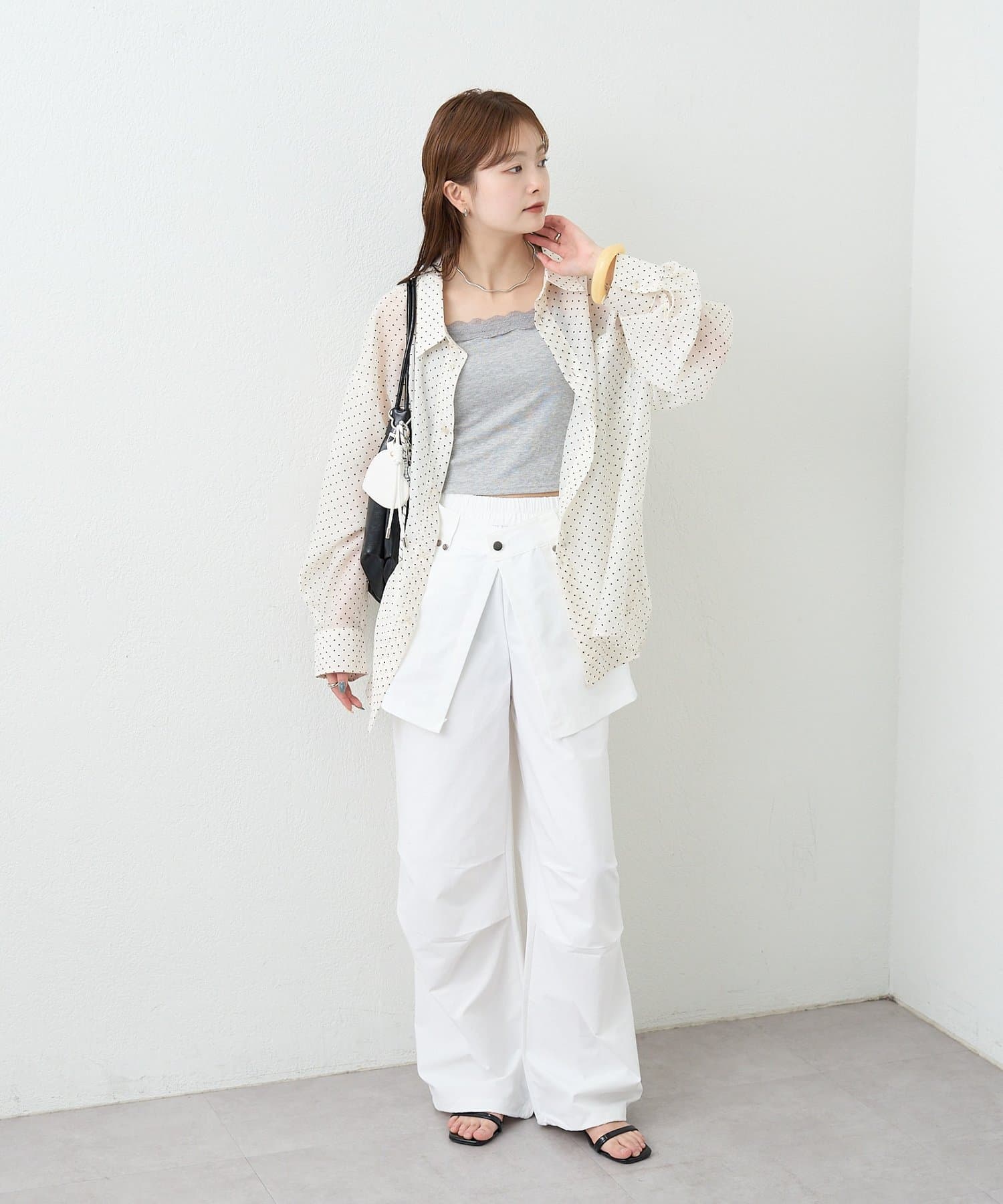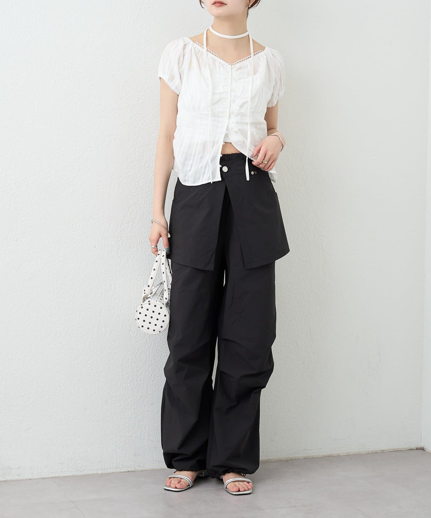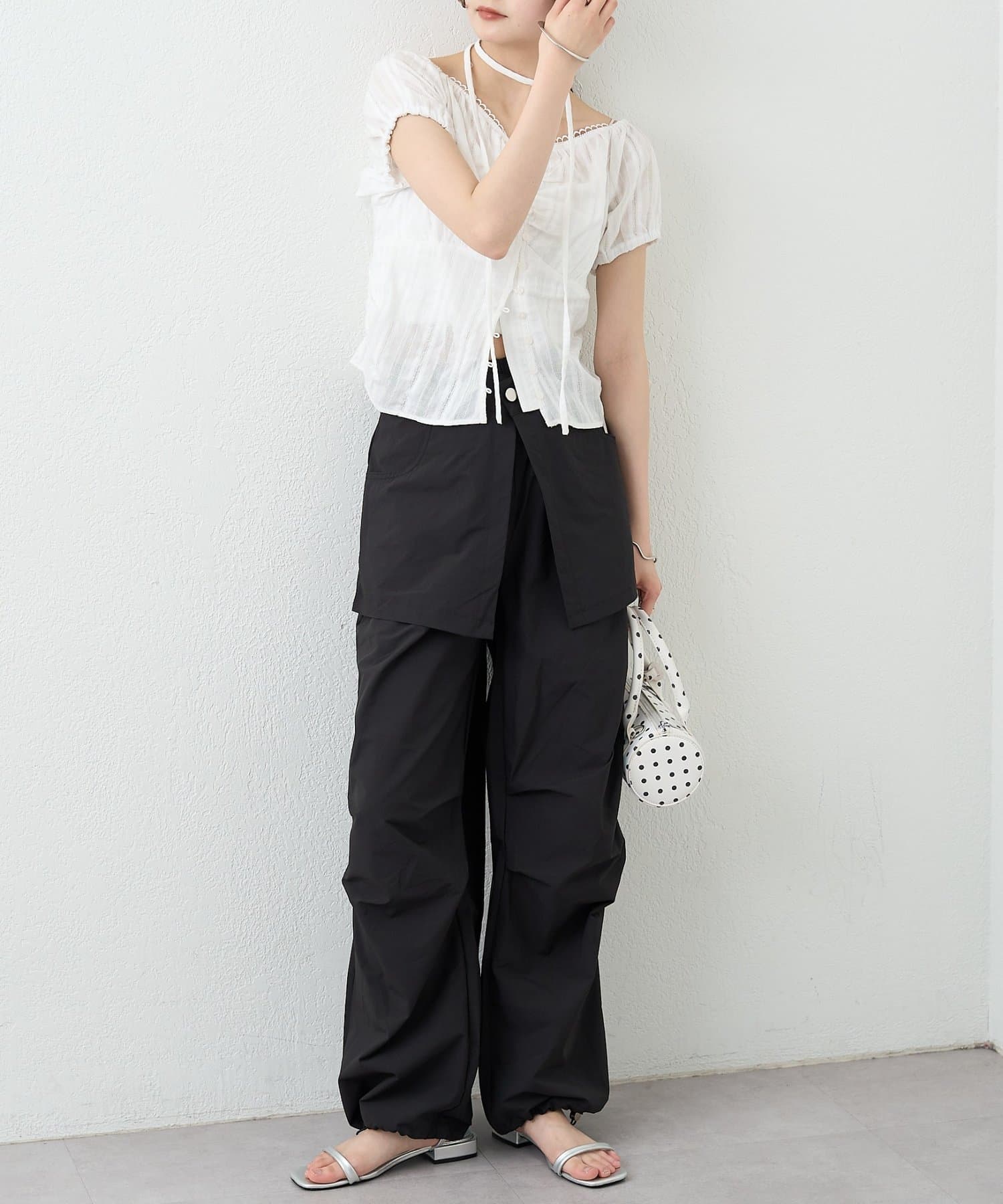 ・コンパクトなトップスをやショート丈アイテムを合わせて、バランスの取れた着こなしに。