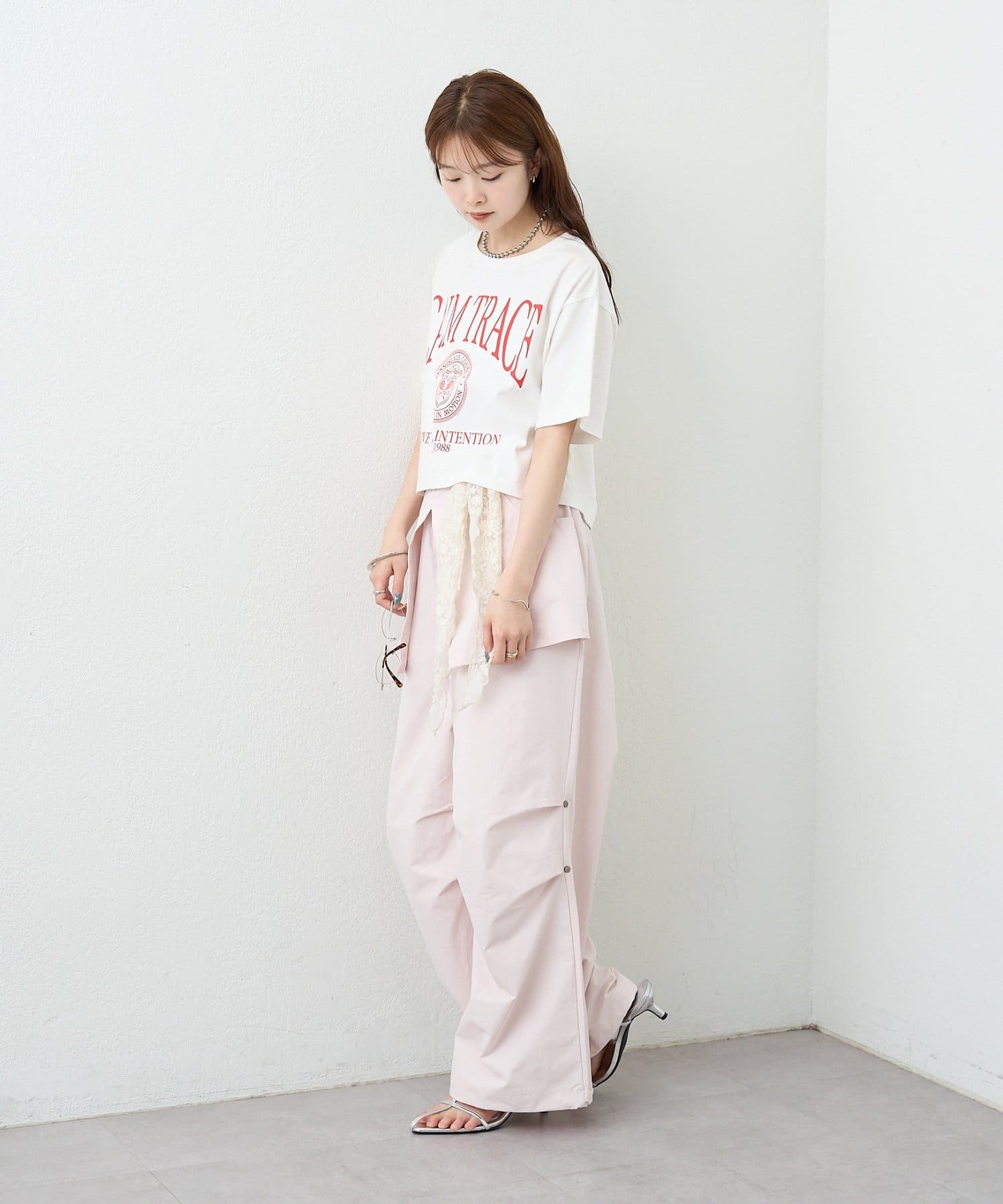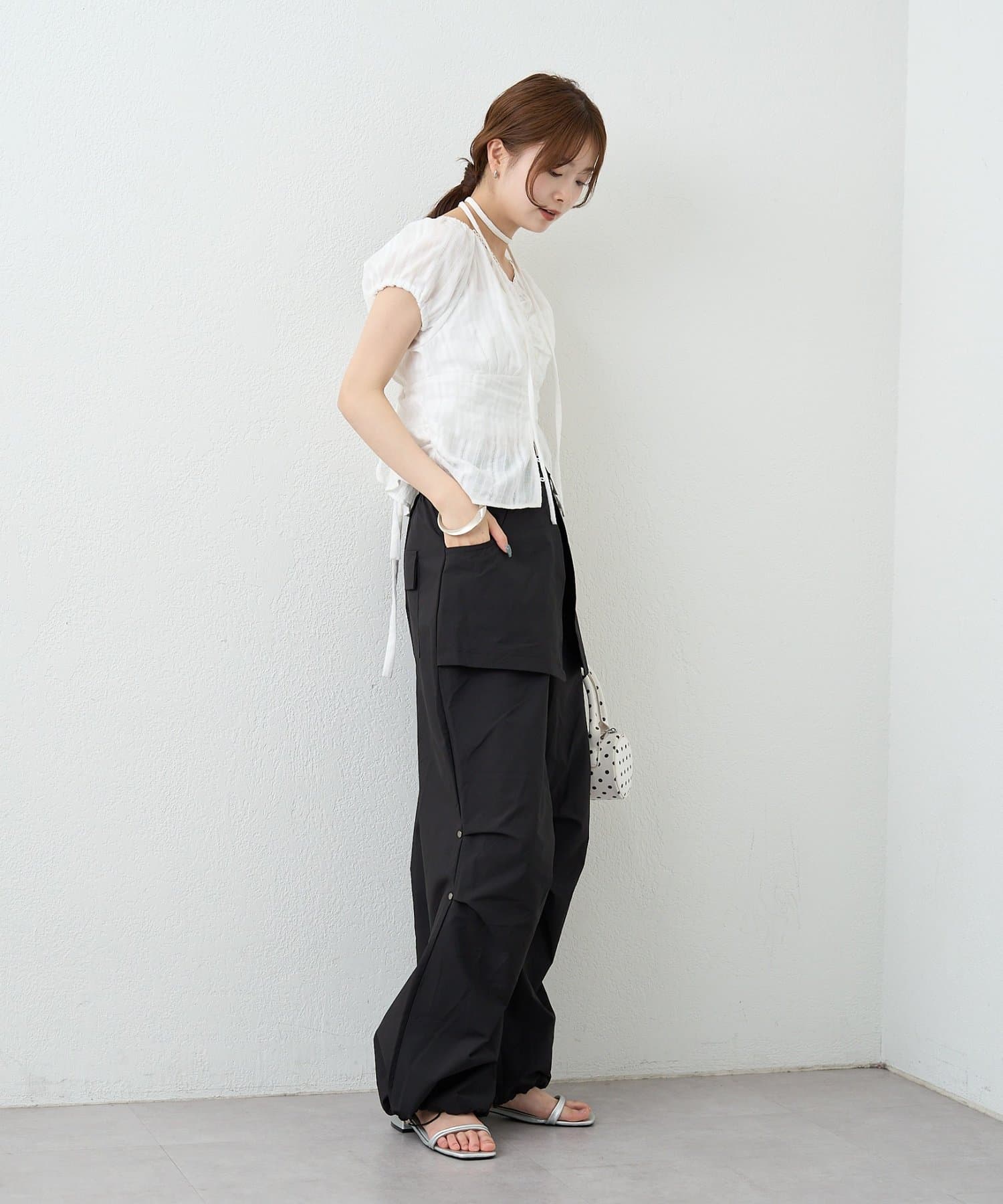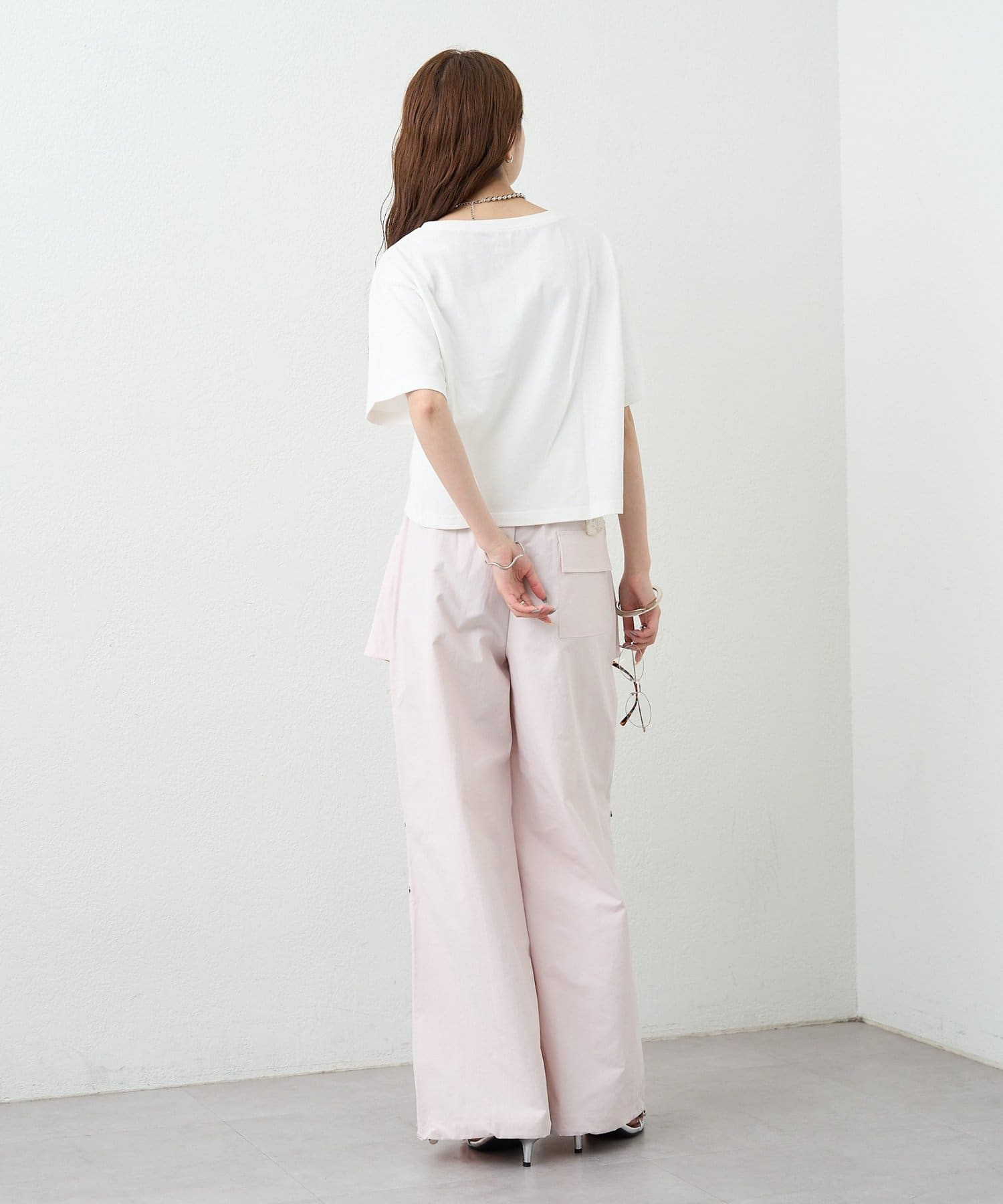 ・コンパクトなトップスをやショート丈アイテムを合わせて、バランスの取れた着こなしに。