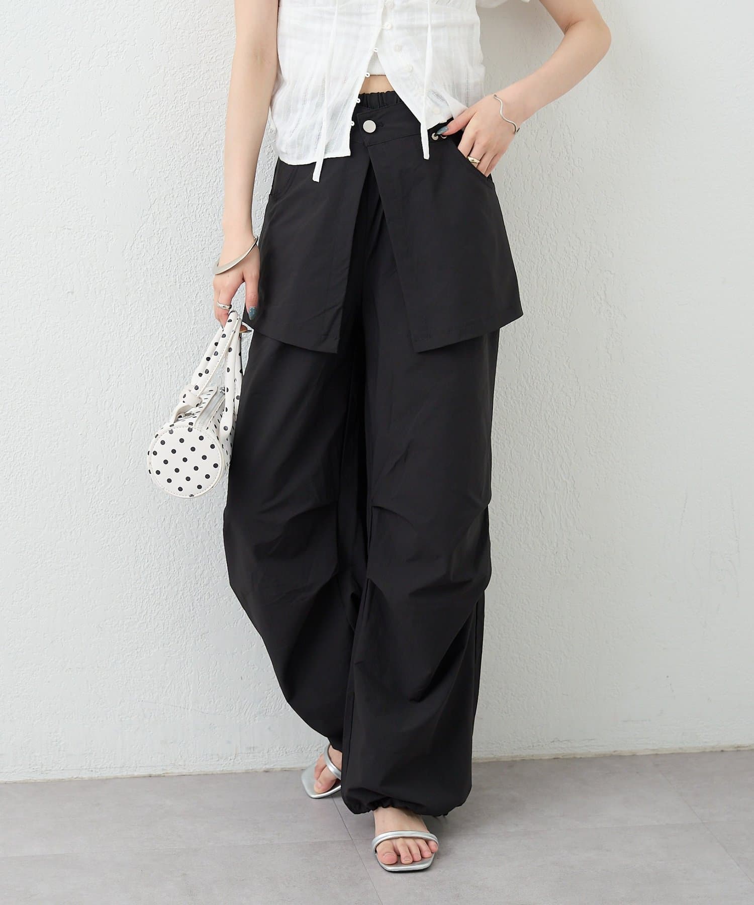 ラップレイヤードデザインでこなれ感を演出するカーゴパンツ