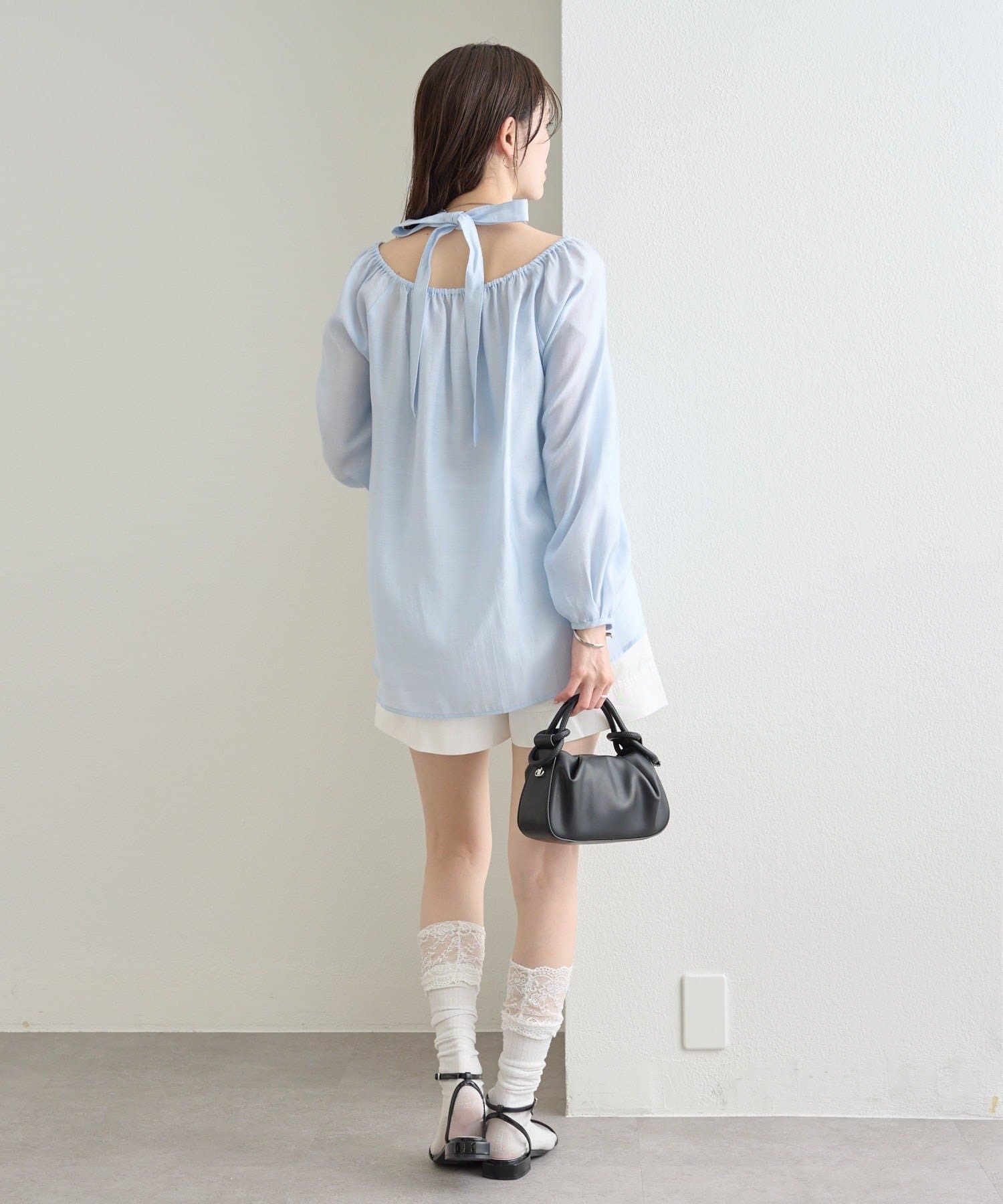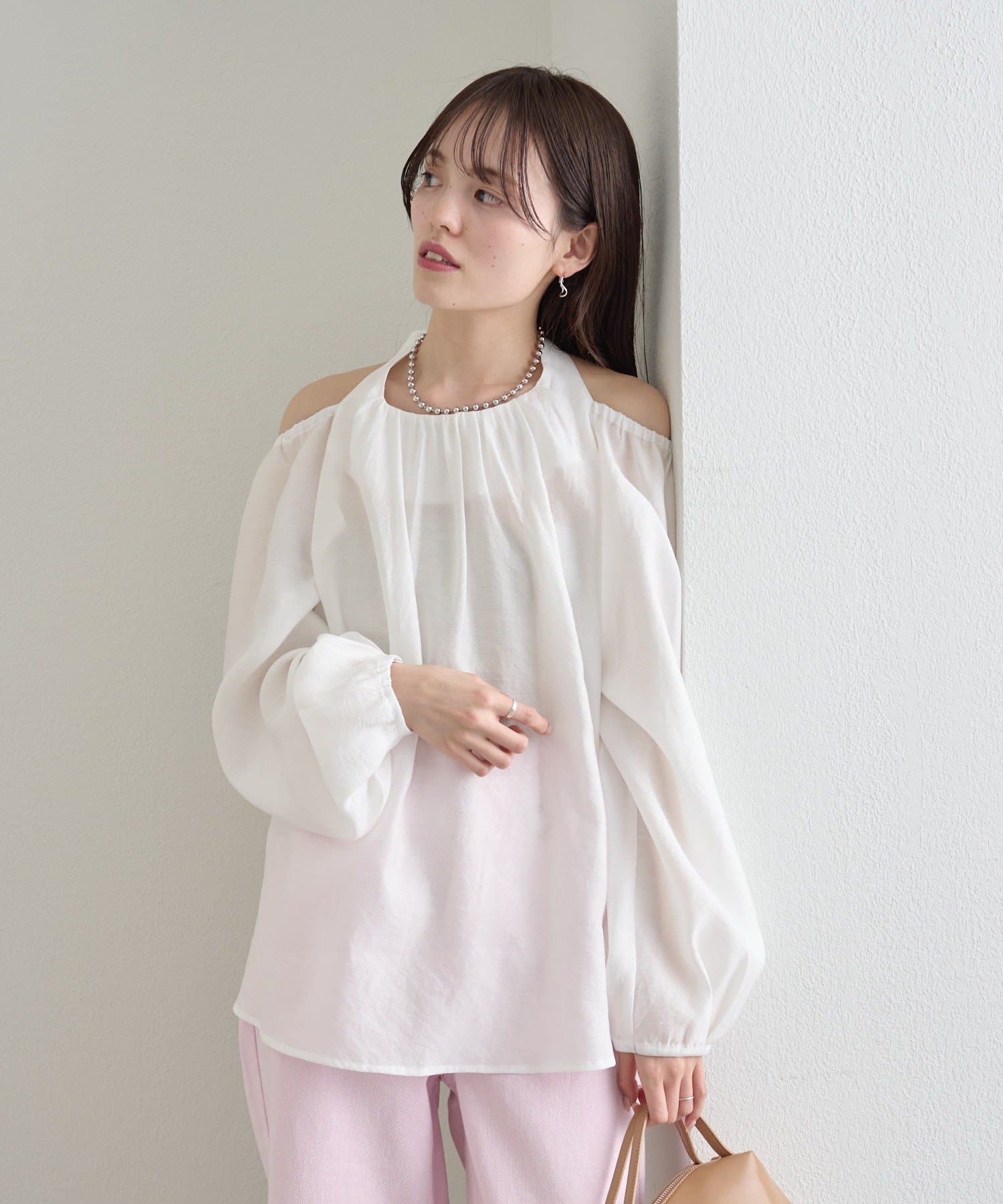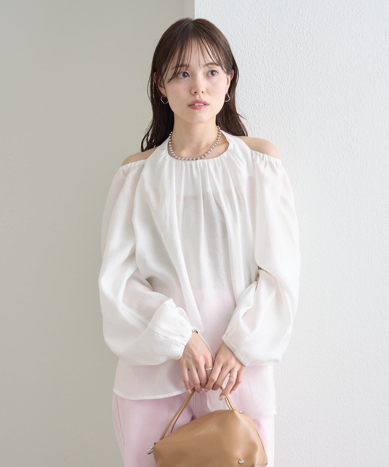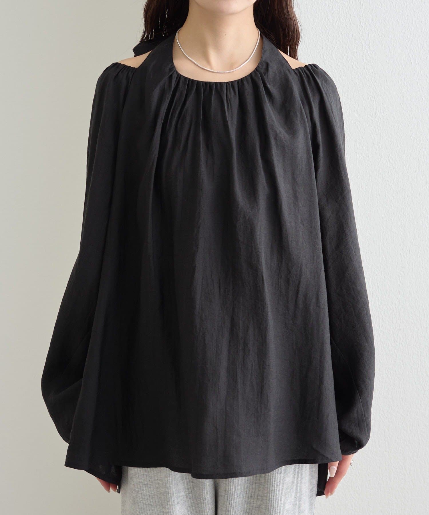 上品な肌見せが叶う ホルターネックデザインのブラウス
