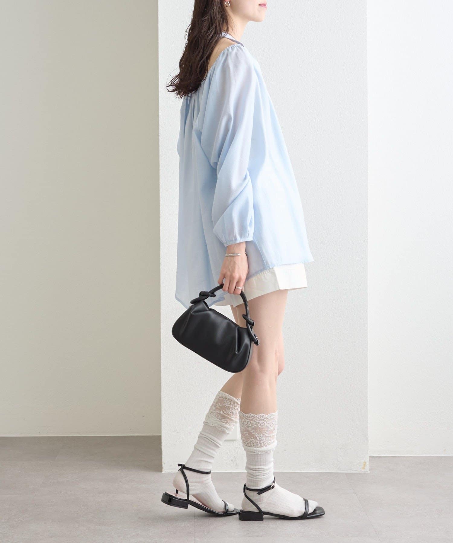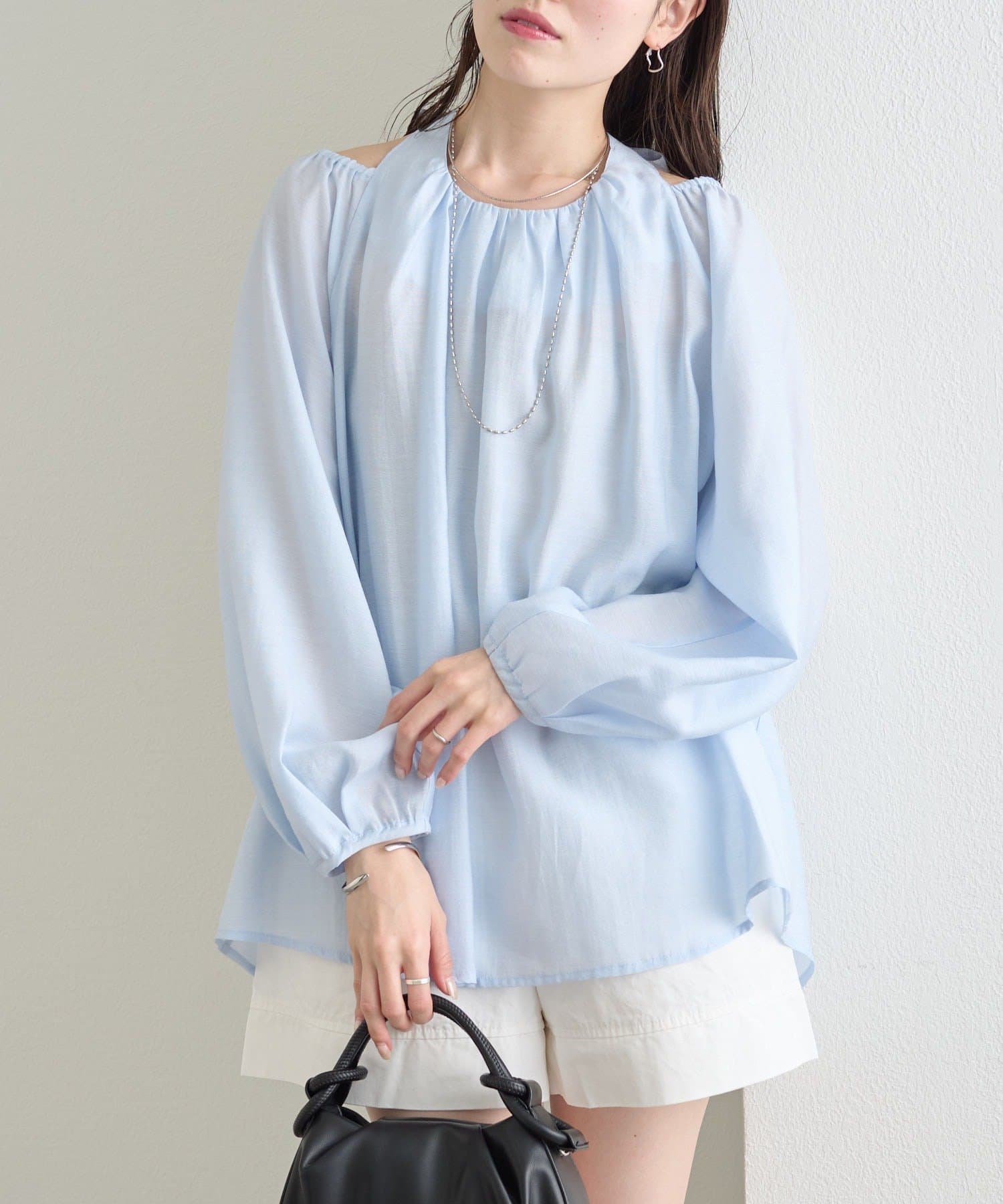 程よい透け感のあるシアー素材で、軽やかな印象に。大人の抜け感を演出します。
