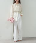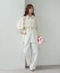 ・ワイドパンツを合わせて、リラックス感のある大人カジュアルスタイルに。