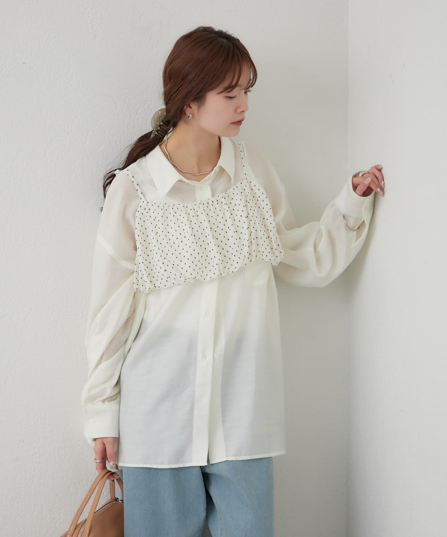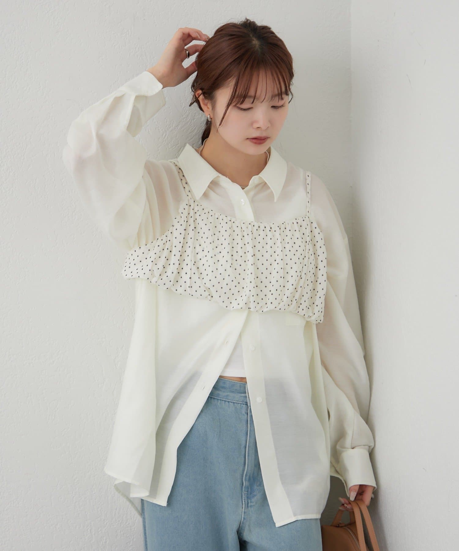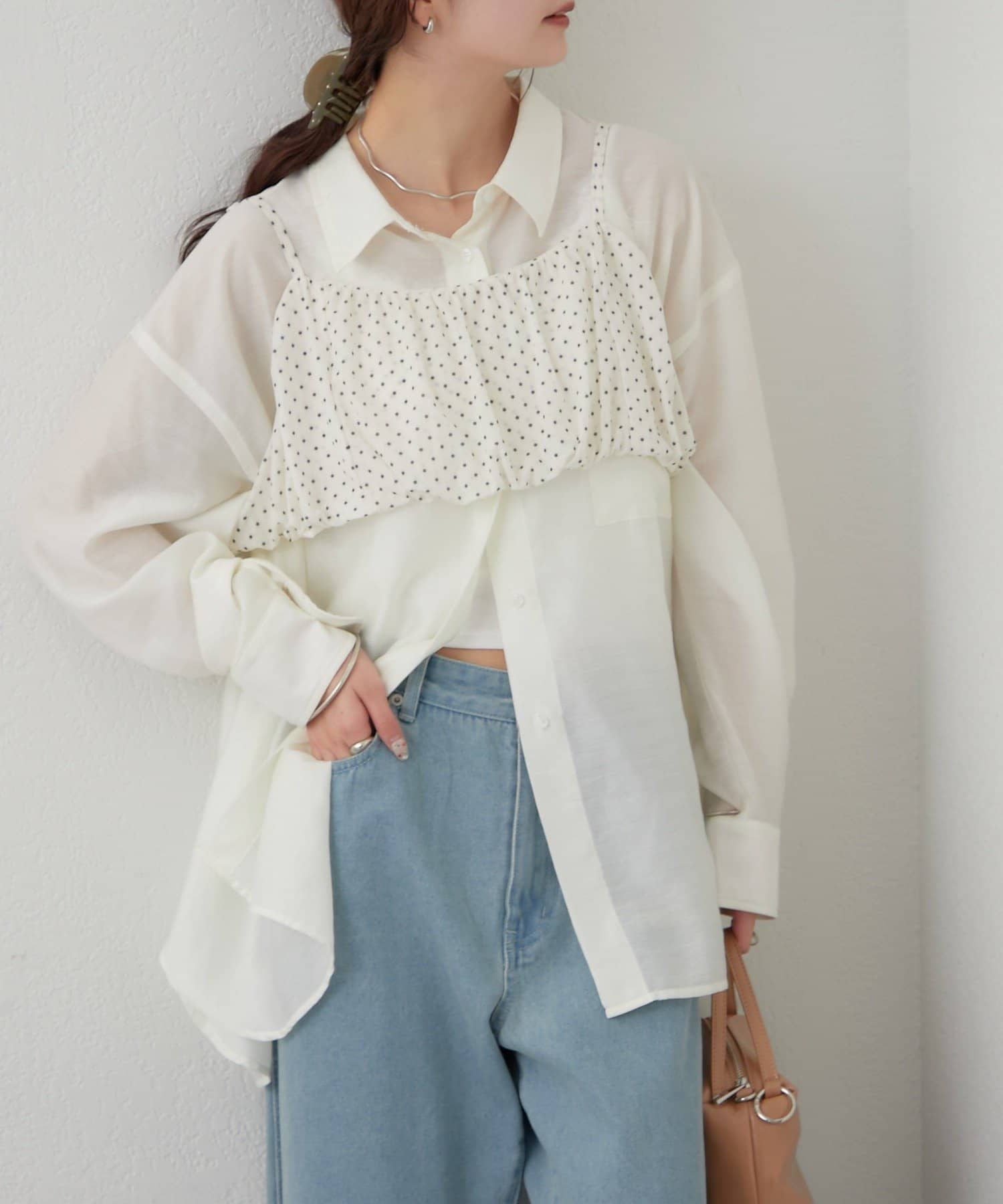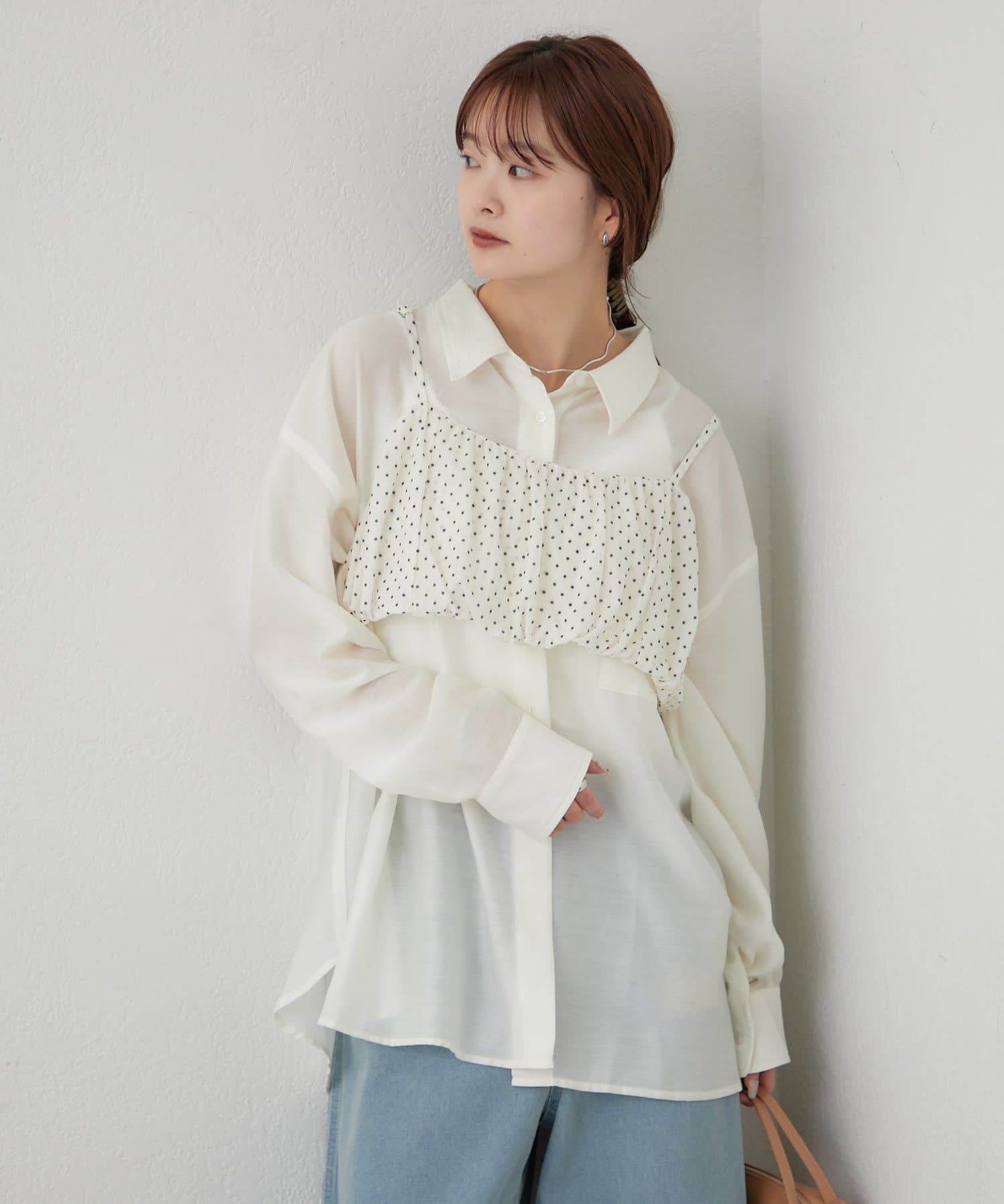 抜け感レイヤードが叶うシアーシャツビスチェSET