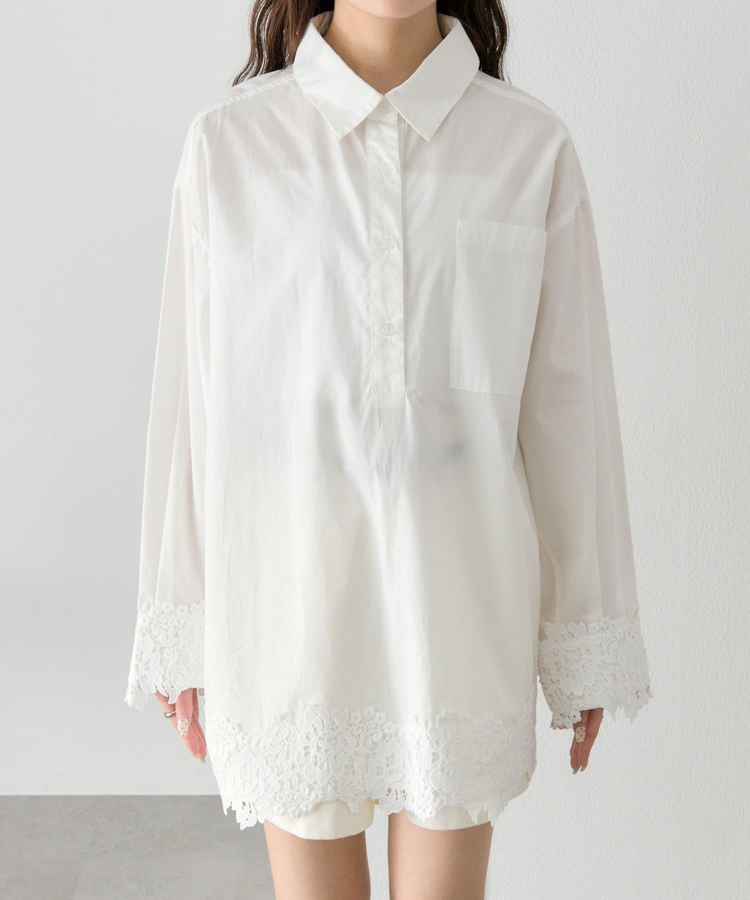 裾レーススキッパーシャツ