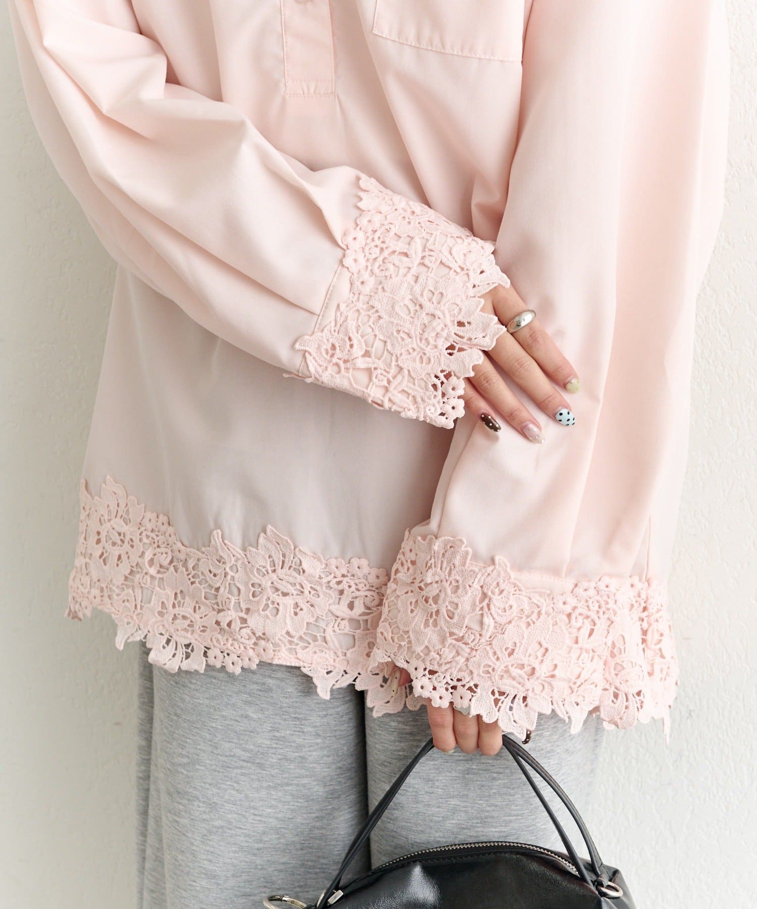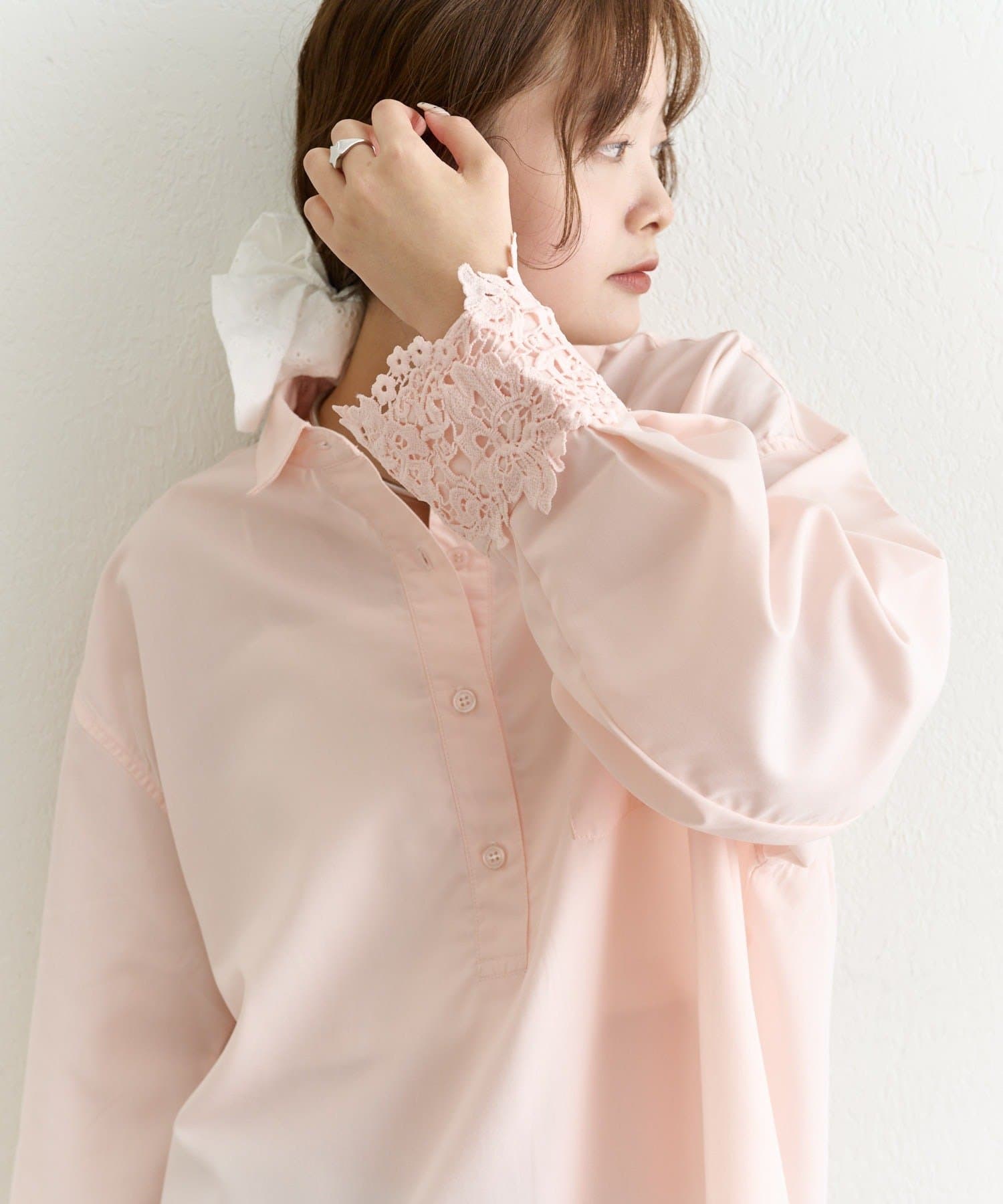 ・シャツのきちんと感とレースの柔らかさがバランスよく融合した一枚です。