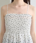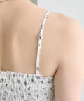 ・キャミソールは、胸元のシャーリングデザインでフィット感がありつつ、ふんわり広がるシルエットが女性らしい印象に。