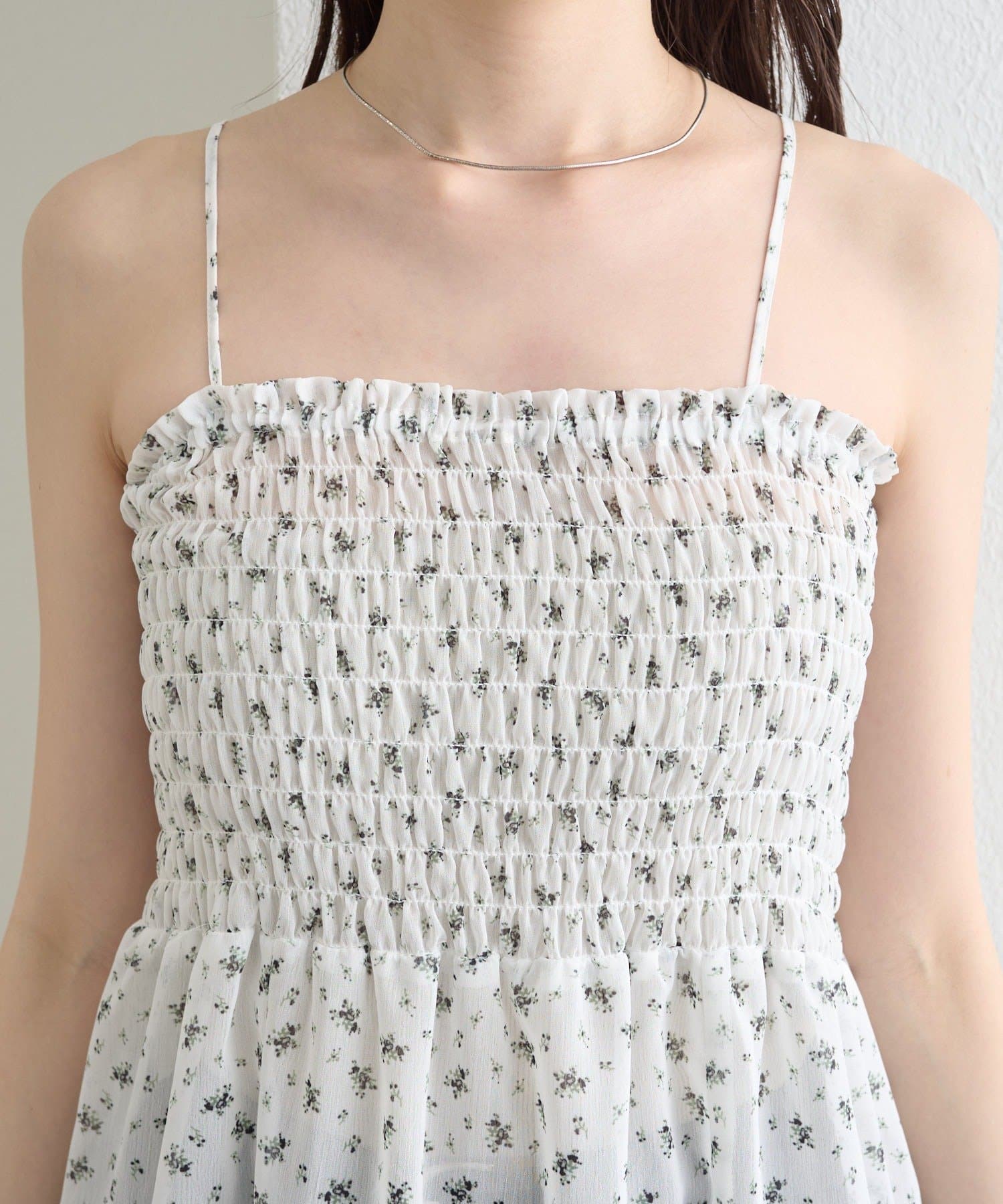 ・シアー素材にフラワープリントを施した、キャミソールとボレロのセットアイテム。