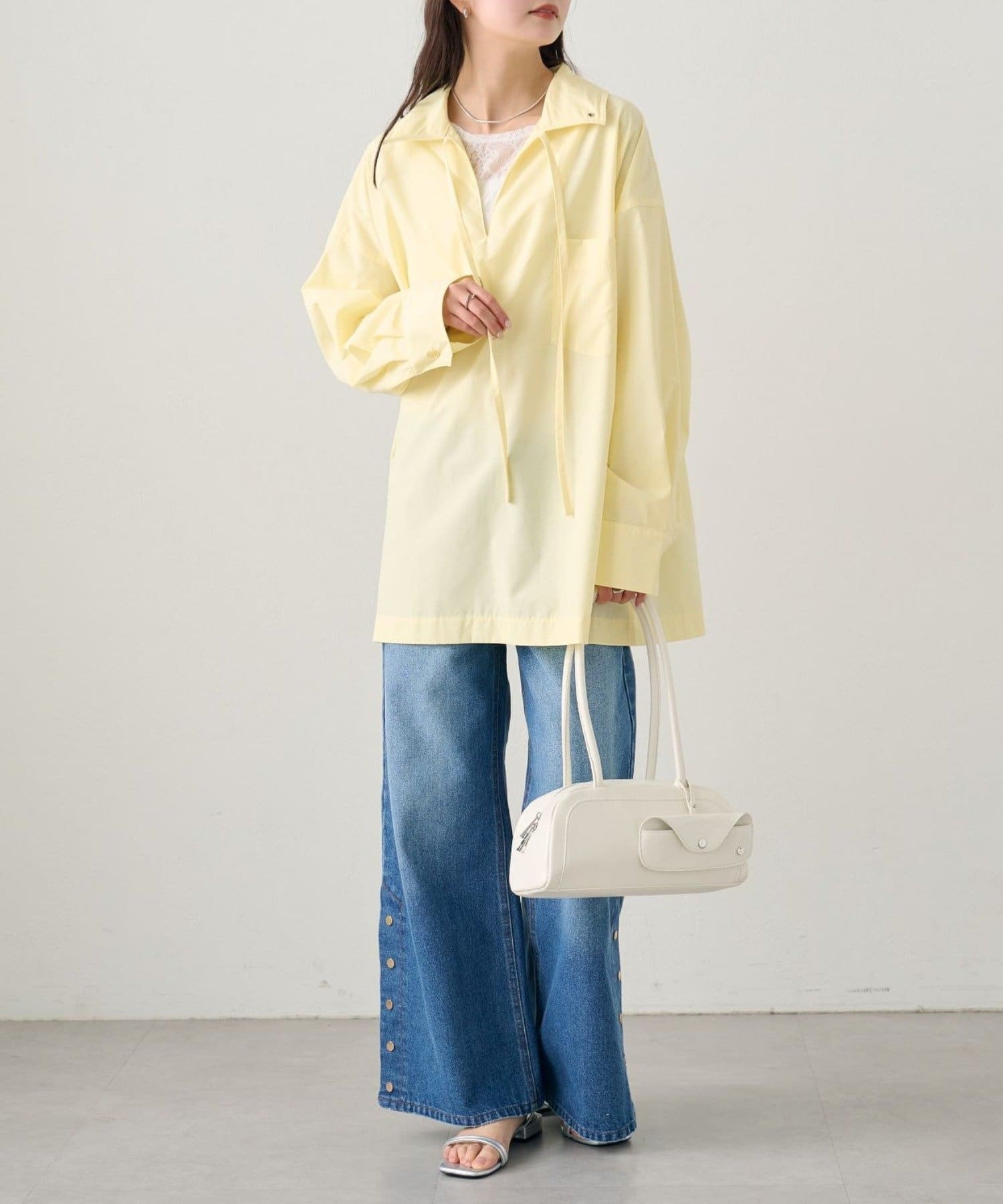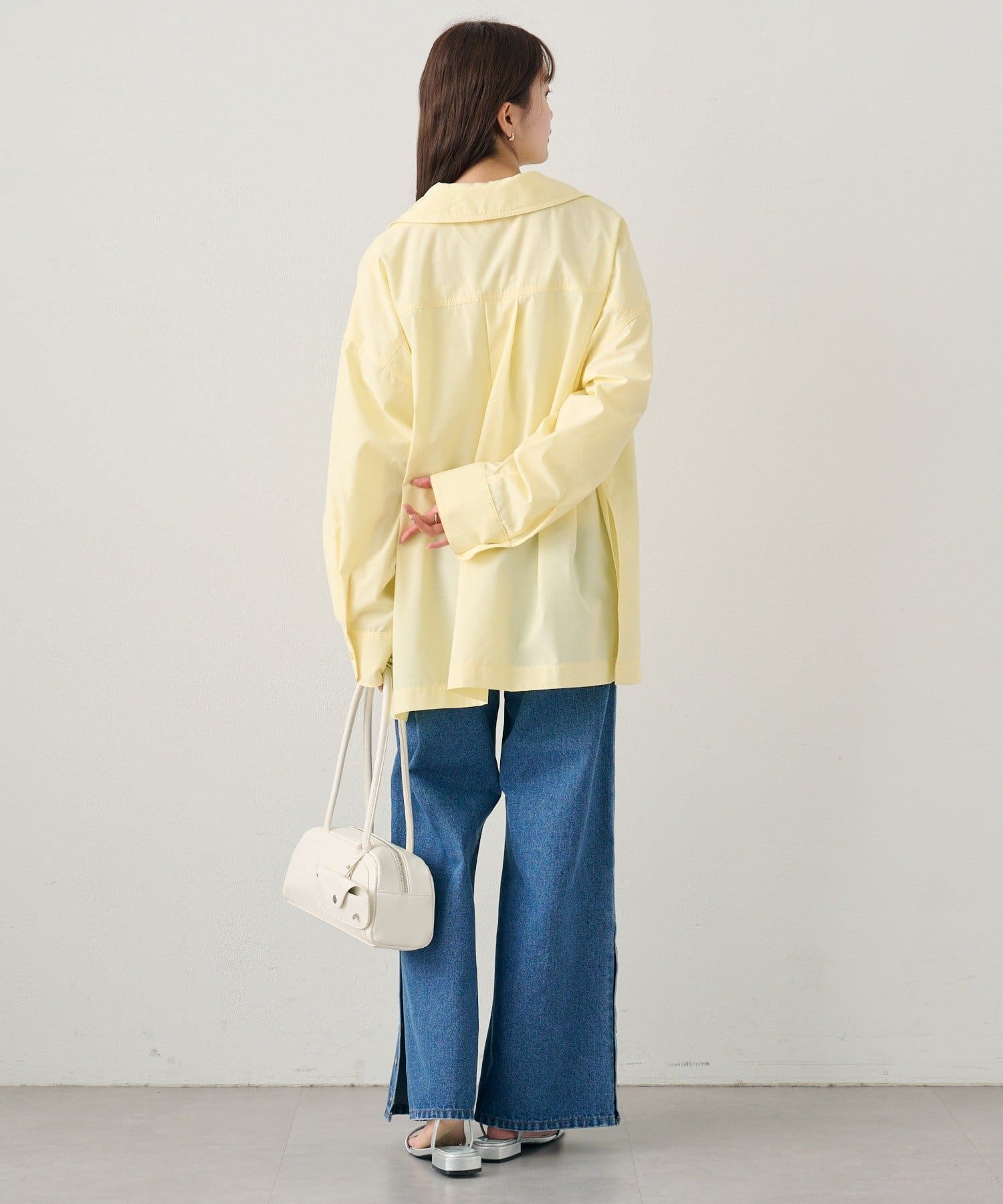 抜け感ときちんと感を両立させたスキッパーシャツ
