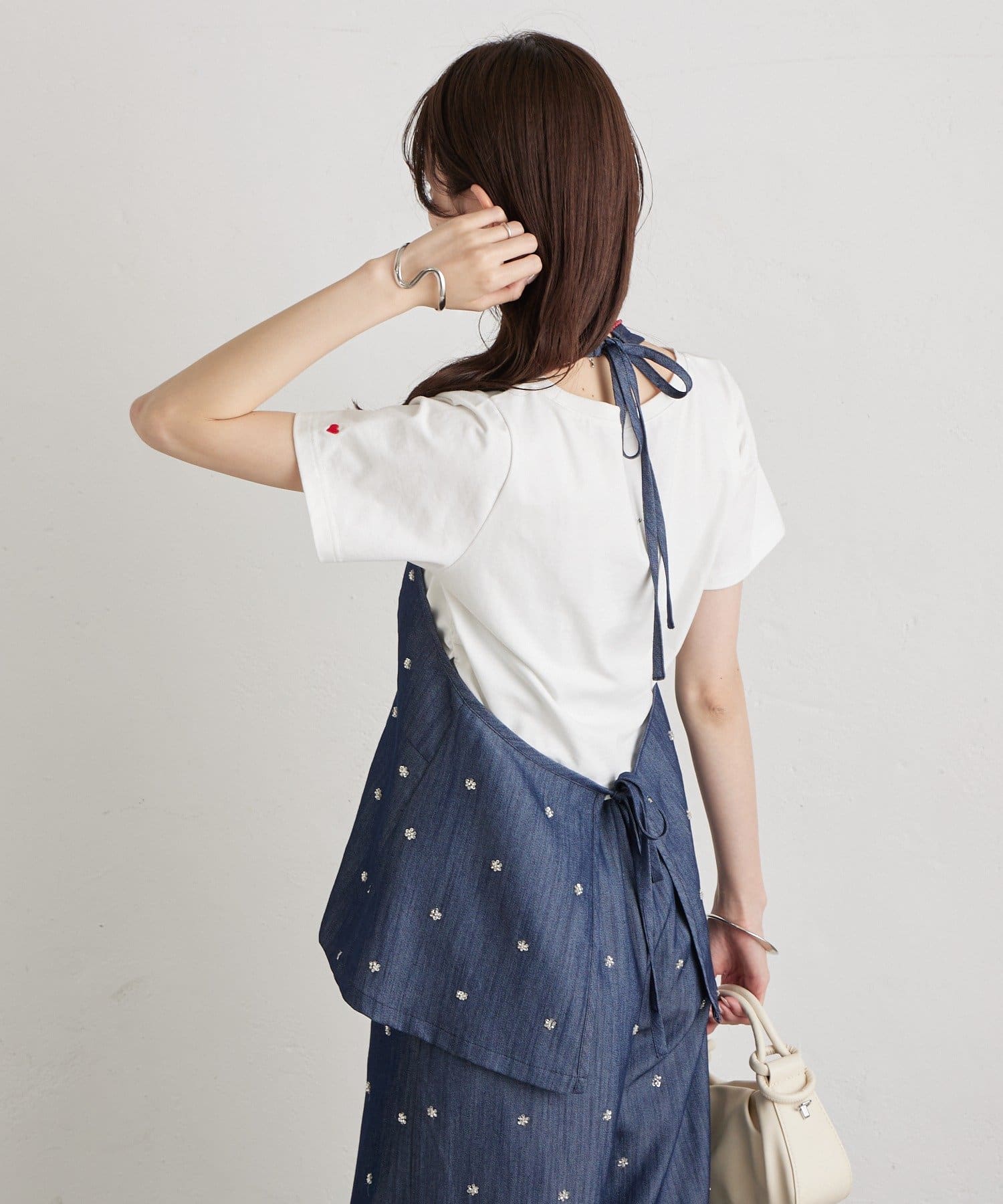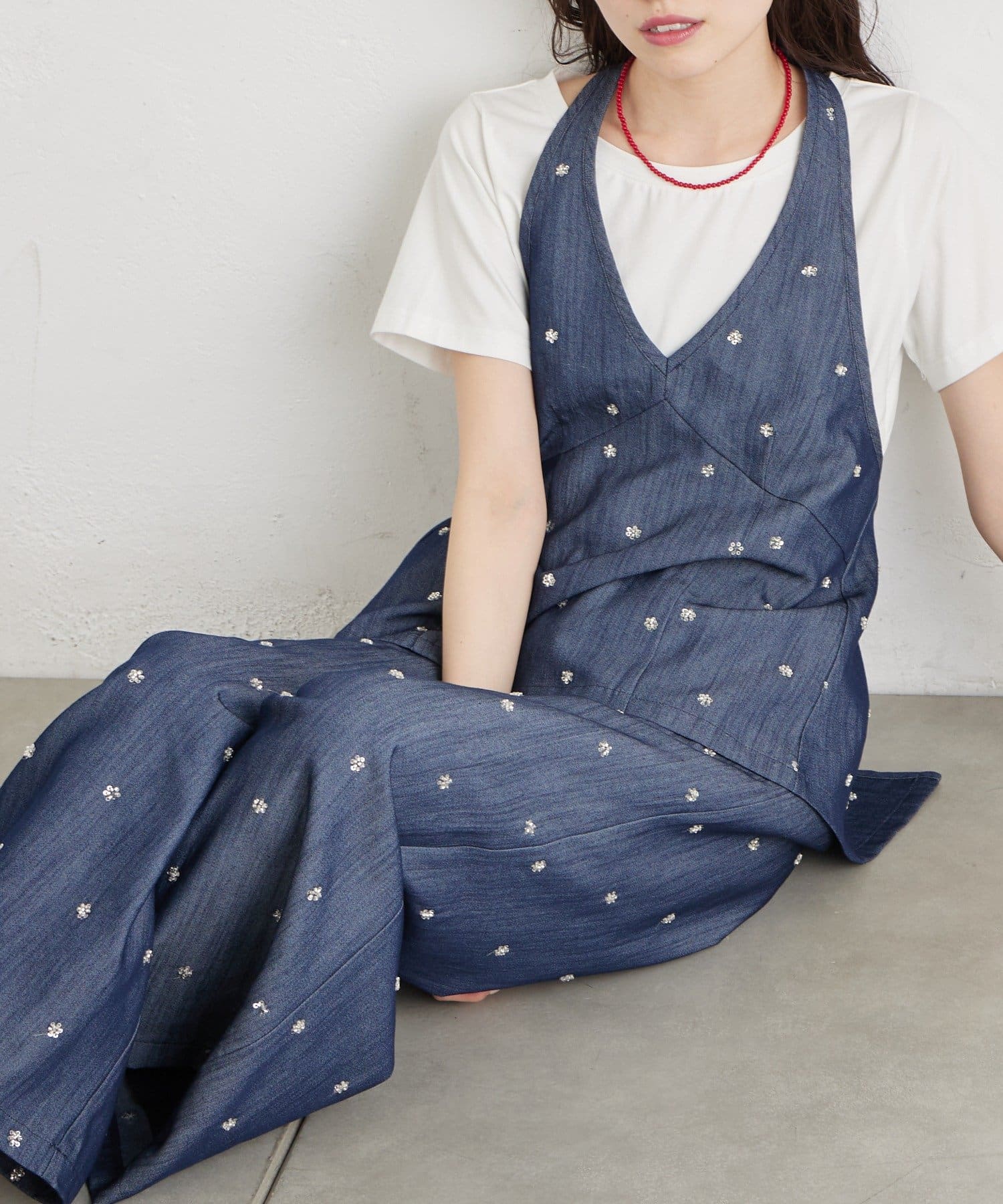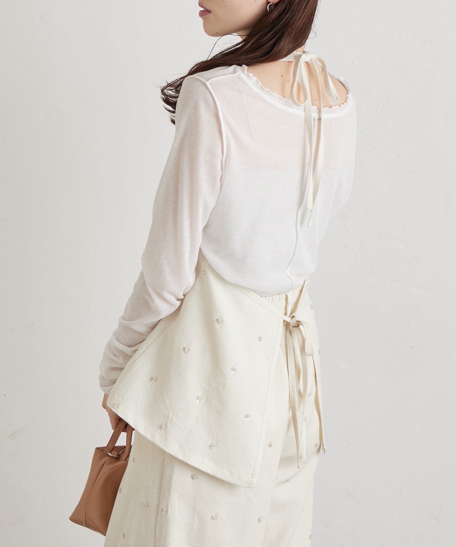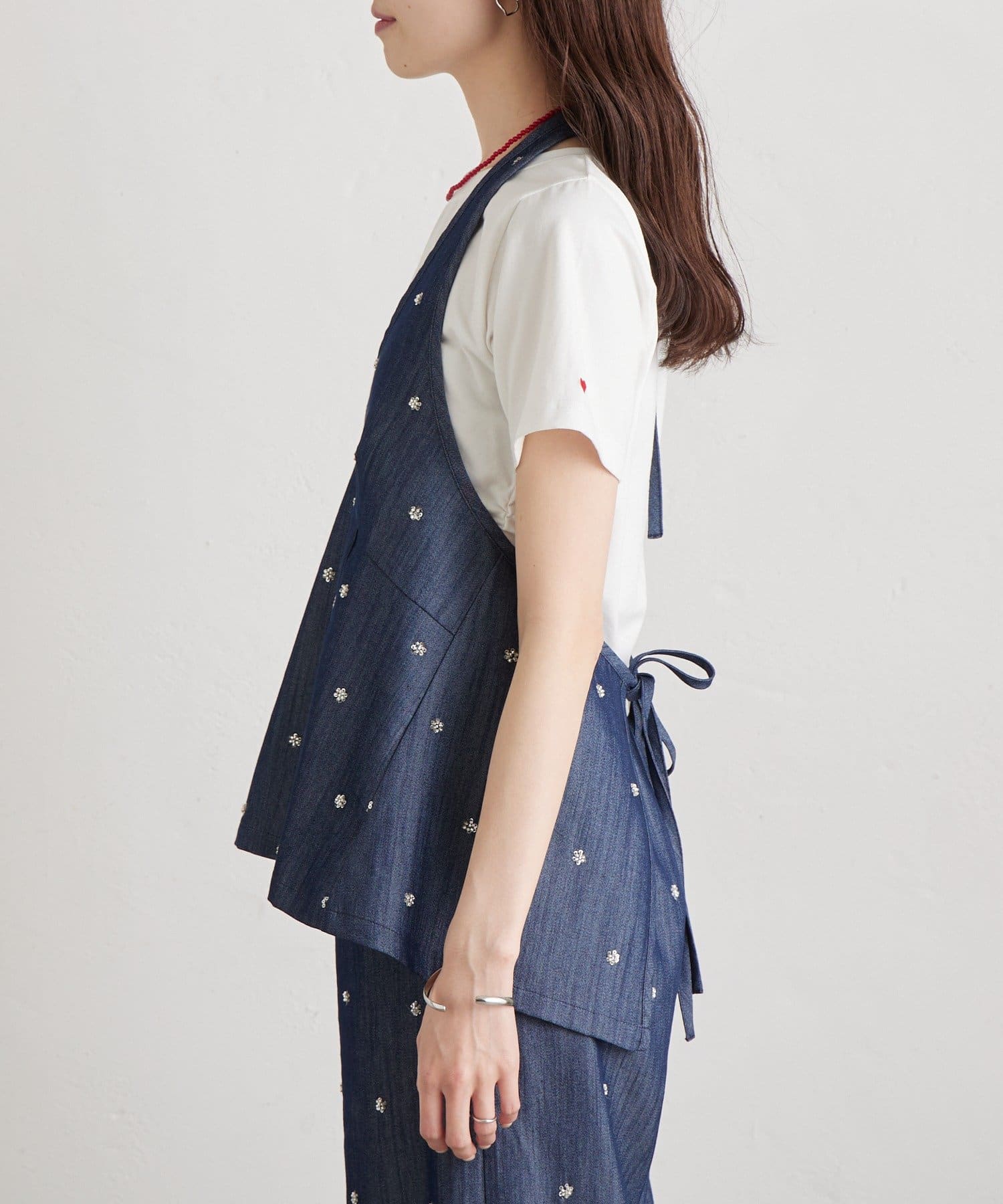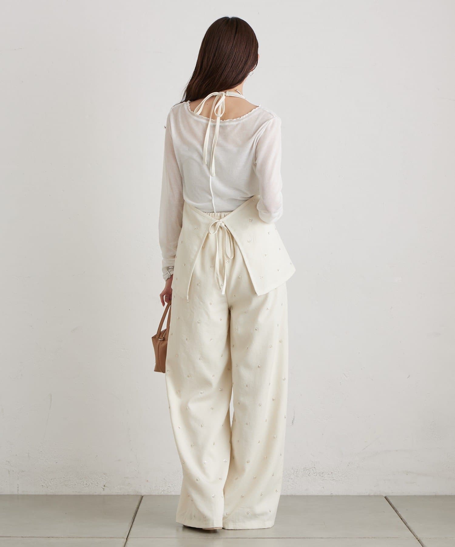 フラワービジューがアクセントに◎華やかなレイヤードスタイルが完成するホルタービスチェ