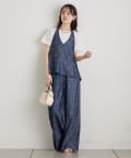 ・同素材のビジーフラワースラックスとのセットアップスタイルもおすすめです。