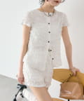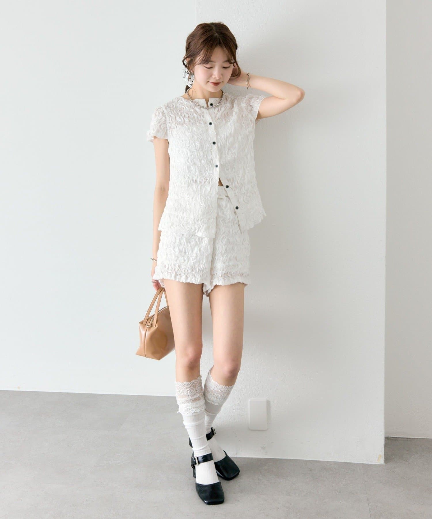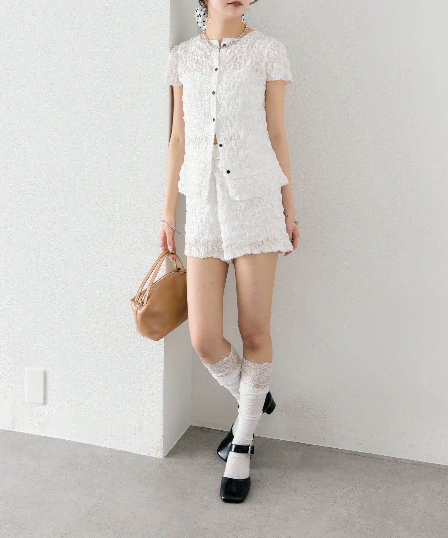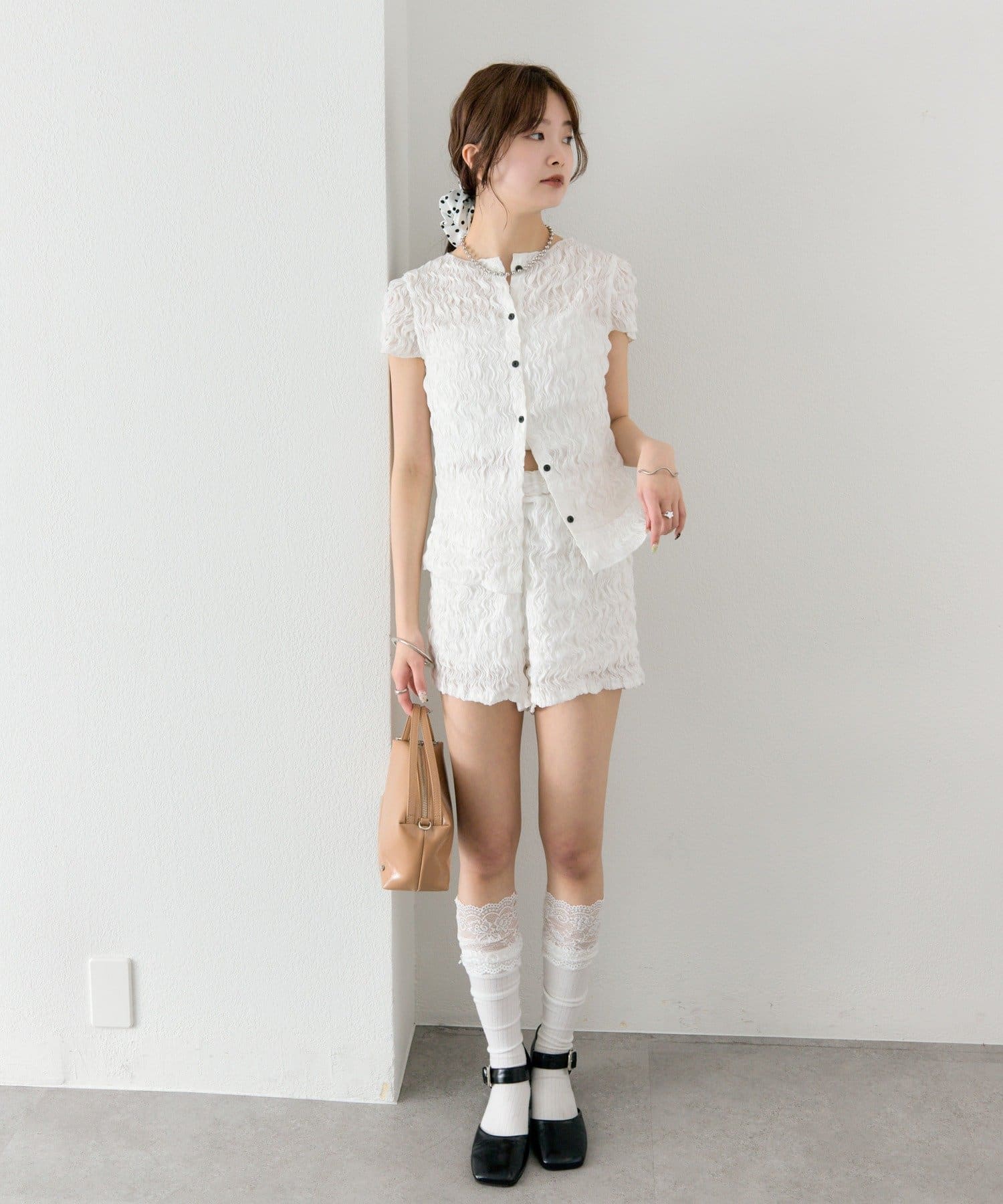 ・同素材のエアリーシャーリングショートパンツとセットアップスタイルもおすすめです。