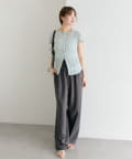 ・スラックスと合わせて、素材感を活かしたキレイめスタイルにも。