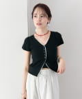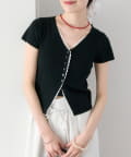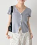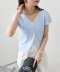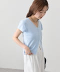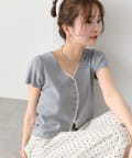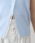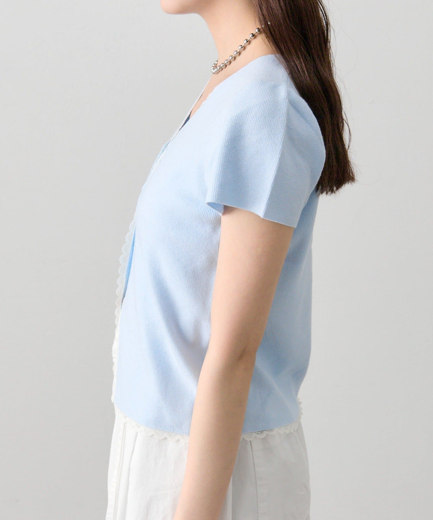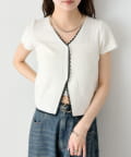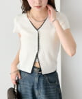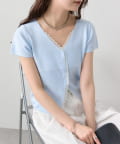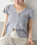 • mystic(ミスティック) レースライン半袖ニットカーディガン