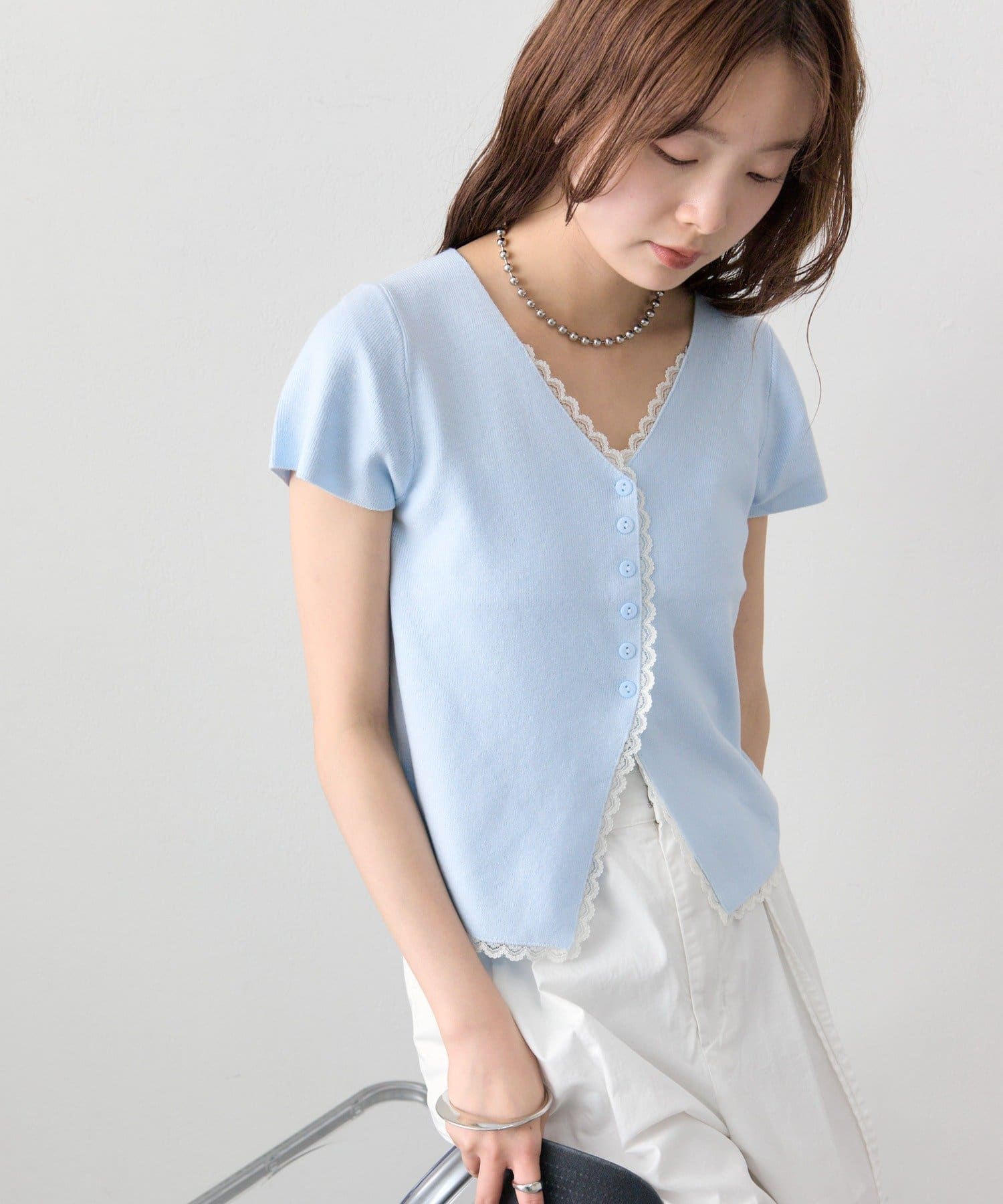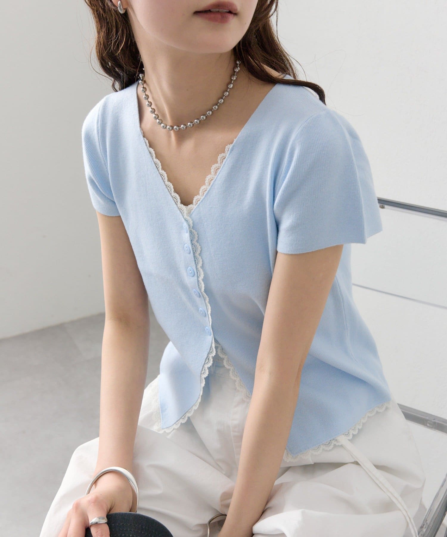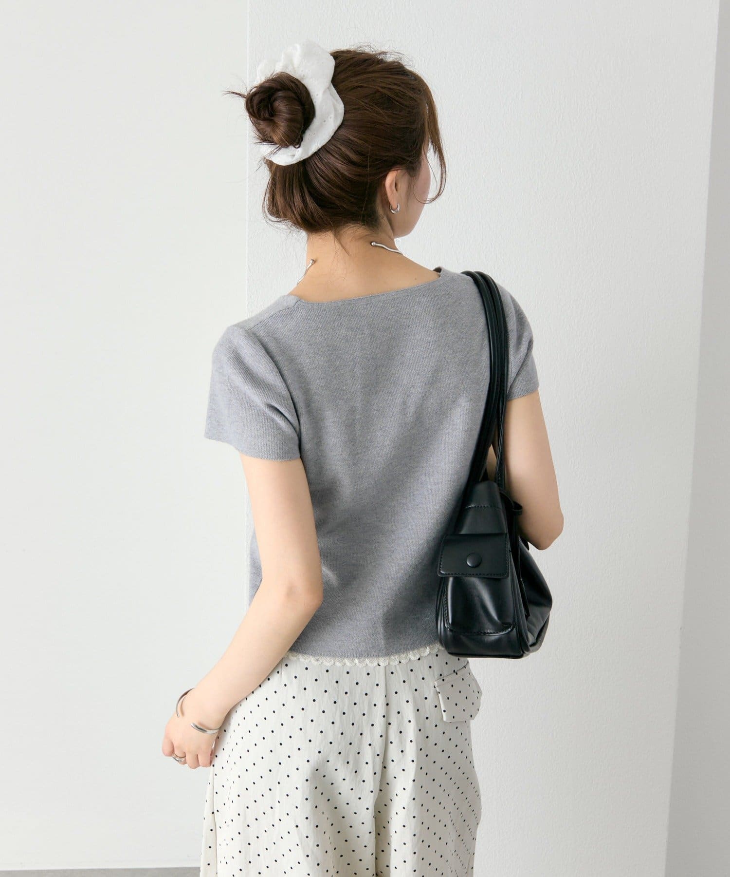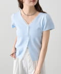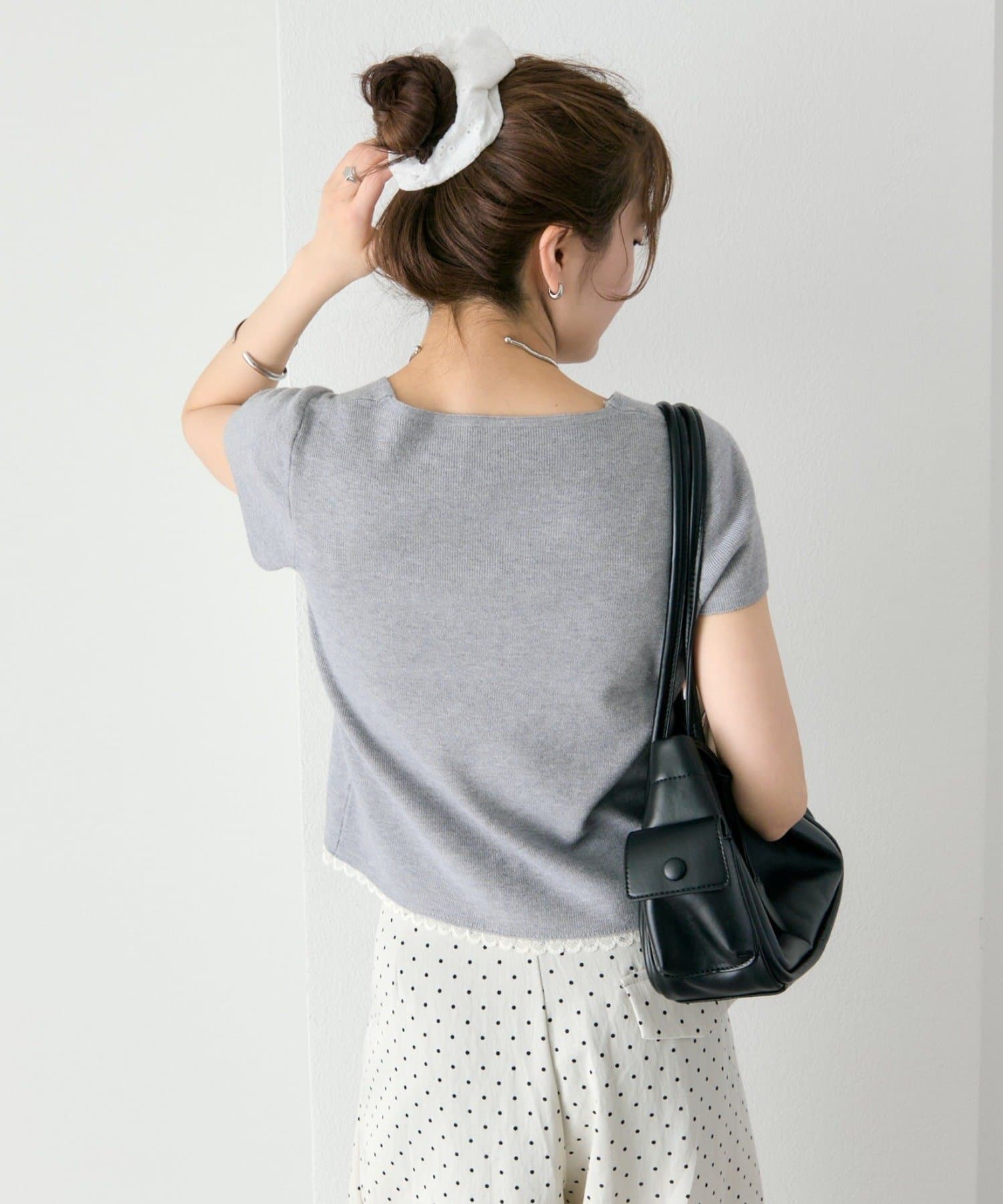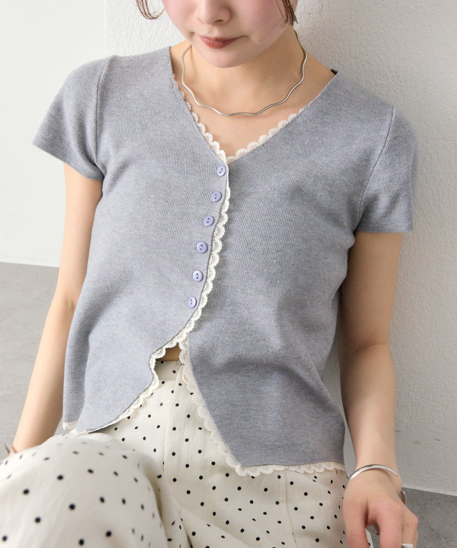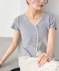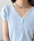 mystic(ミスティック) レースライン半袖ニットカーディガン